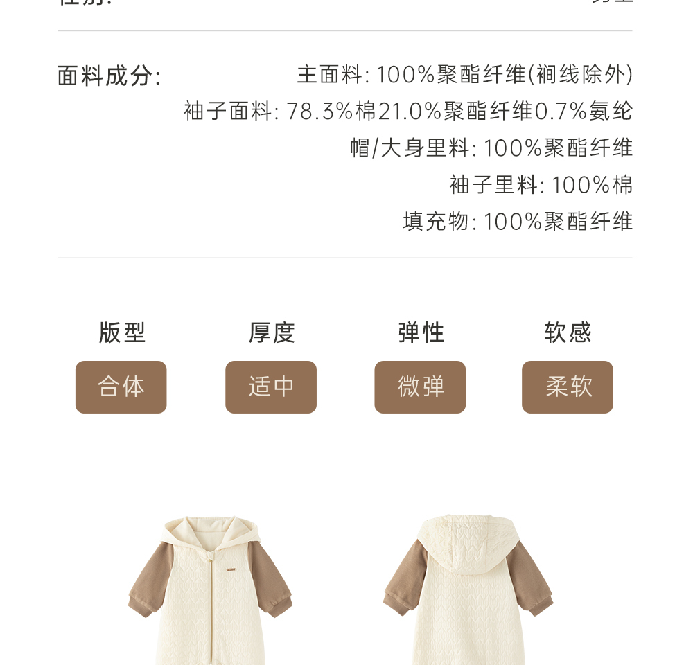 【商场同款】英氏婴幼儿衣服男宝哈衣连帽暖绒连体衣保暖秋冬