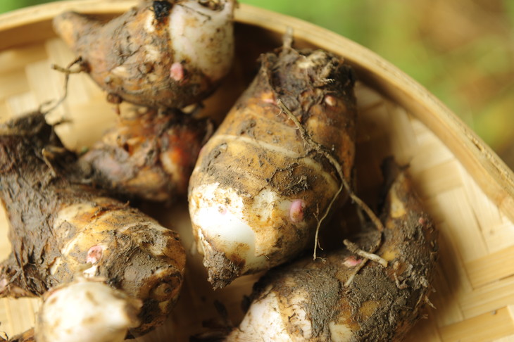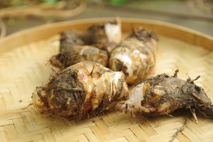 1斤番薯粉压成细粉和老酒酱油拌一起等用,再把1斤芋艿蒸熟了捏成泥,1斤五花肉肉沫和前面两样拌均匀,不要太硬,太硬加一点点水,糊糊状,就可以蒸了