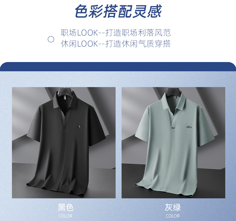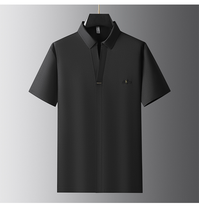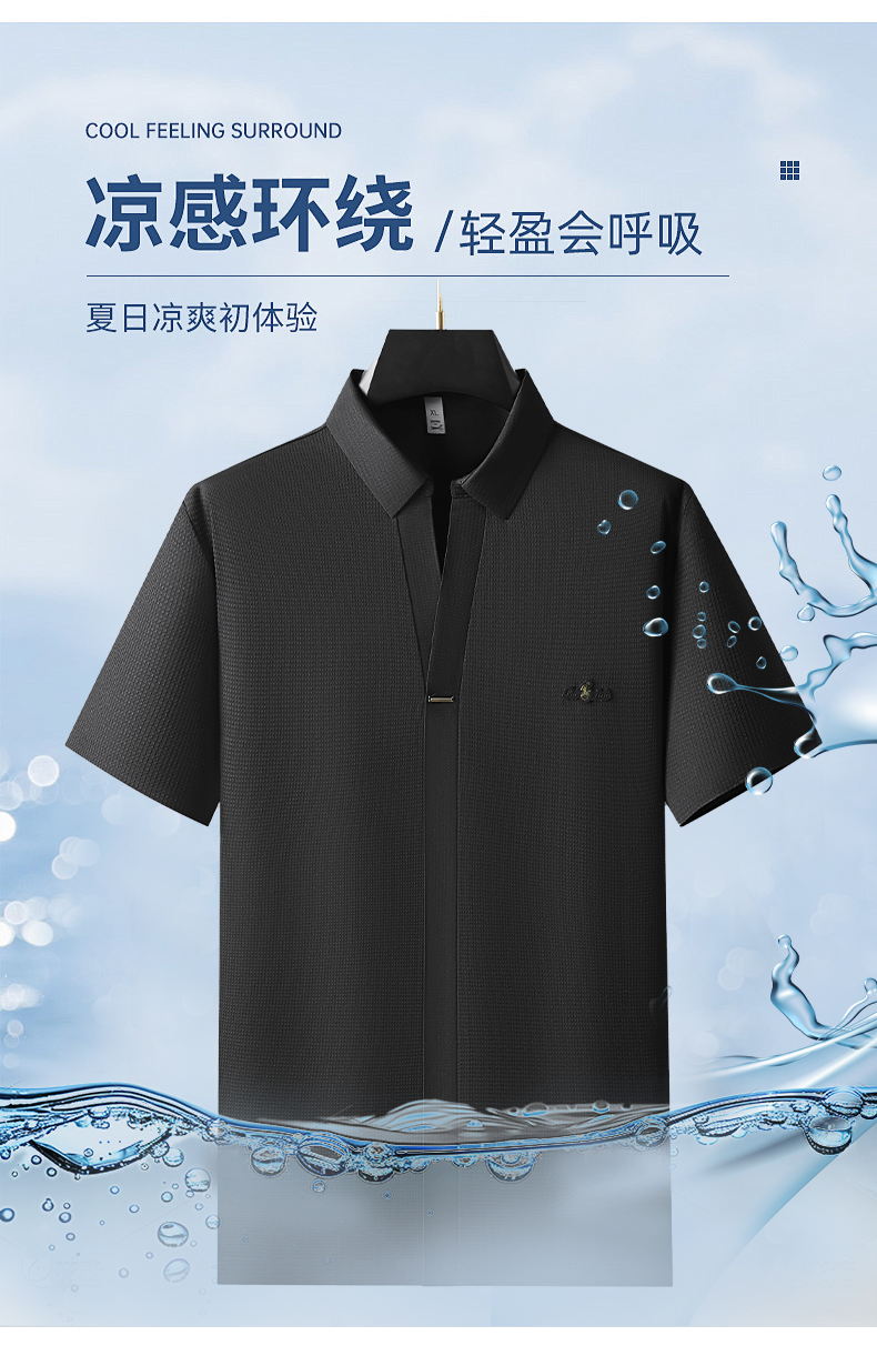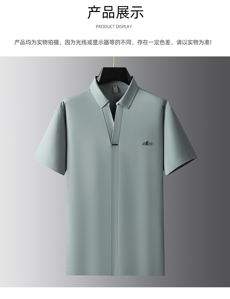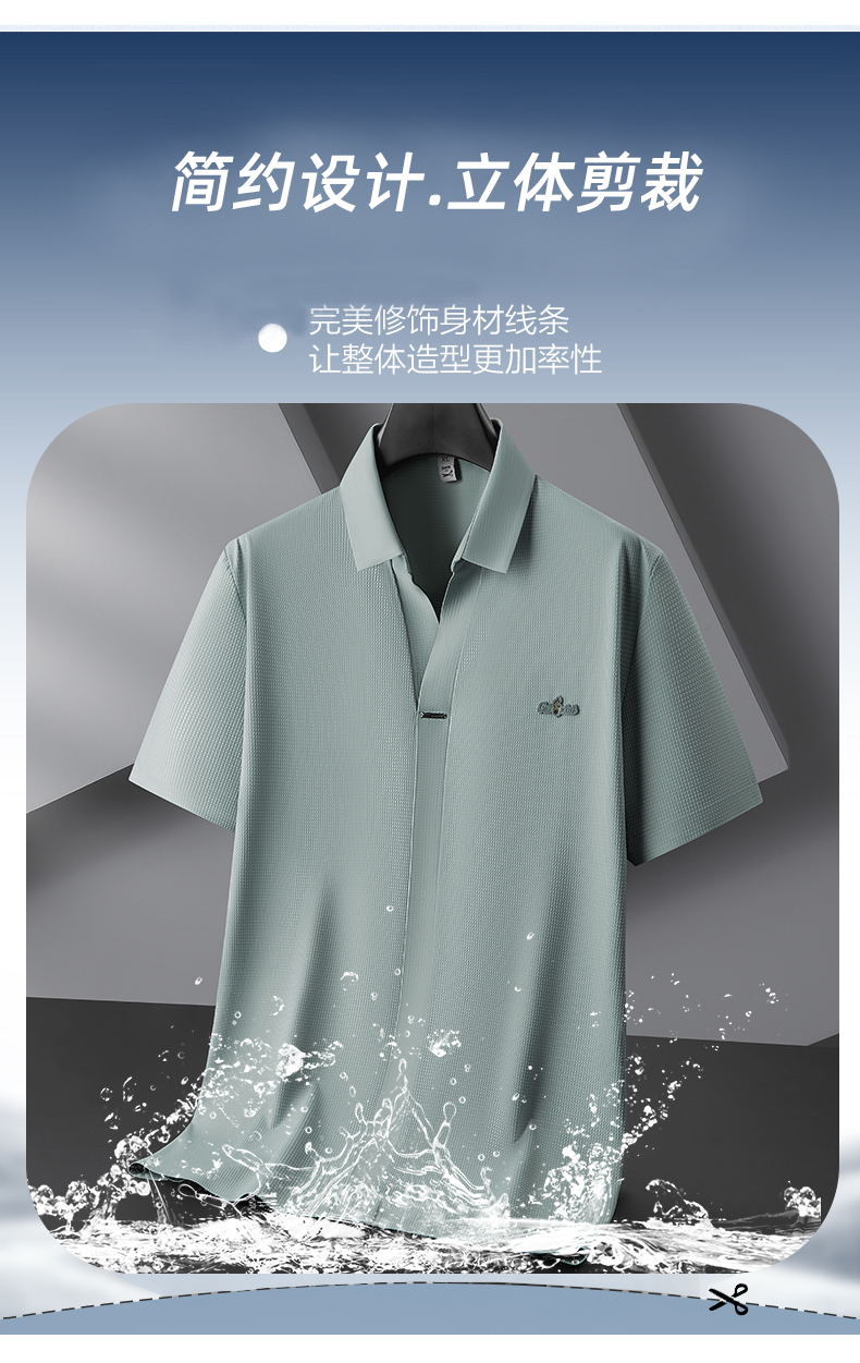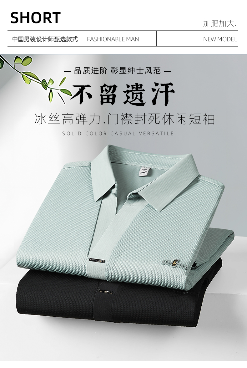 【冰丝】【封口】【DDP】大依优型大码V领短袖POLO衫弹力翻领商务休闲透气半袖夏季上衣