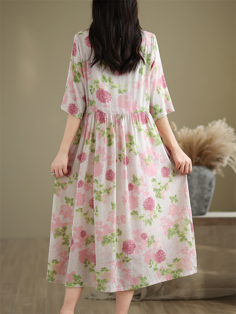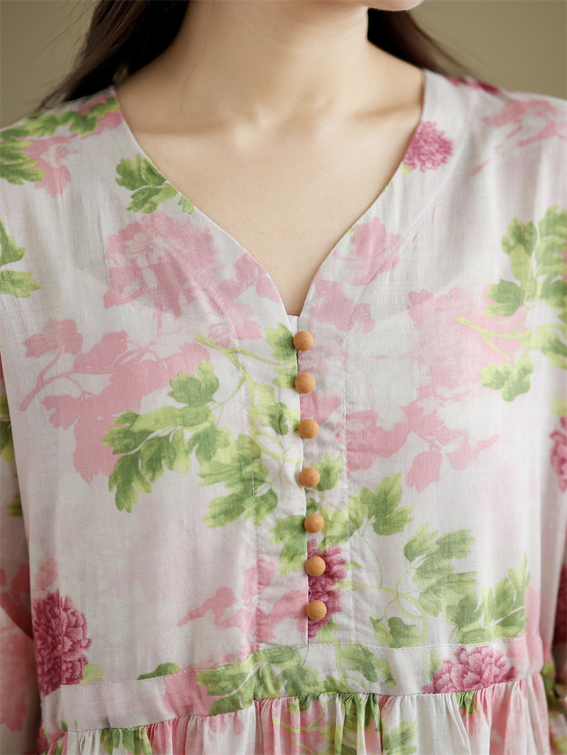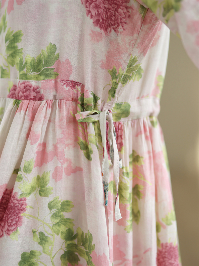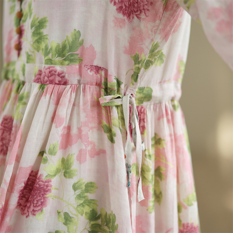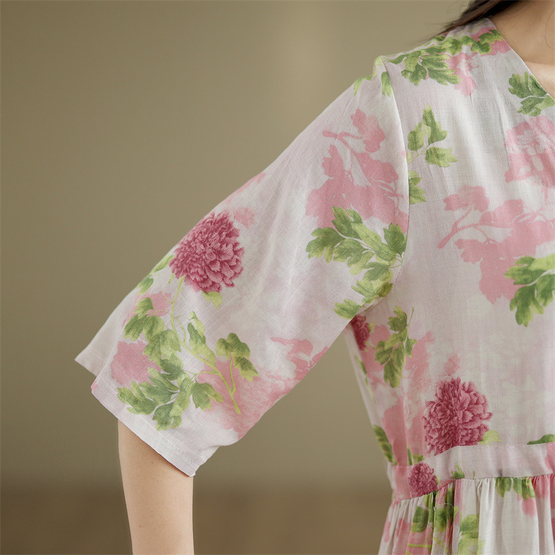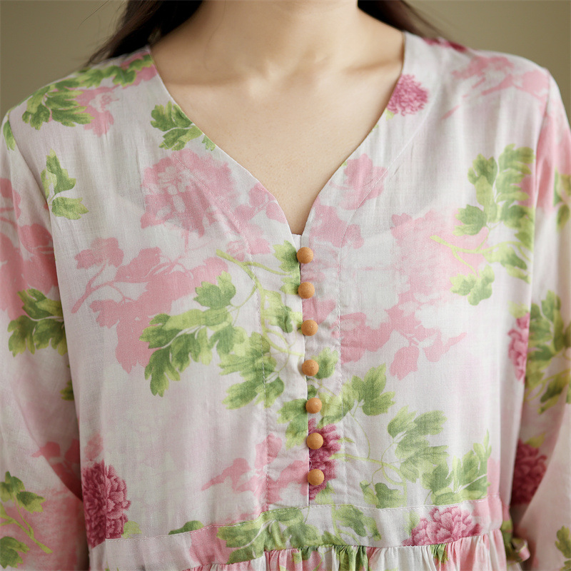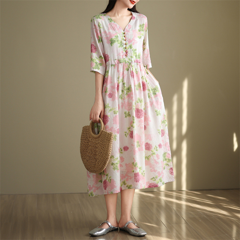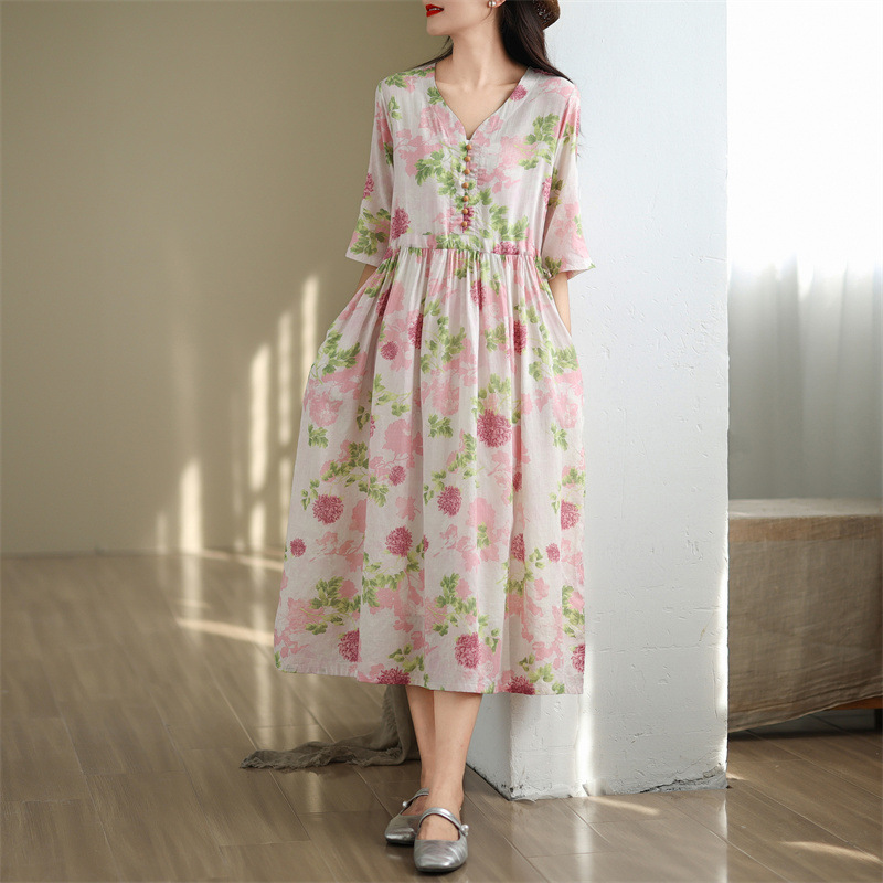 GYH 5537复古气质温婉飘逸洋气印花褶皱大摆连衣裙