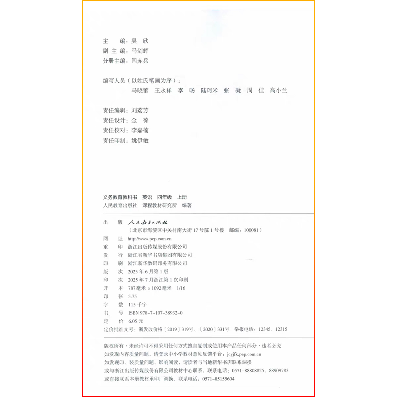 2025秋季 义务教育教科书英语四年级上册人教部编版课本教材三年级起点