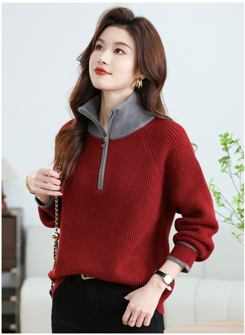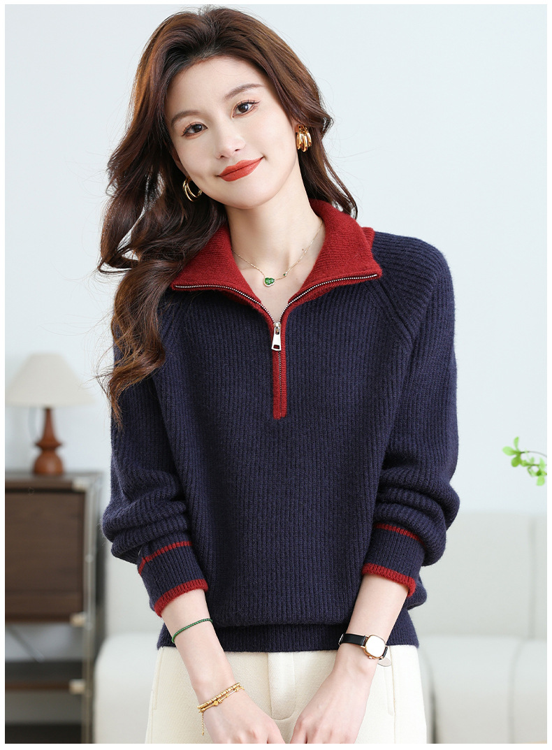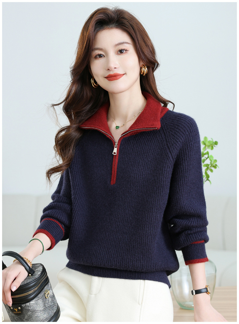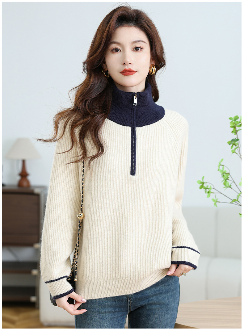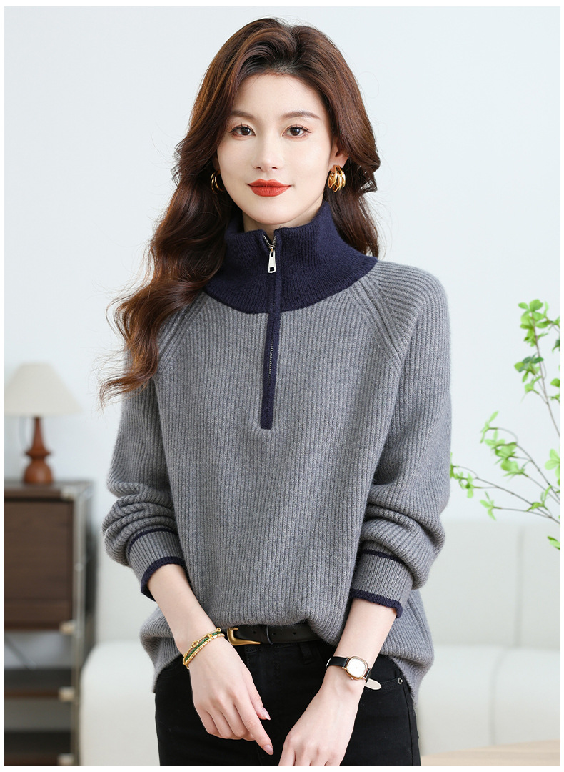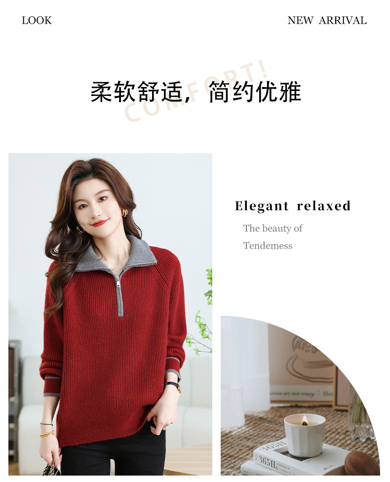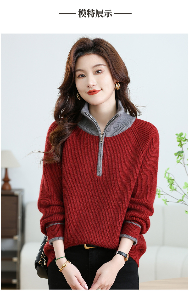CC-17-6763高领毛衣女款2024新款秋冬拼色洋气拉链小个子针织上衣内搭打底衫