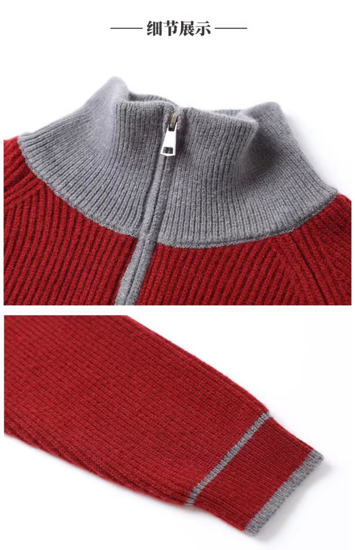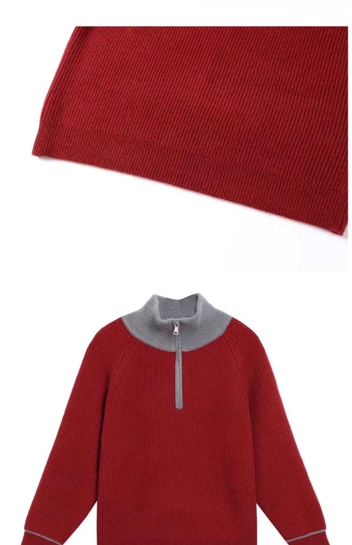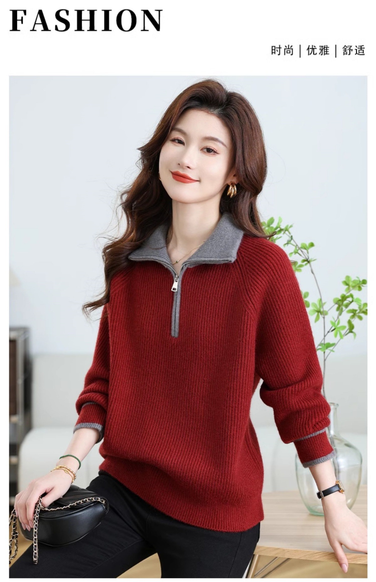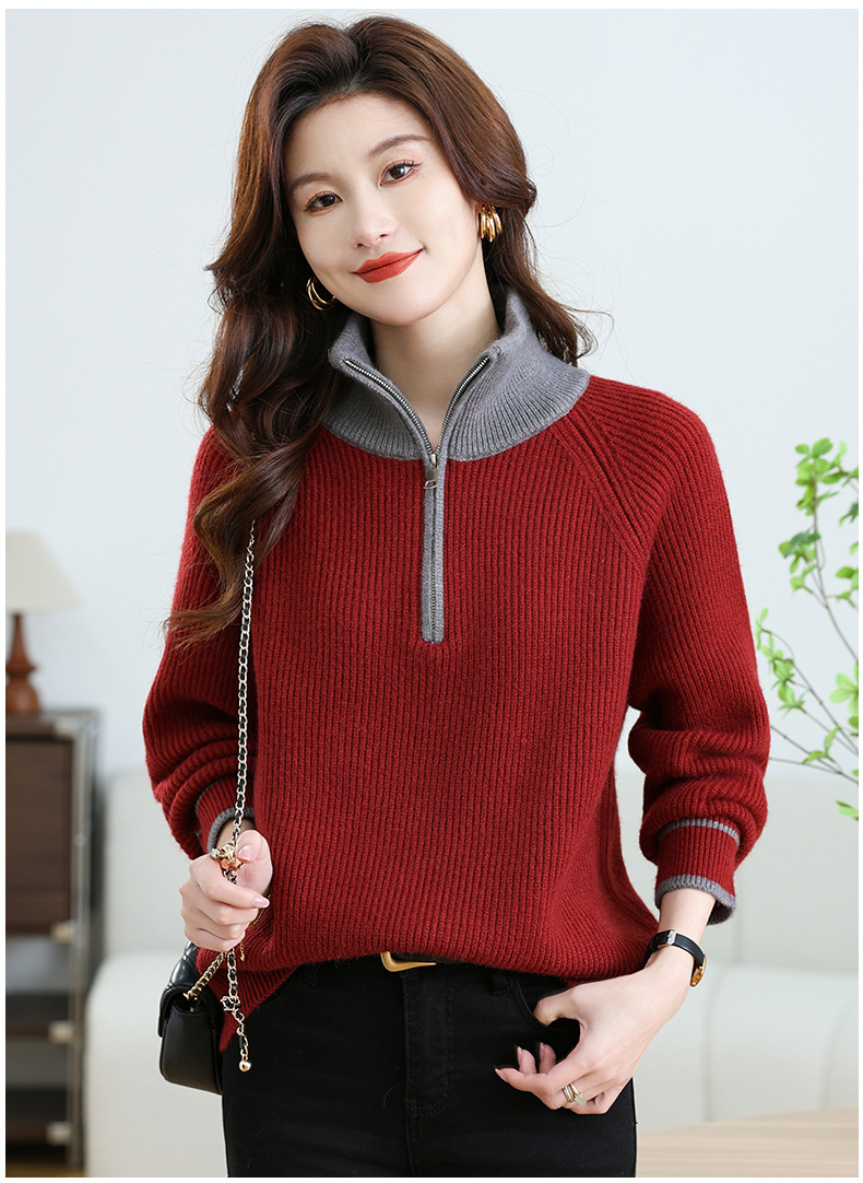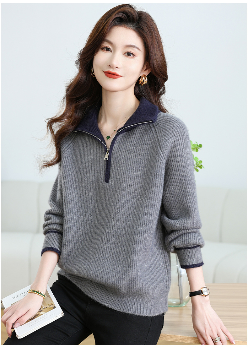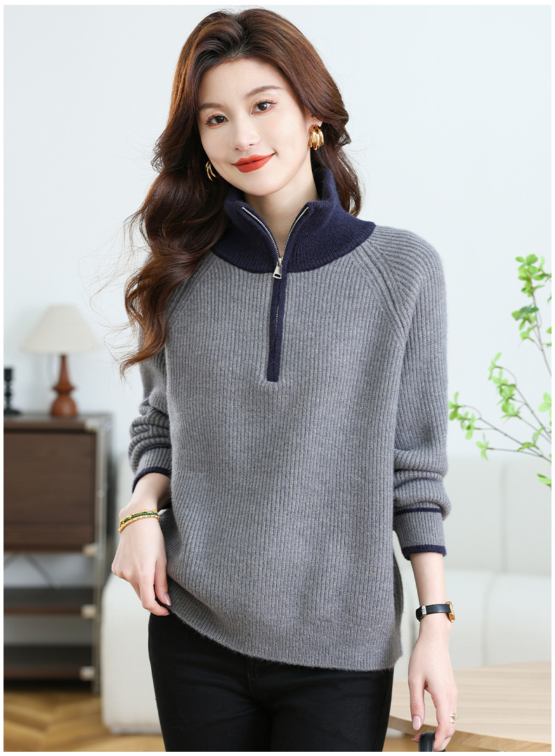 CC-17-6763高领毛衣女款2024新款秋冬拼色洋气拉链小个子针织上衣内搭打底衫
