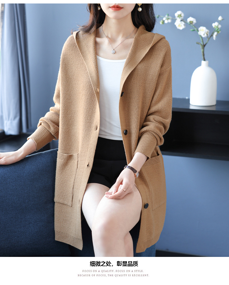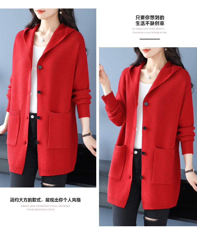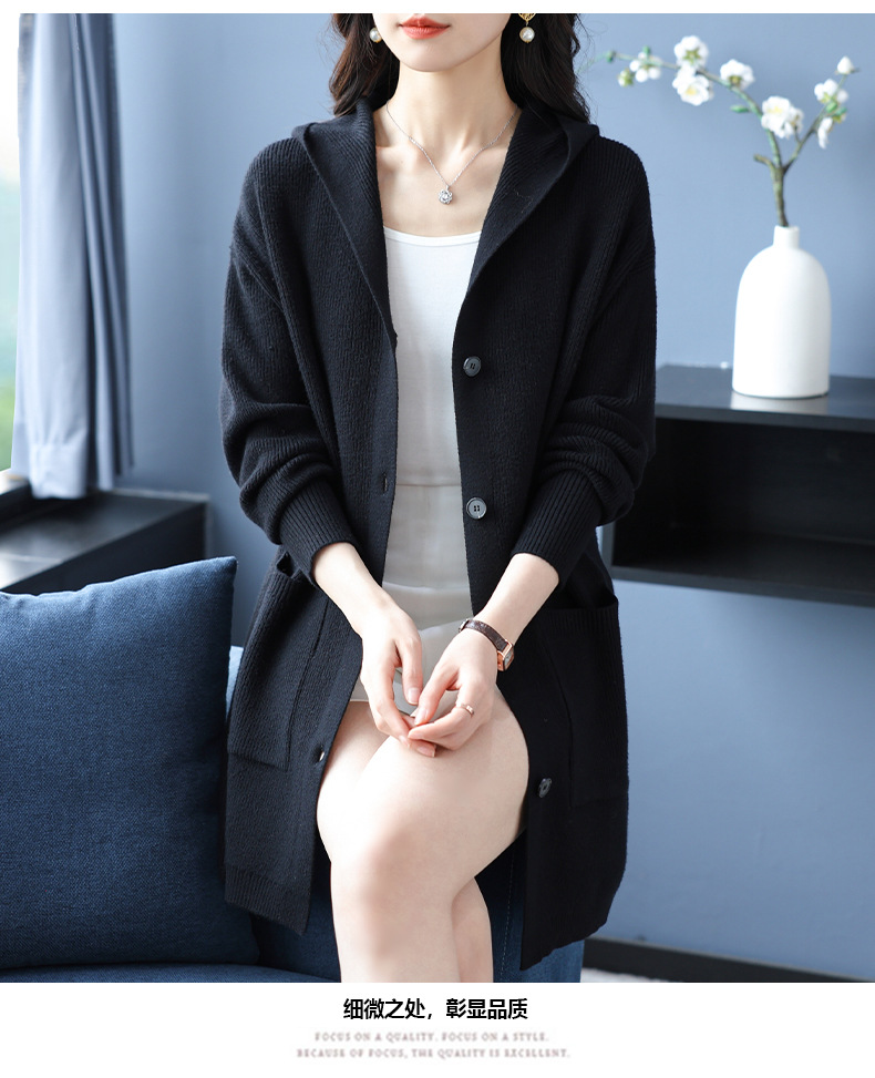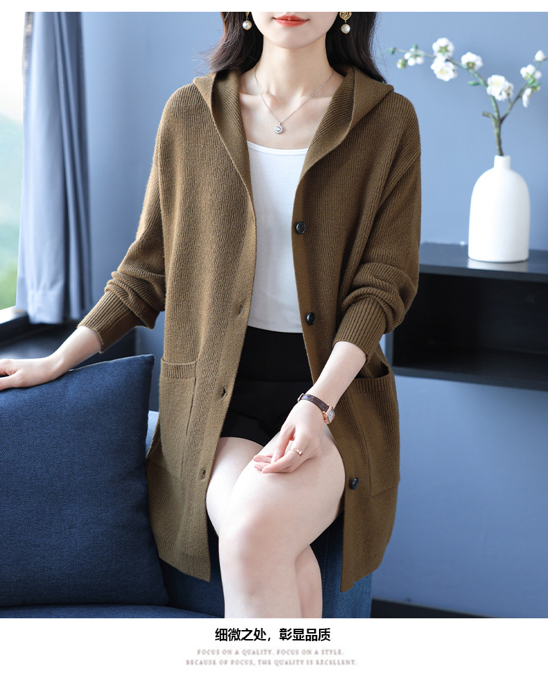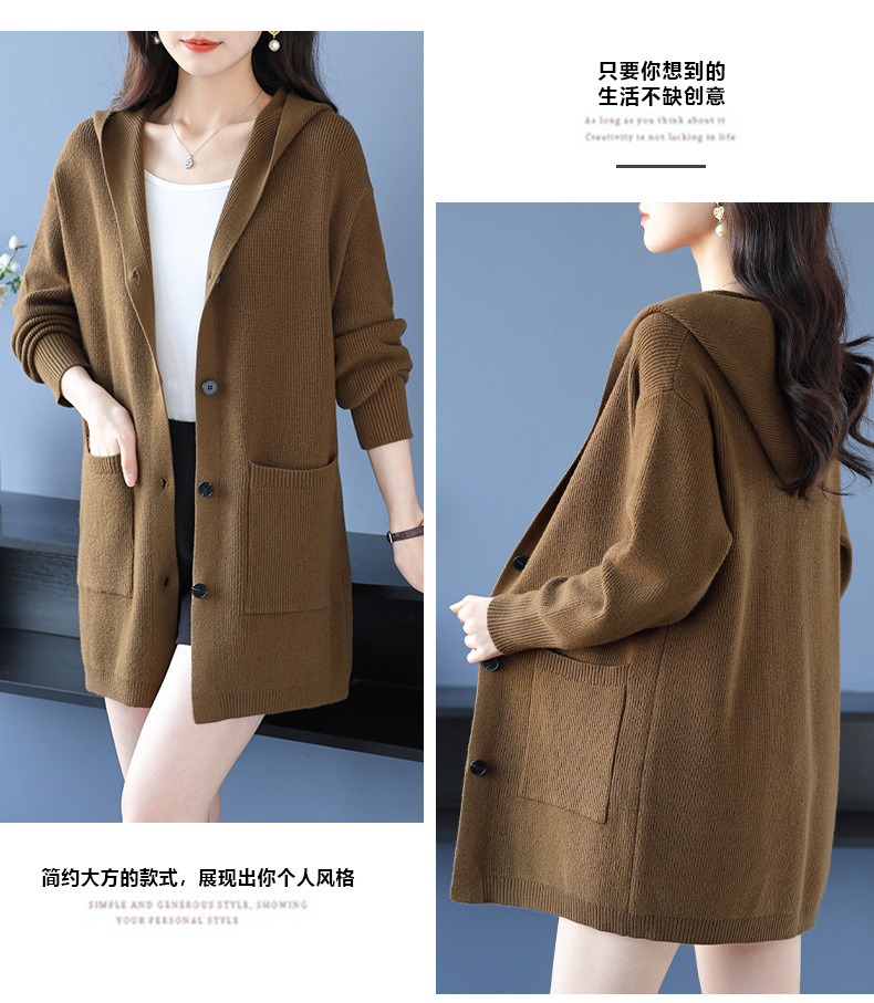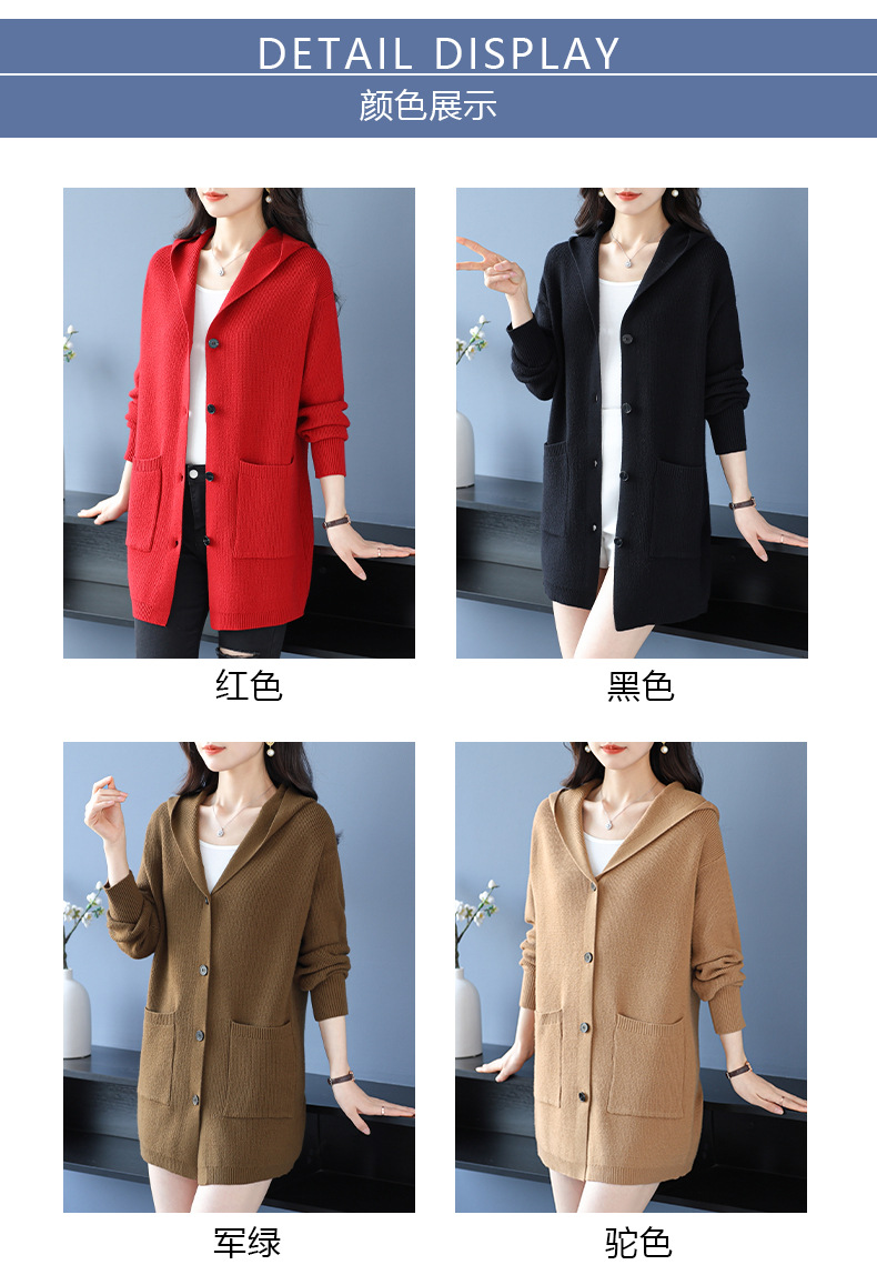 XX6352-198连帽针织开衫女2025秋季长款洋气大码妈妈装毛衣外套宽松休闲时尚