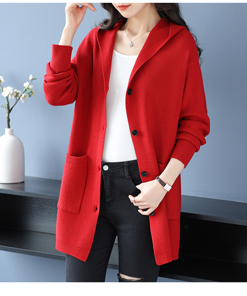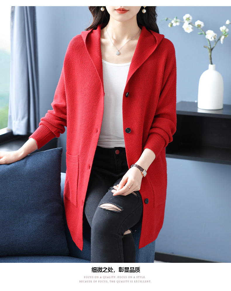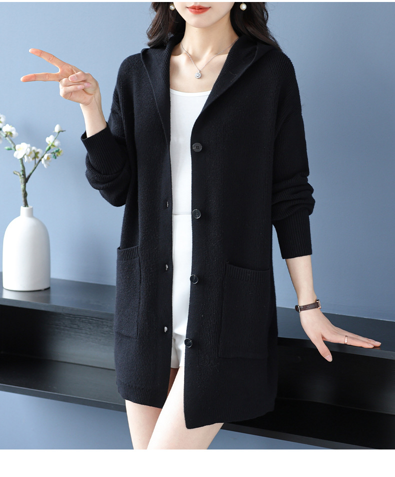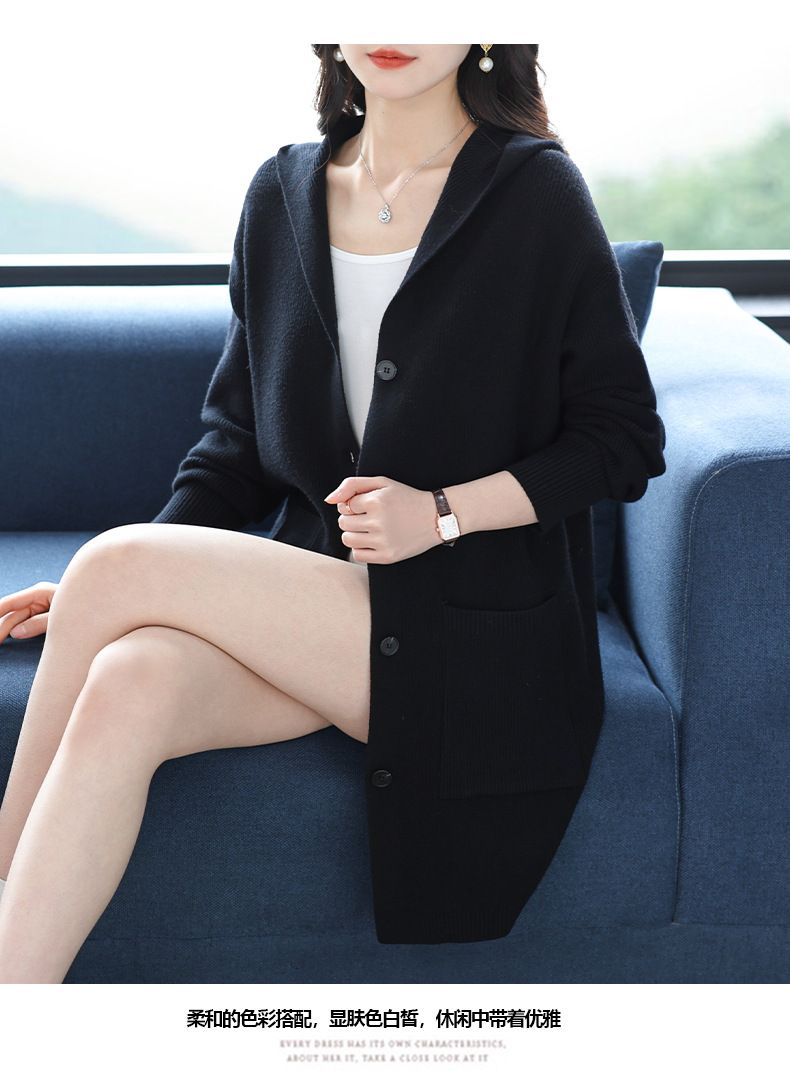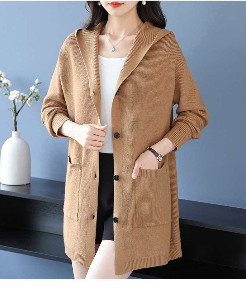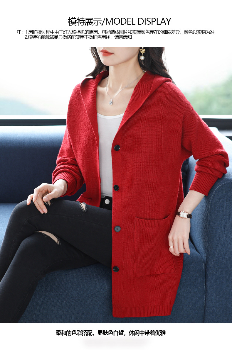 XX6352-198连帽针织开衫女2025秋季长款洋气大码妈妈装毛衣外套宽松休闲时尚