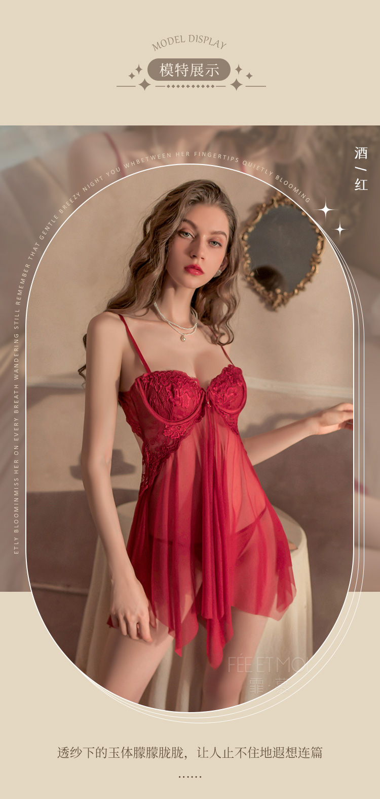 【情趣内衣】霏慕前开襟钢圈美胸透纱裙7833