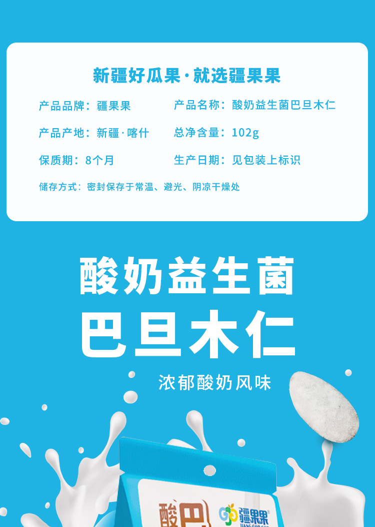 【酸奶益生菌巴旦木仁102g*2袋】酸酸甜甜更健康