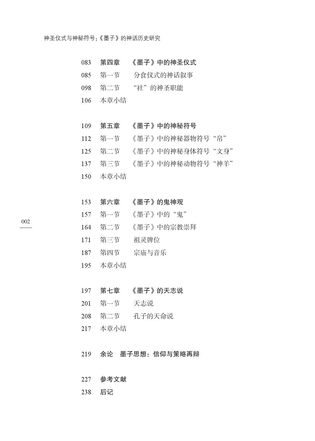 《墨子》研究的学术浪潮经历了从兴盛到衰微再到复兴,其研究角度通常集中在学术史和思想史两个方面。本书有别于传统研究,主要将神话历史、神话思维、神话观念决定论等引入《墨子》研究,从神话历史建构、仪式和信仰等入手分析《墨子》文本,用文学人类学提出的四重证据法、大小传统理论以及N级编码理论作为理论方法论支撑,尝试对《墨子》中的“非攻”“禅让”“天志”等进行新的文化阐释。