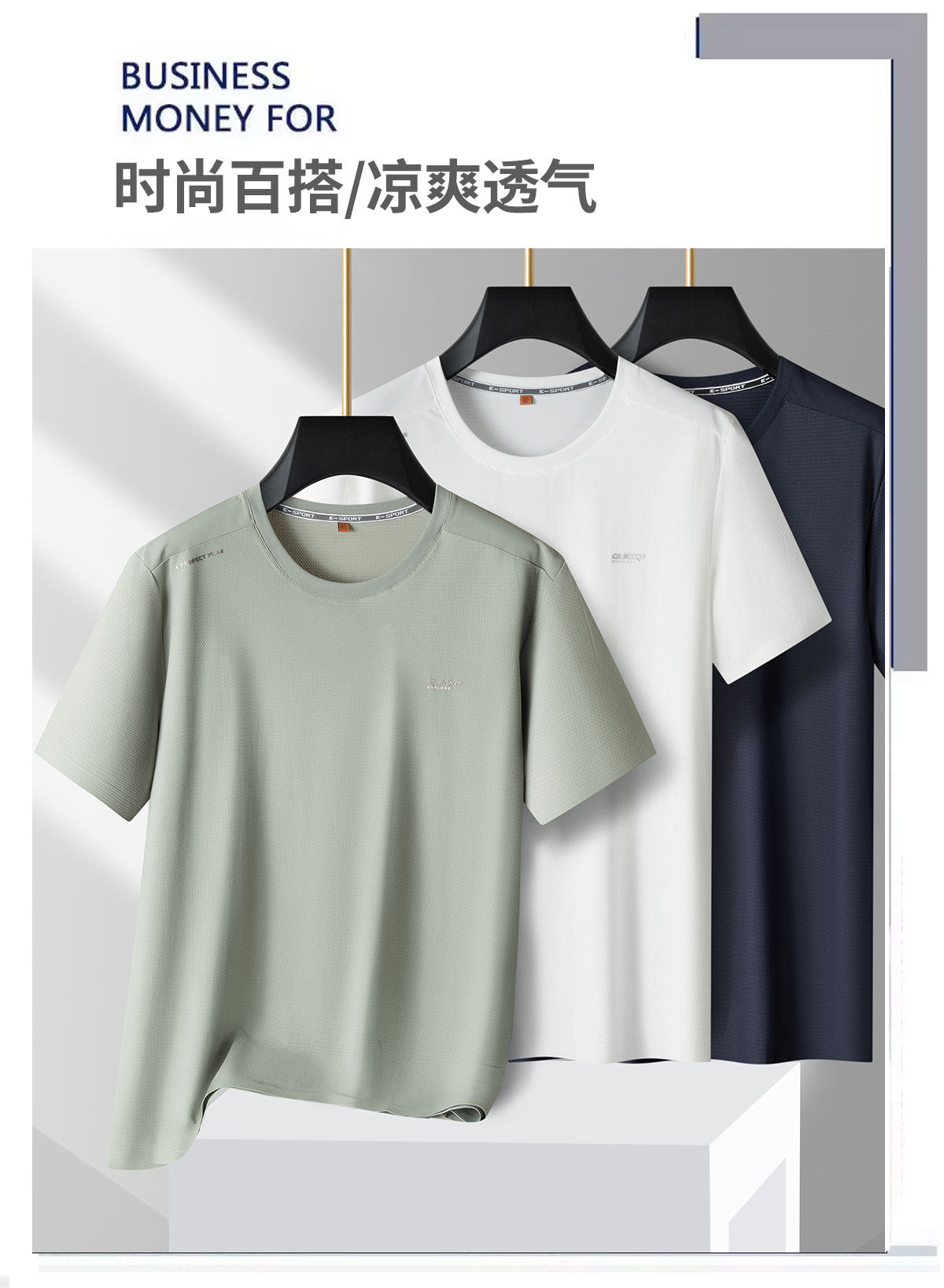 【DPS】大依优型大码男装夏季圆领短袖冰丝凉感休闲短袖T恤上衣加肥加大