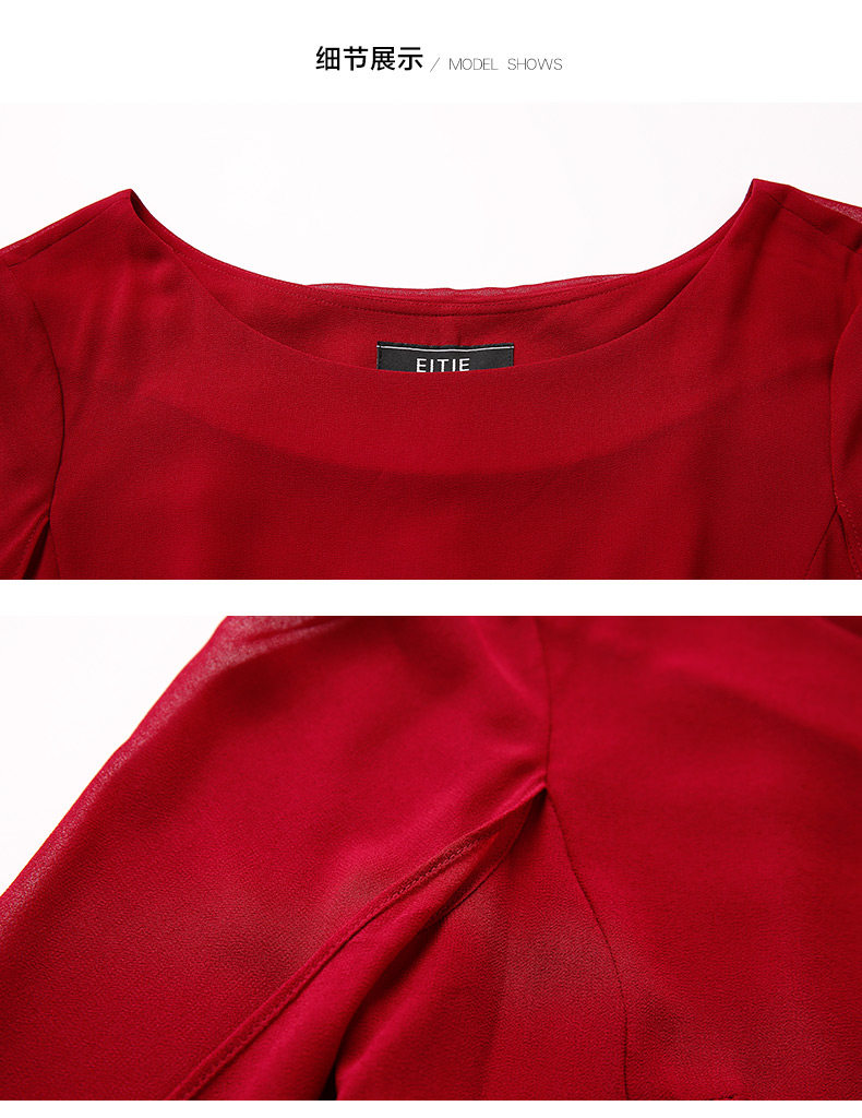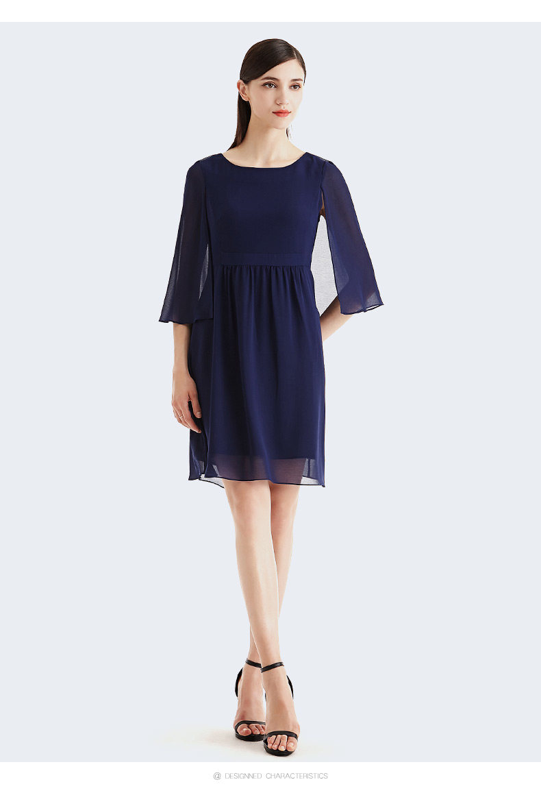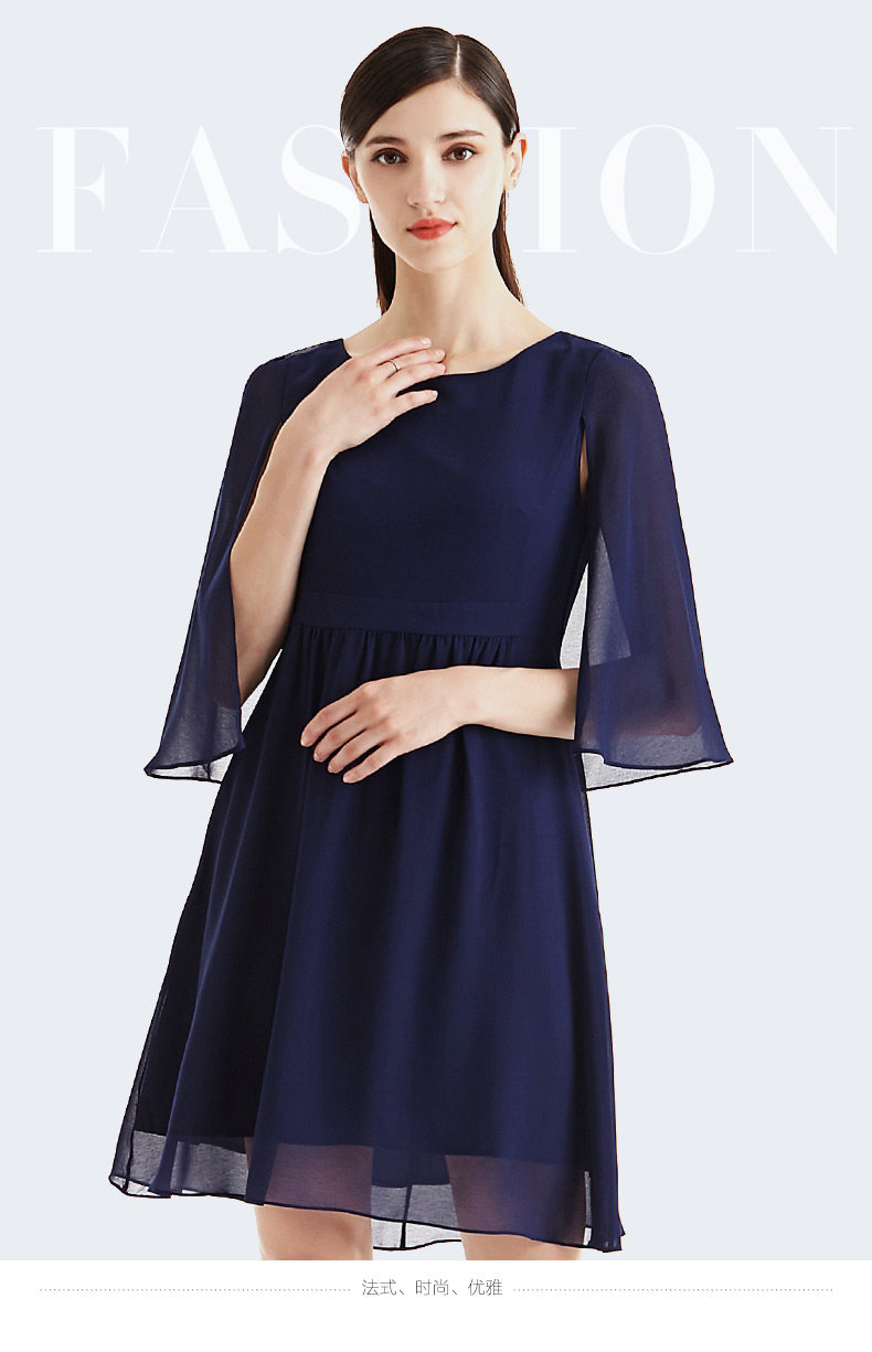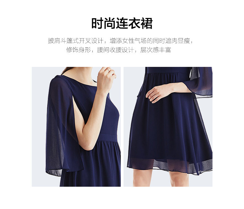 EITIE爱特爱女装夏季新品披肩五分袖高腰纯色连衣裙女夏5507296