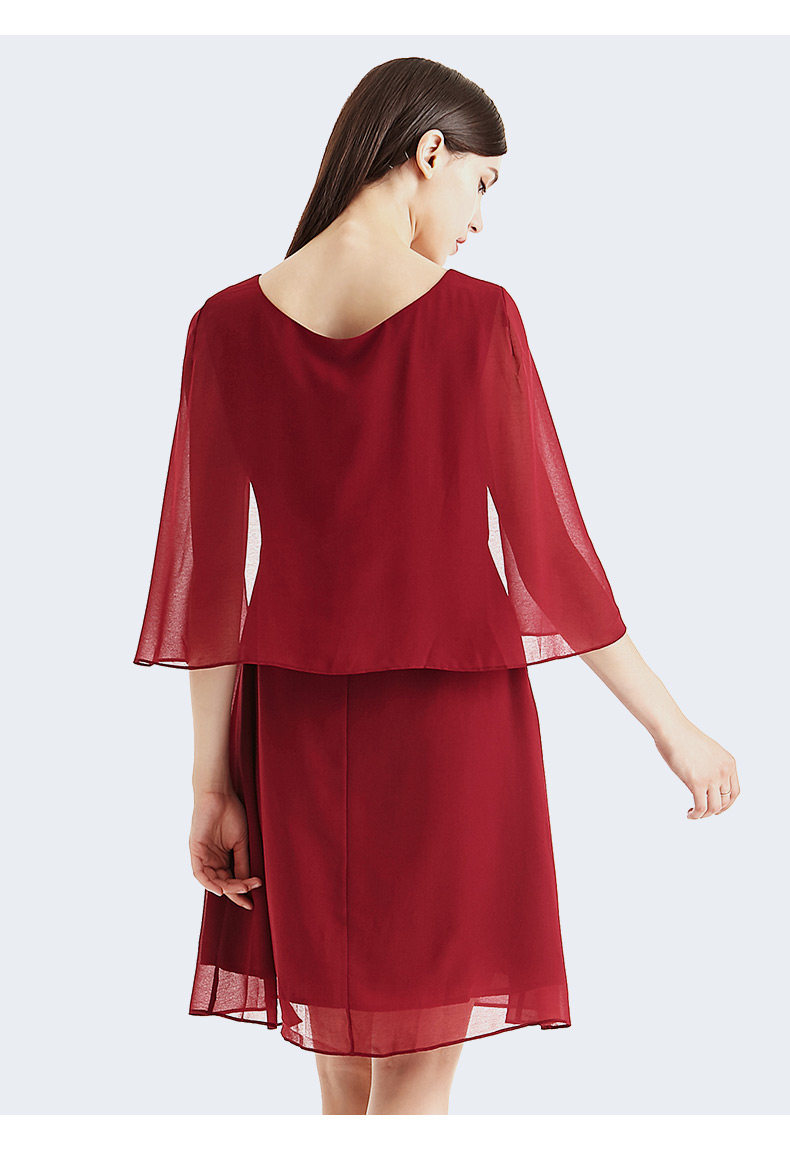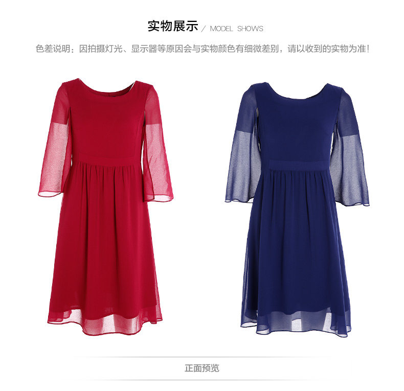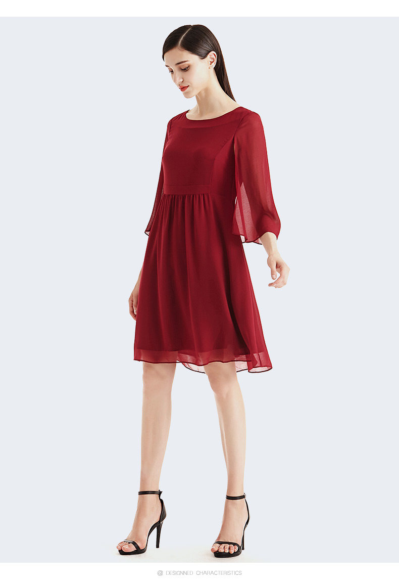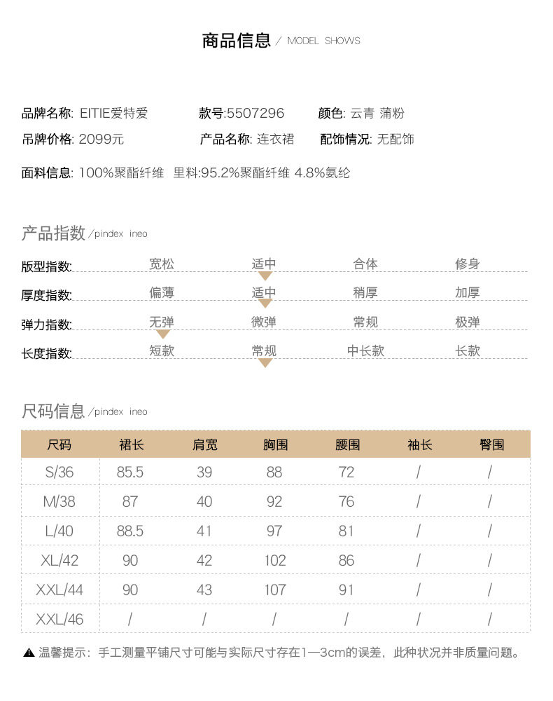 EITIE爱特爱女装夏季新品披肩五分袖高腰纯色连衣裙女夏5507296