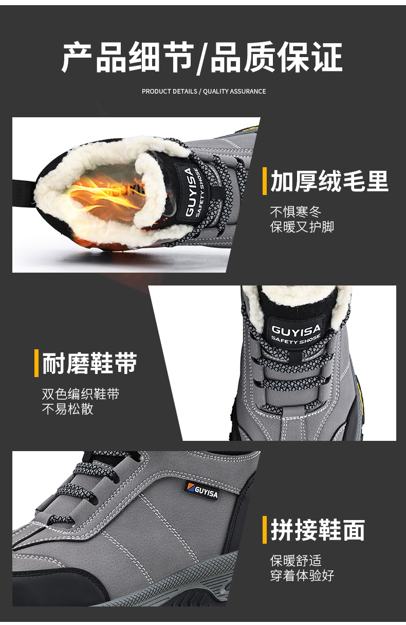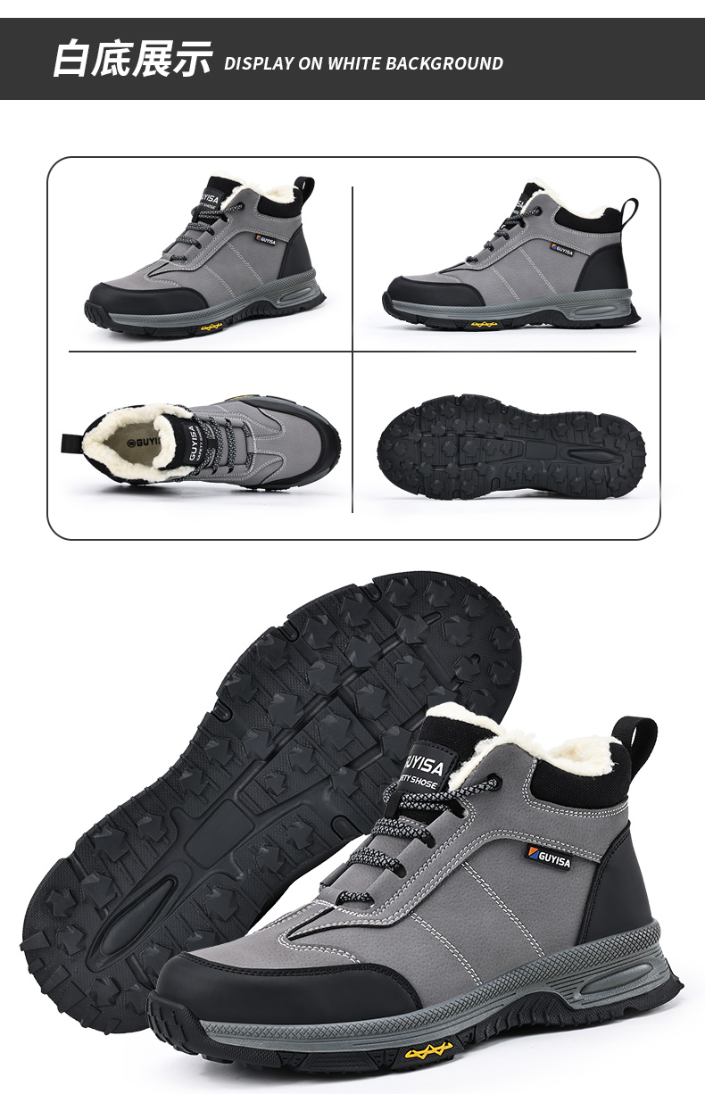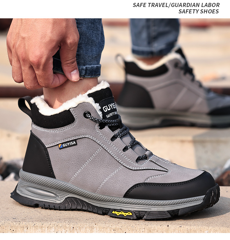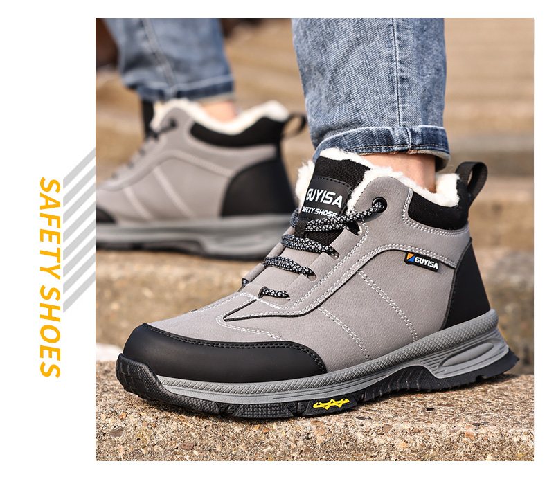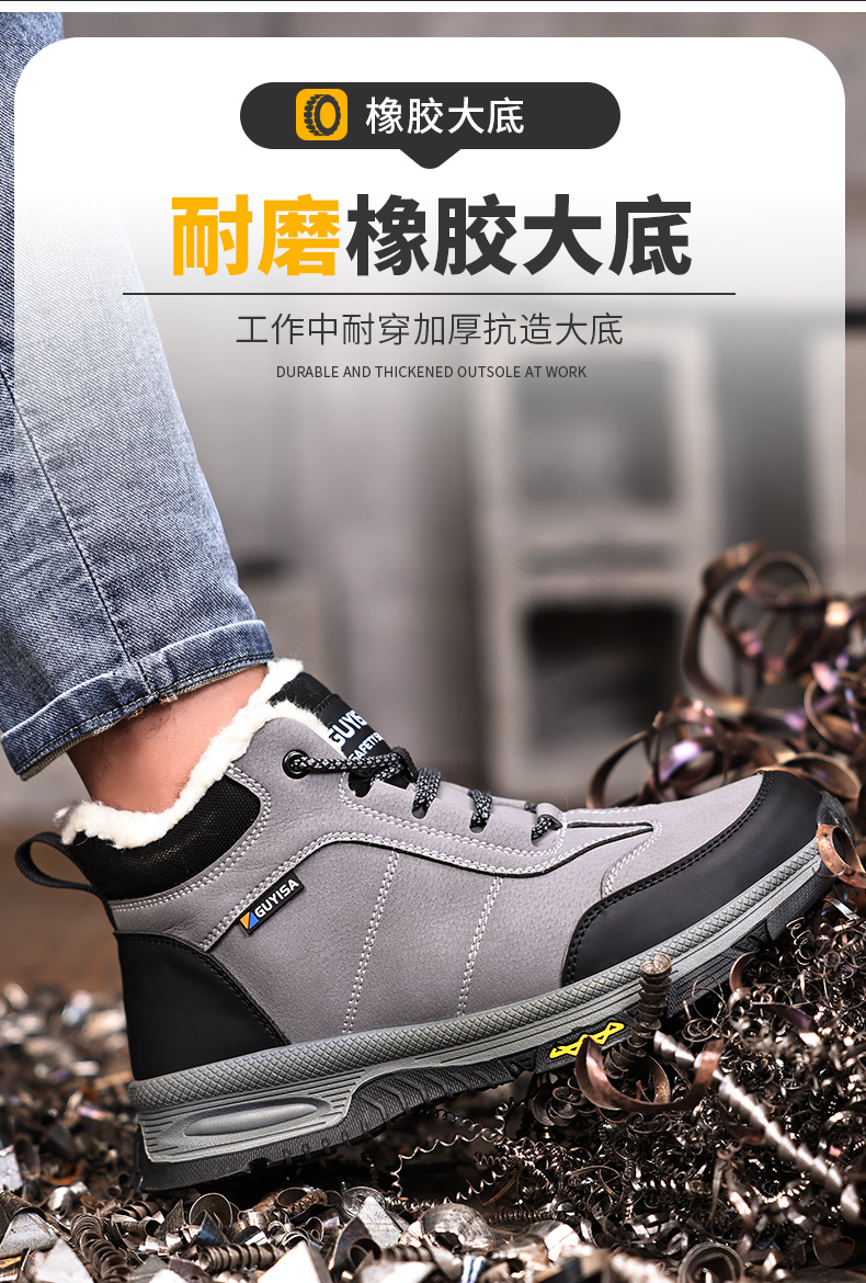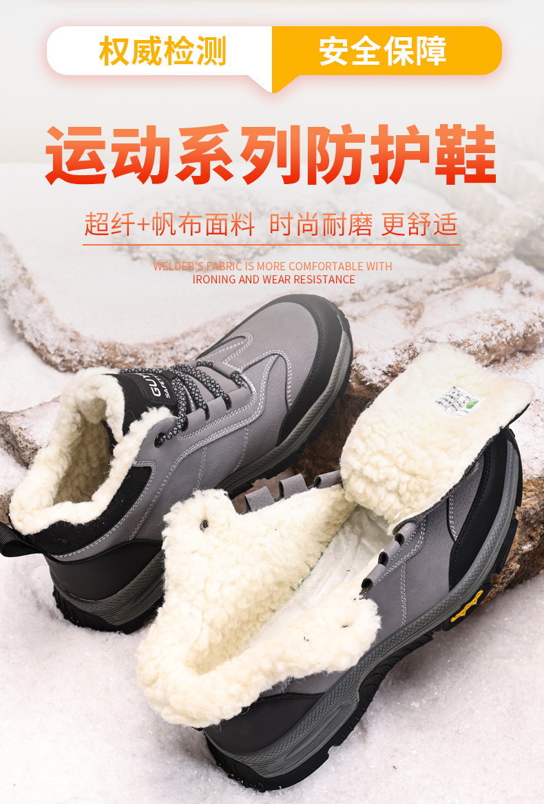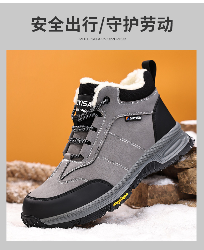 新款冬季加绒劳保鞋男超纤防水钢包头防砸防刺舒适橡胶底工地防护高帮功能鞋护踝