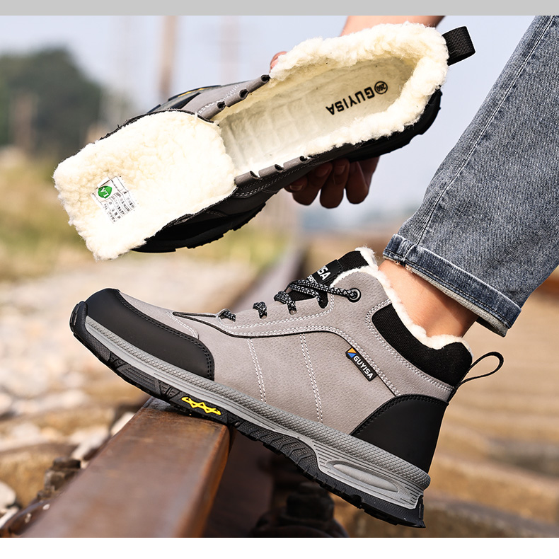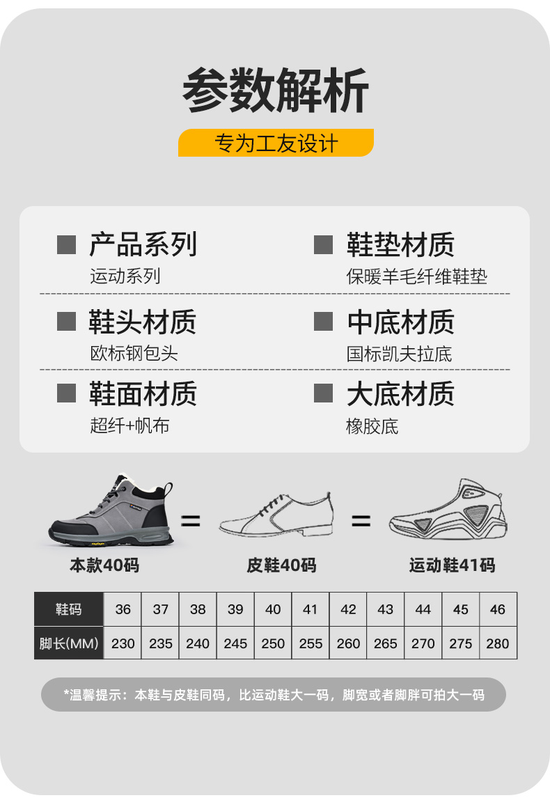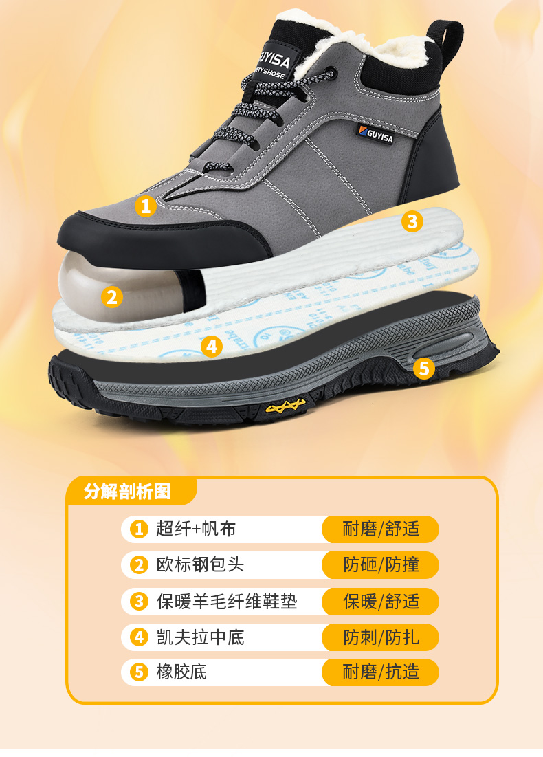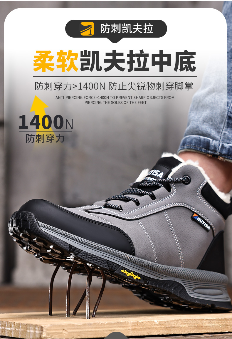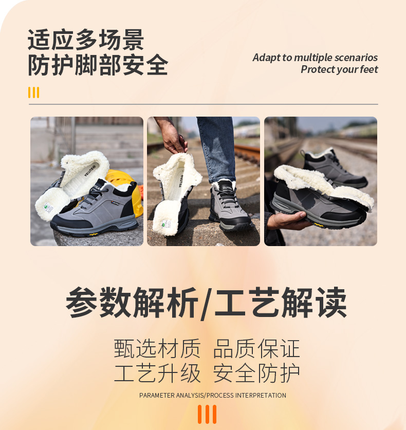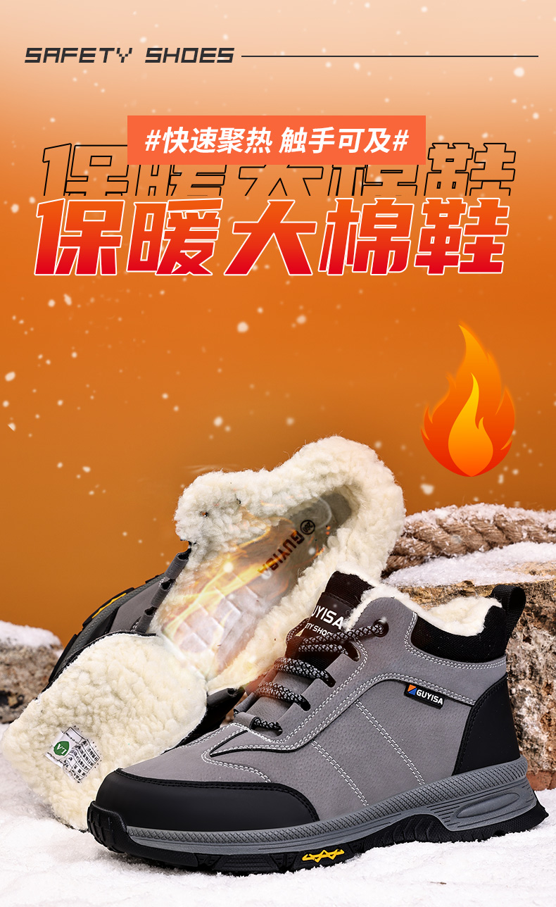 新款冬季加绒劳保鞋男超纤防水钢包头防砸防刺舒适橡胶底工地防护高帮功能鞋护踝