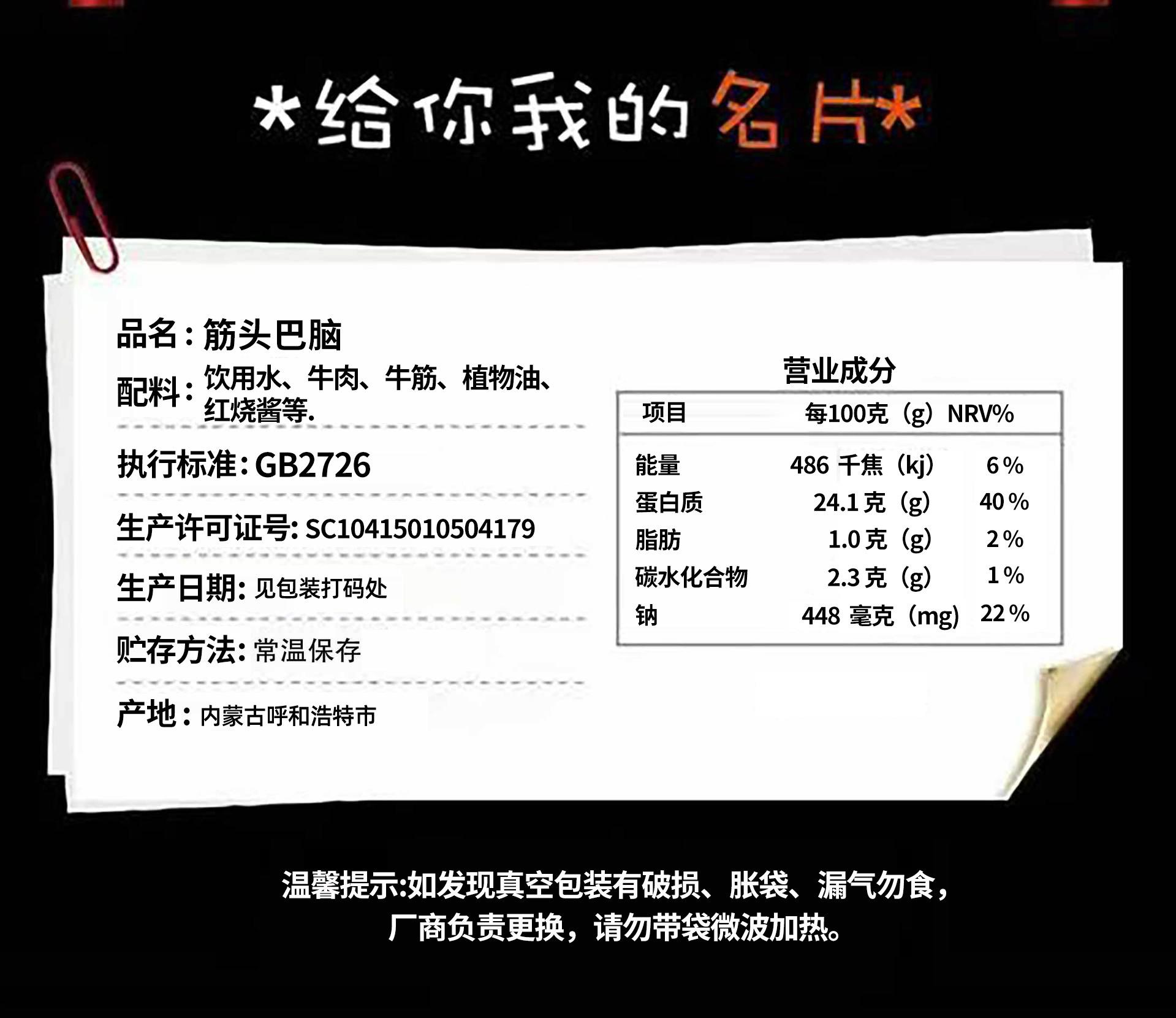 【限时秒杀】【2袋装】草原良友熟食筋头巴脑牛肉筋牛蹄筋带筋炖牛肉开袋即食预制菜加热速食*2袋