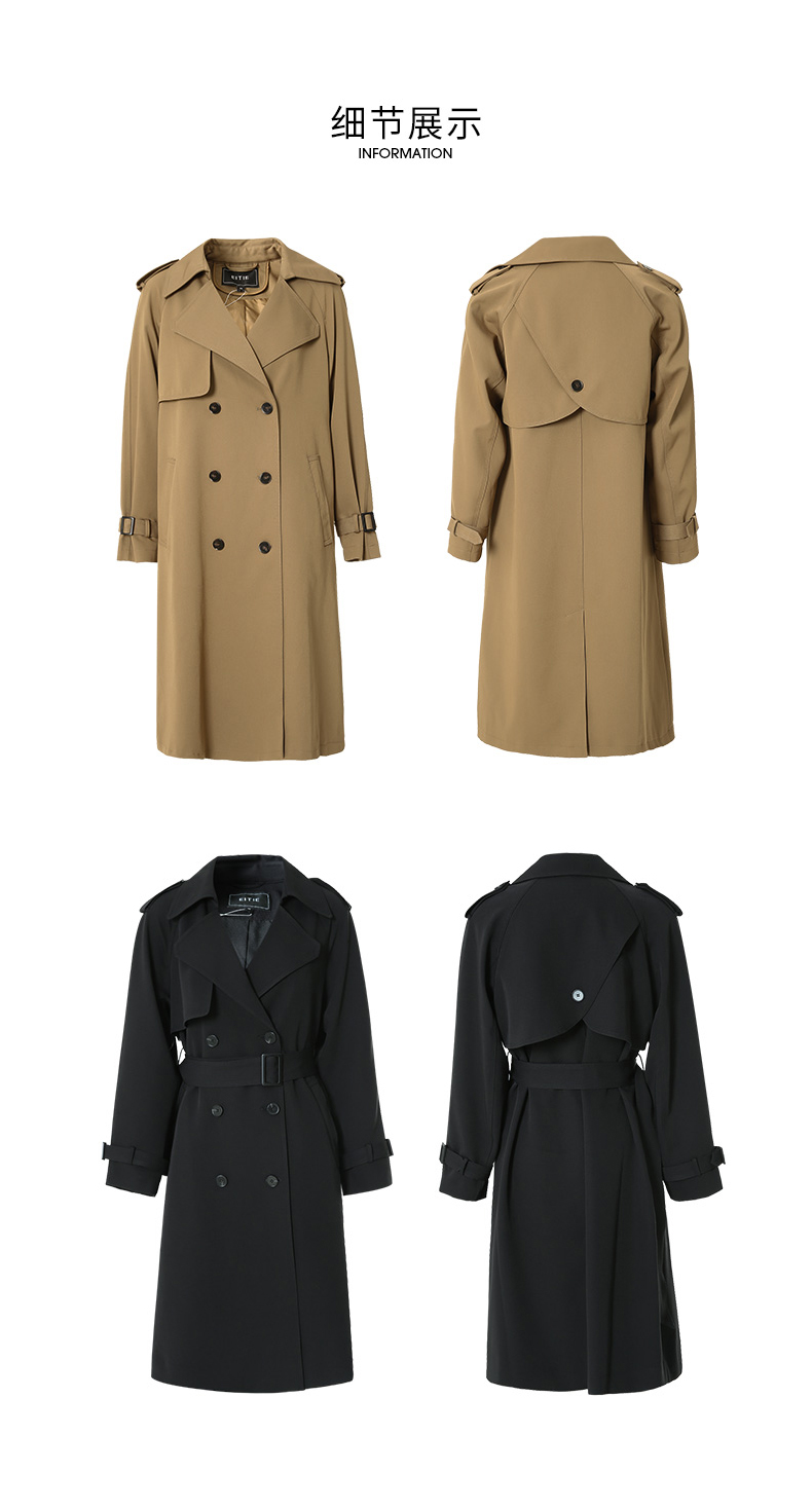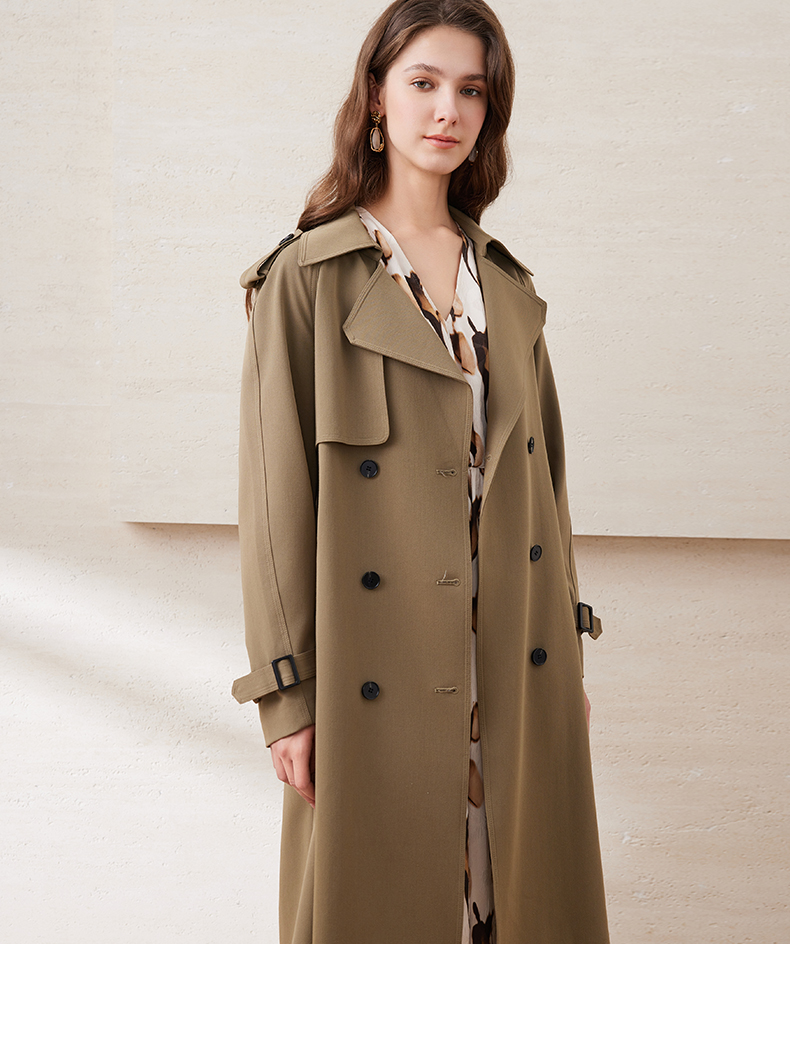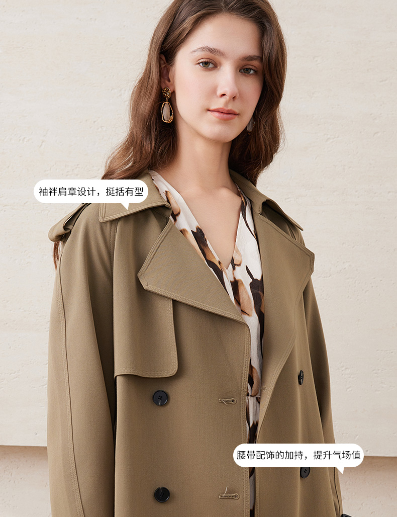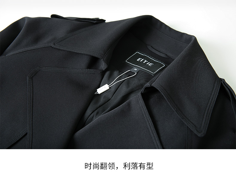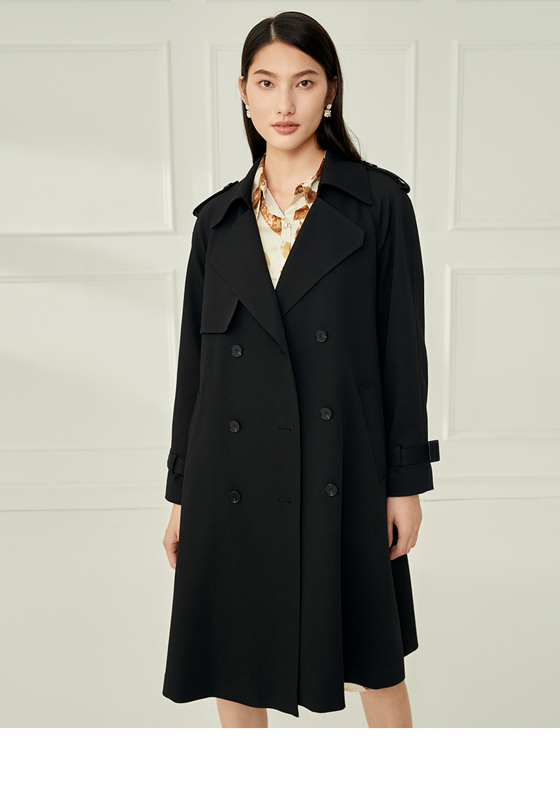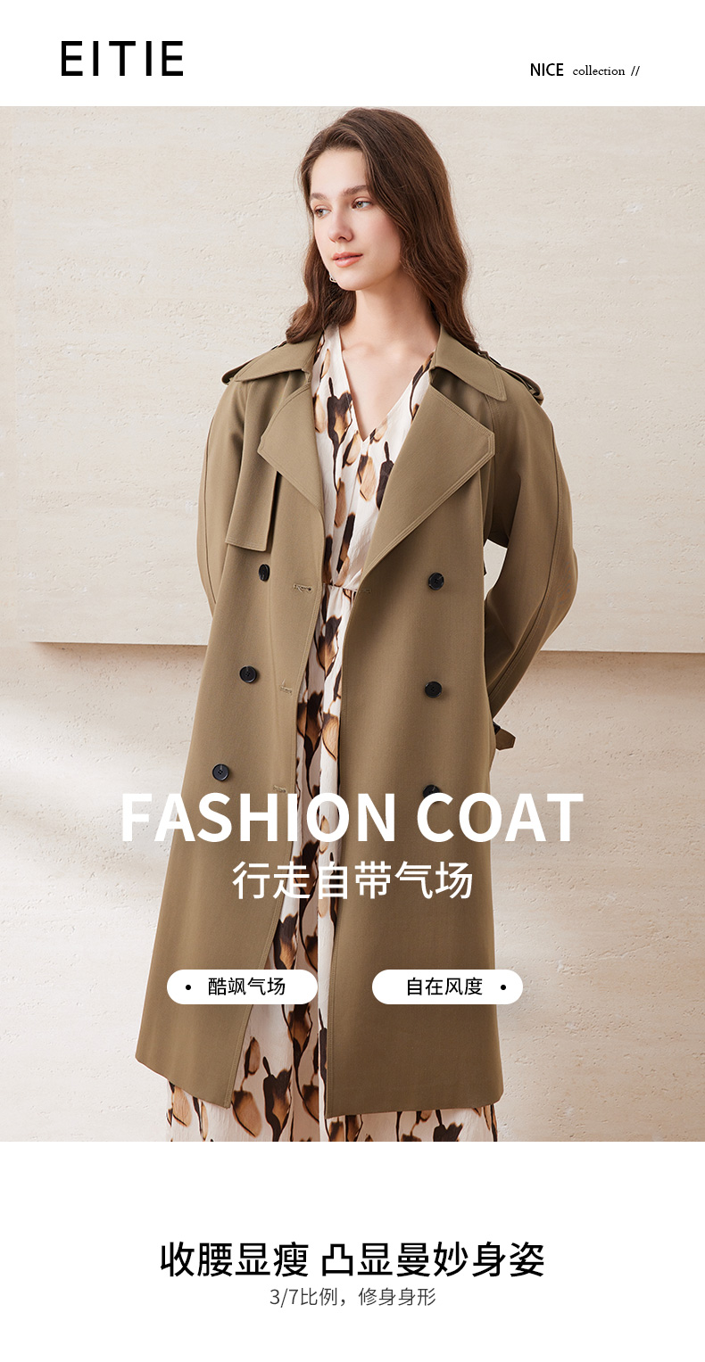 EITIE爱特爱秋季新款酷感经典双排扣通勤长款风衣外套C2204004