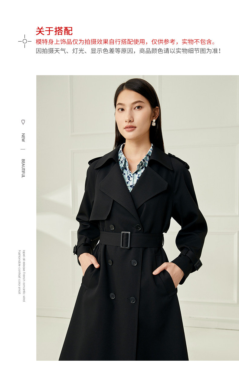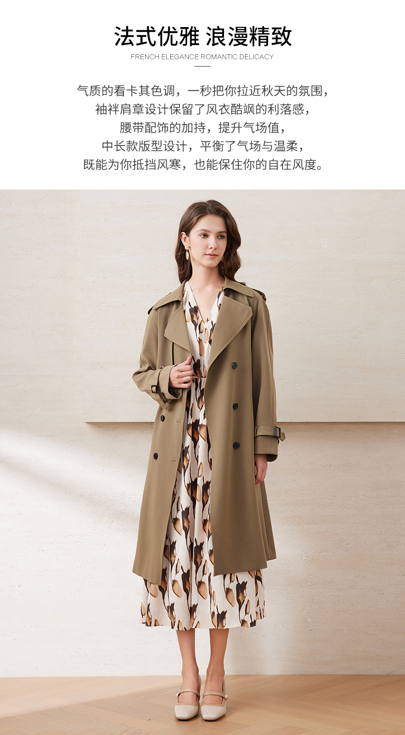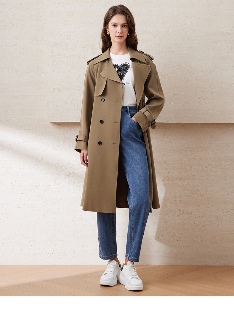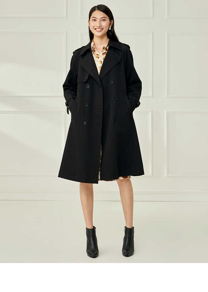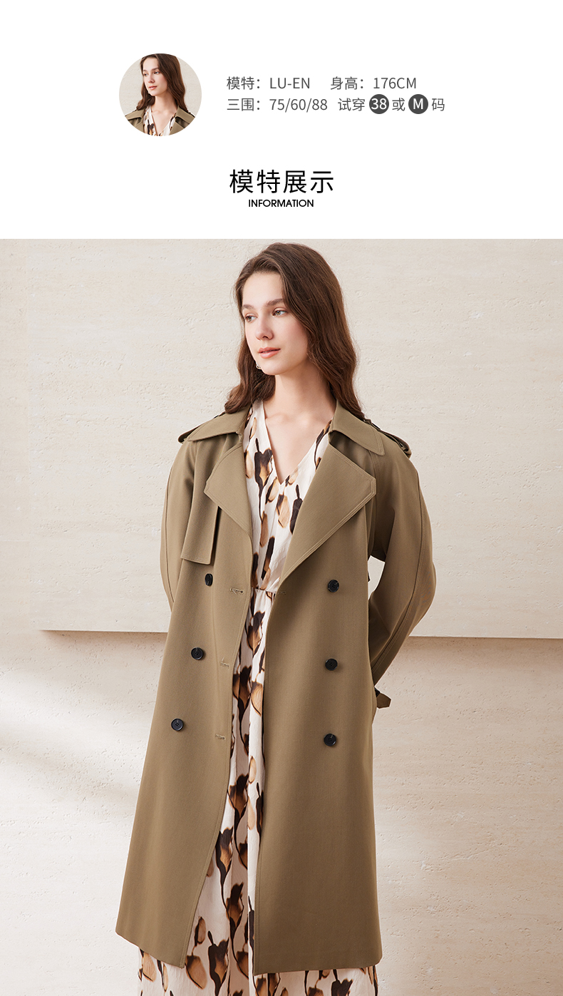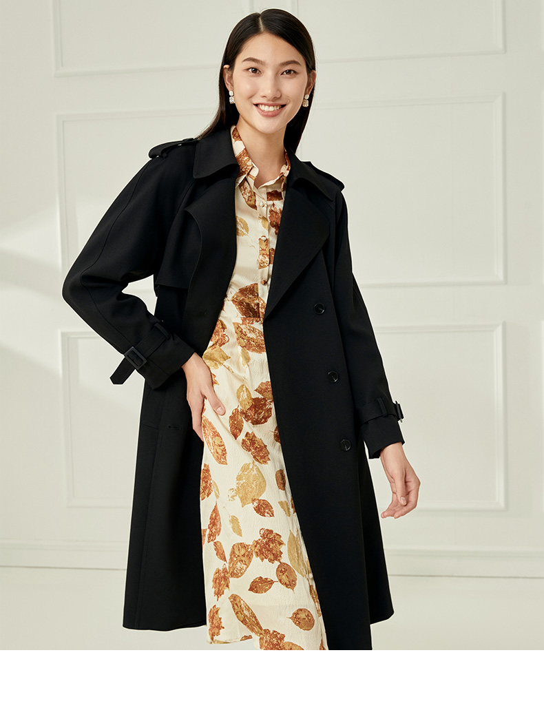 EITIE爱特爱秋季新款酷感经典双排扣通勤长款风衣外套C2204004