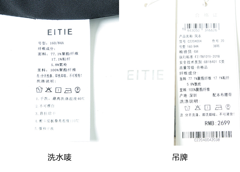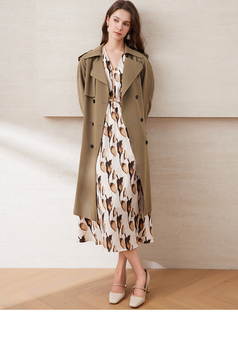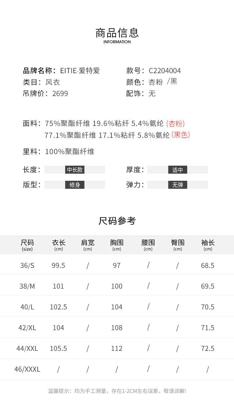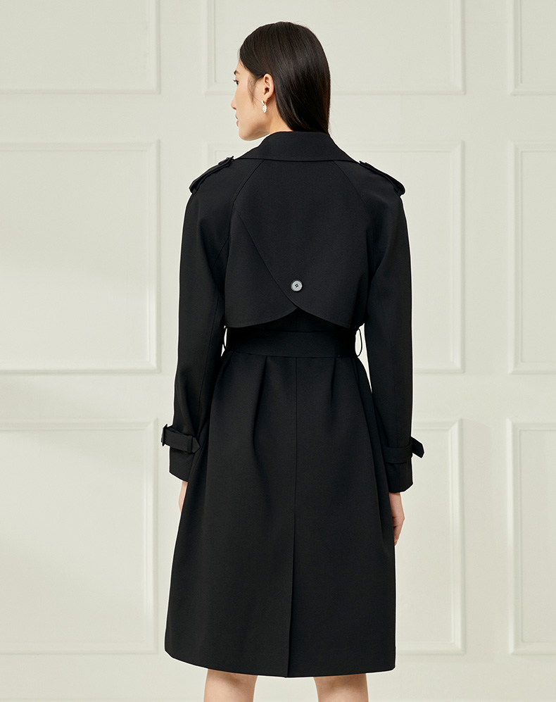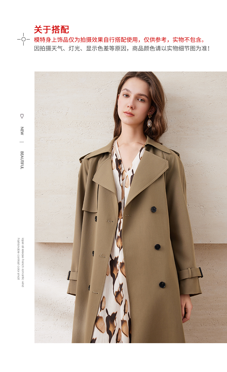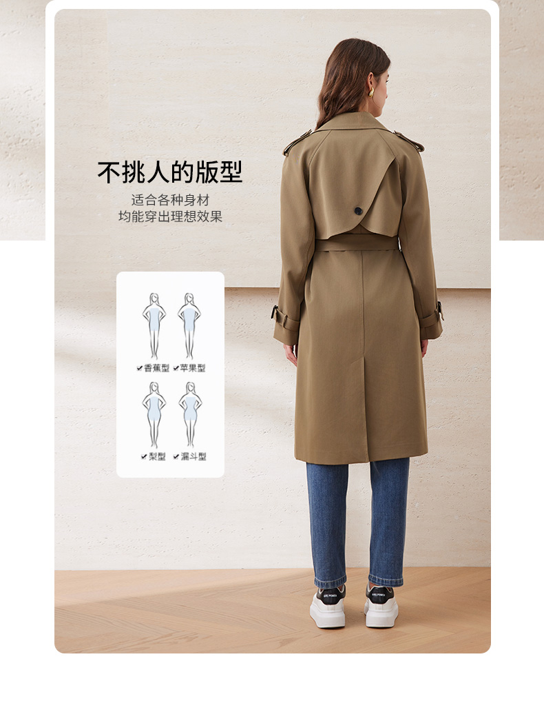 EITIE爱特爱秋季新款酷感经典双排扣通勤长款风衣外套C2204004