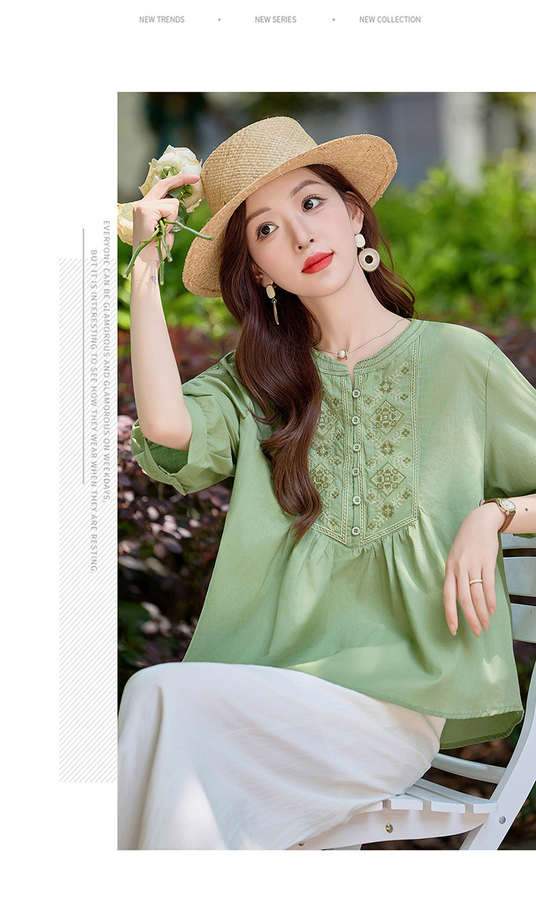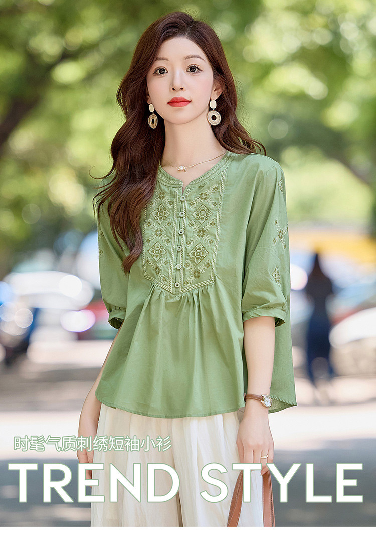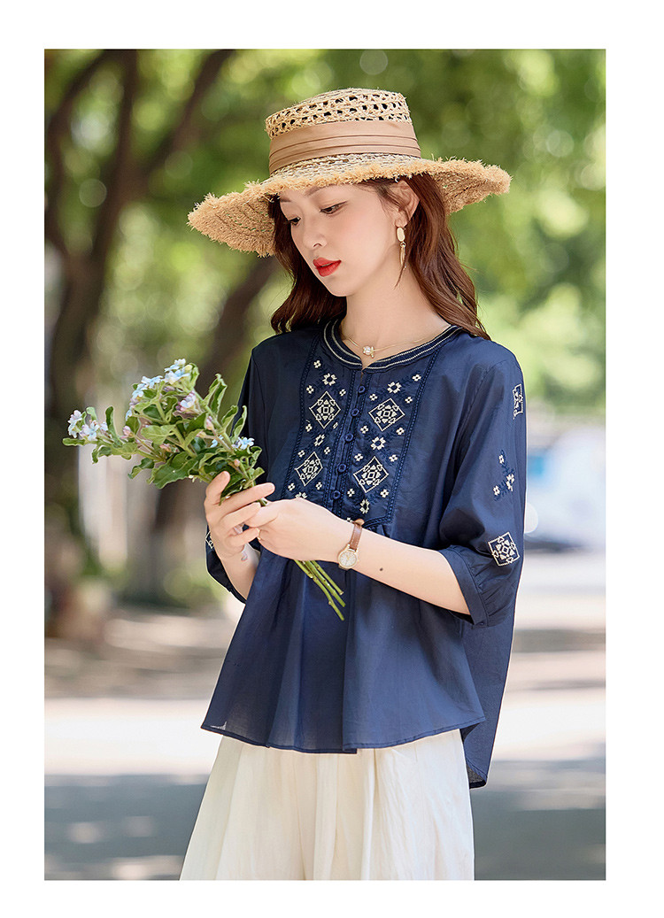 【预售3天】PY 2025新款气质纯棉刺绣衬衫 &69017-1