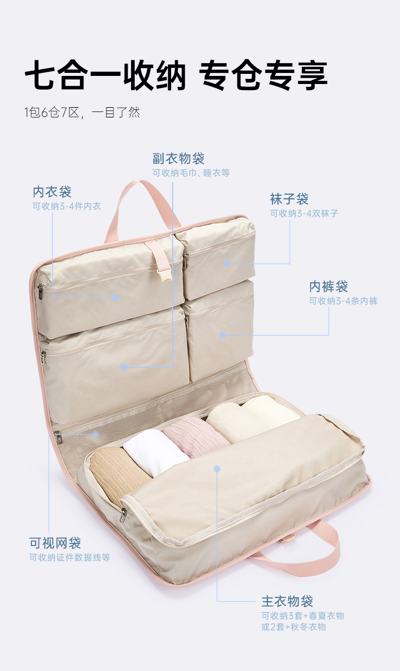 卡拉羊出差旅行7合1行李收纳包衣物可折叠悬挂式内衣分装袋CX3014