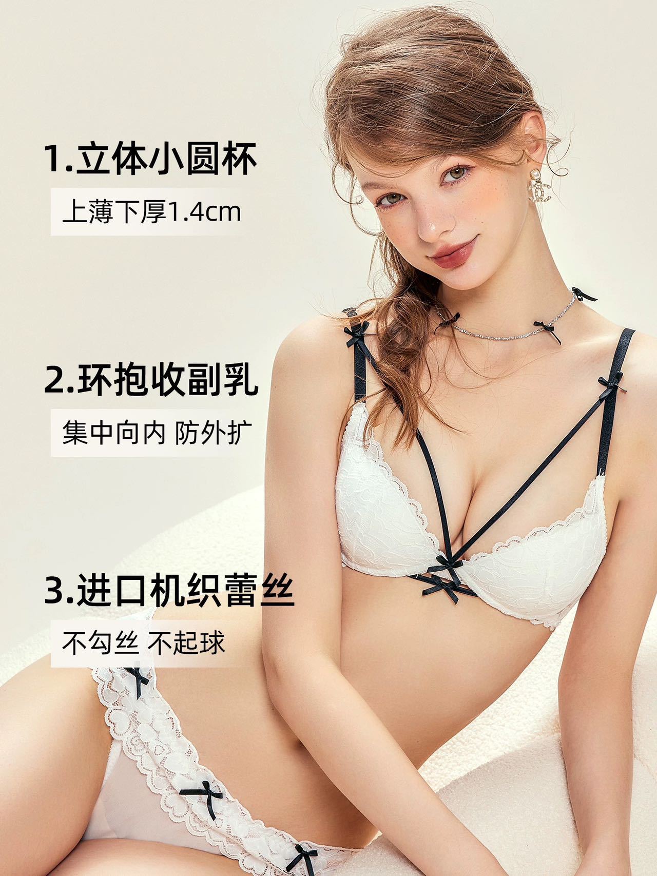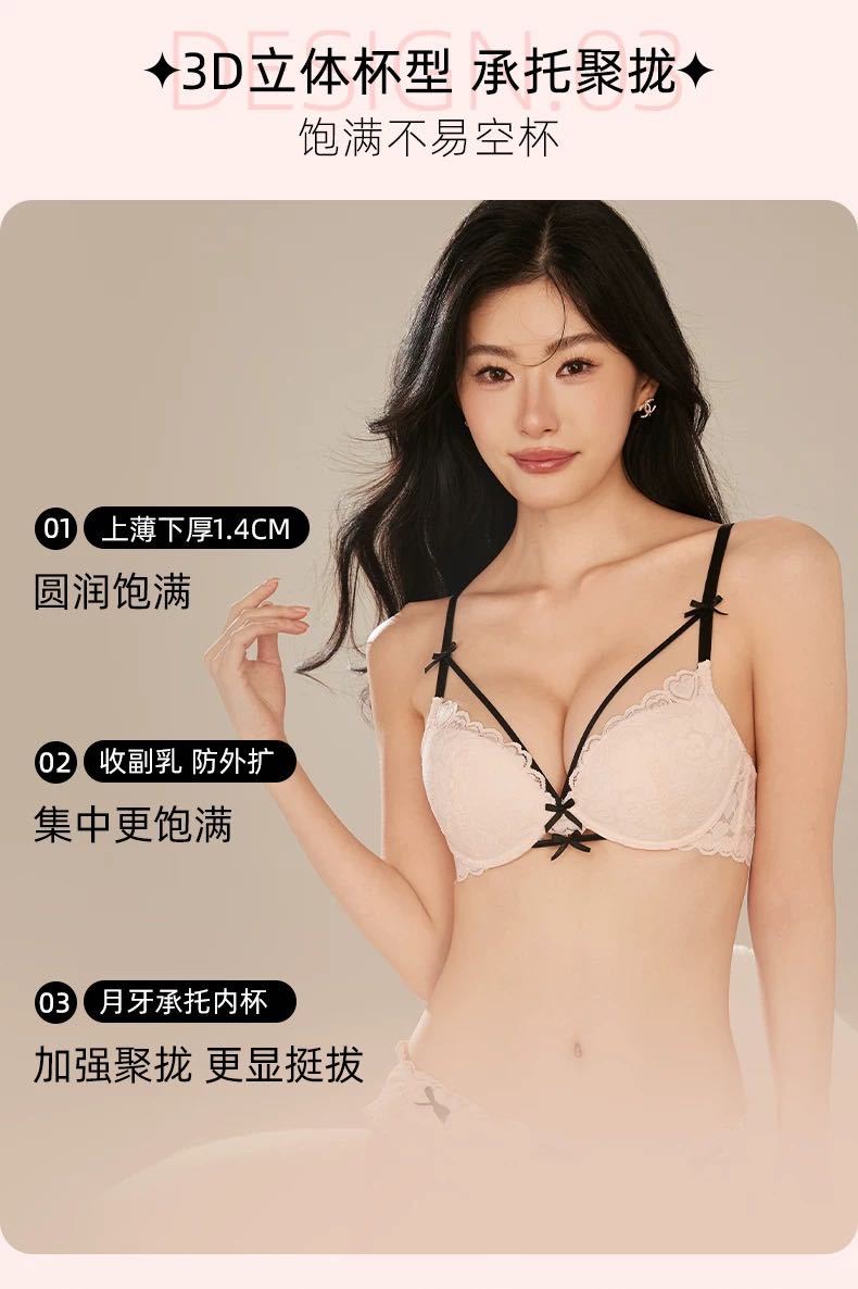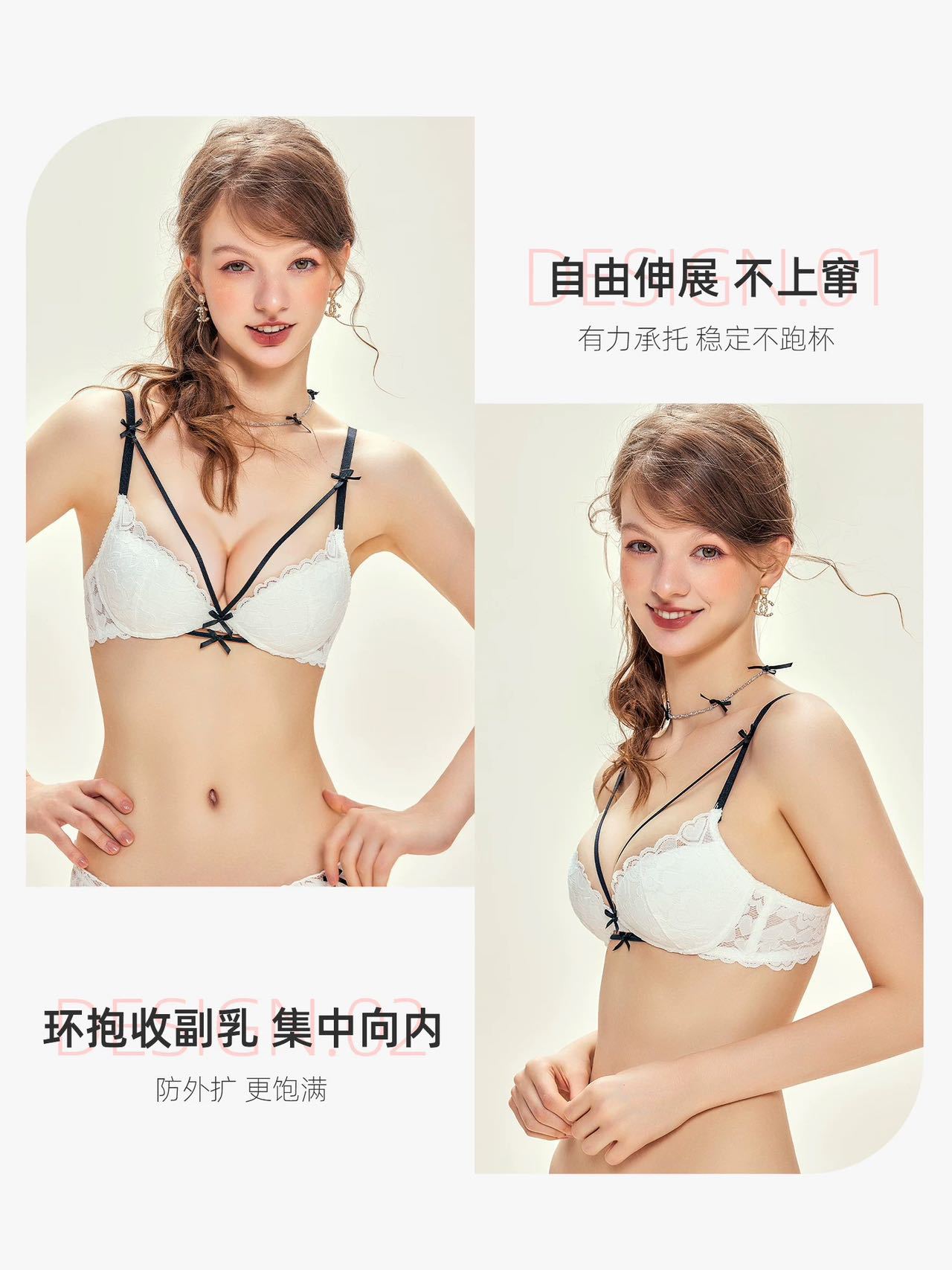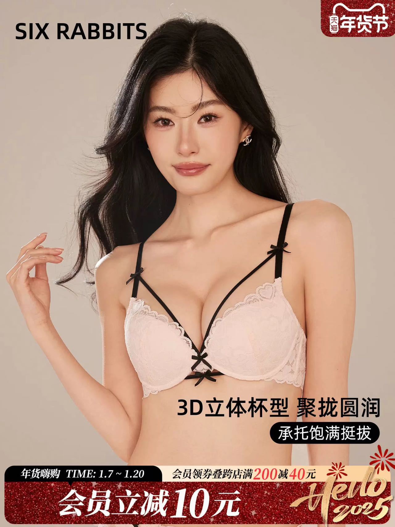 【轻柔亲肤不扎不磨❗️防窜防跑杯】六只兔子小聚蛋内衣女小胸聚拢显大蕾丝收副乳无钢圈甜美聚拢内衣。jc
