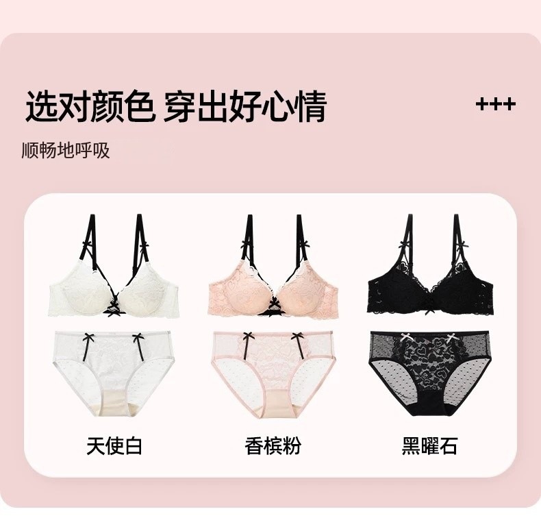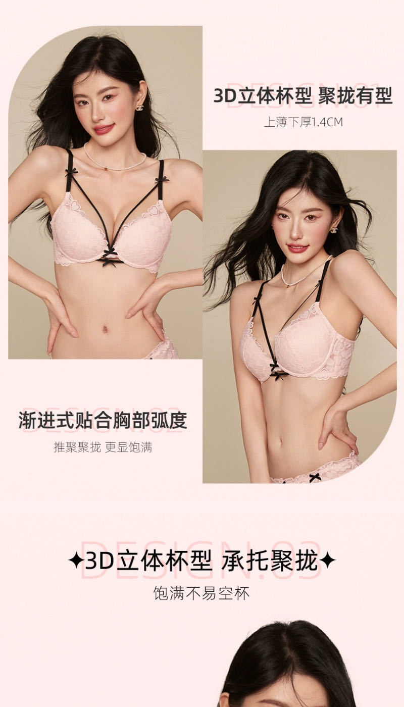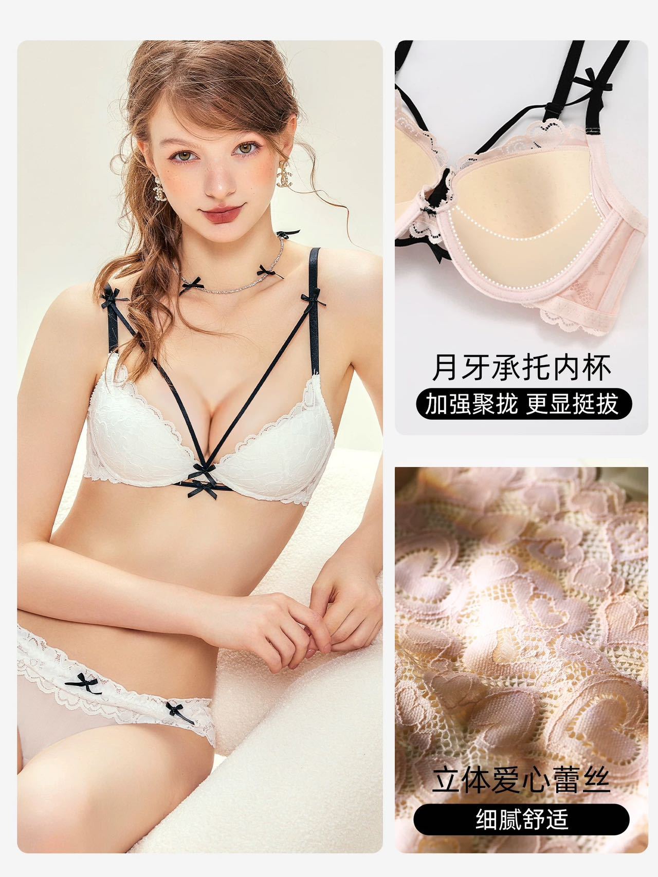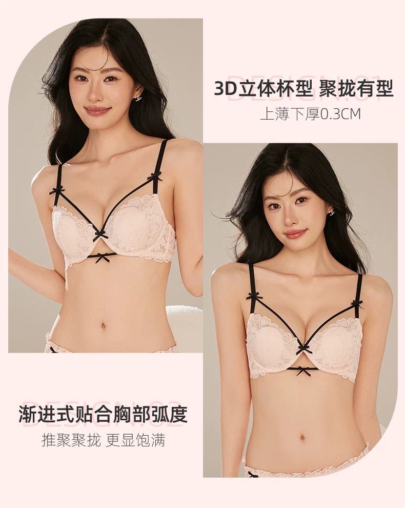 【轻柔亲肤不扎不磨❗️防窜防跑杯】六只兔子小聚蛋内衣女小胸聚拢显大蕾丝收副乳无钢圈甜美聚拢内衣。jc
