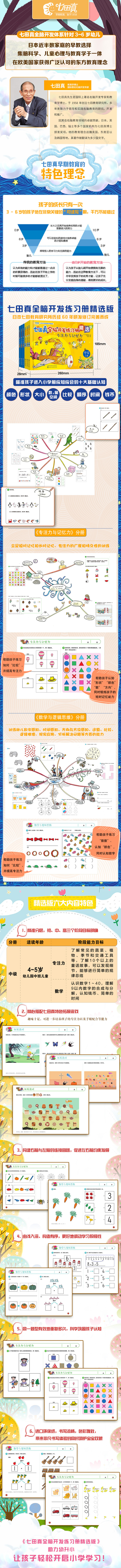 七田真全脑开发练习册:专注力与记忆力+数学与逻辑思维:中级(套装6册)