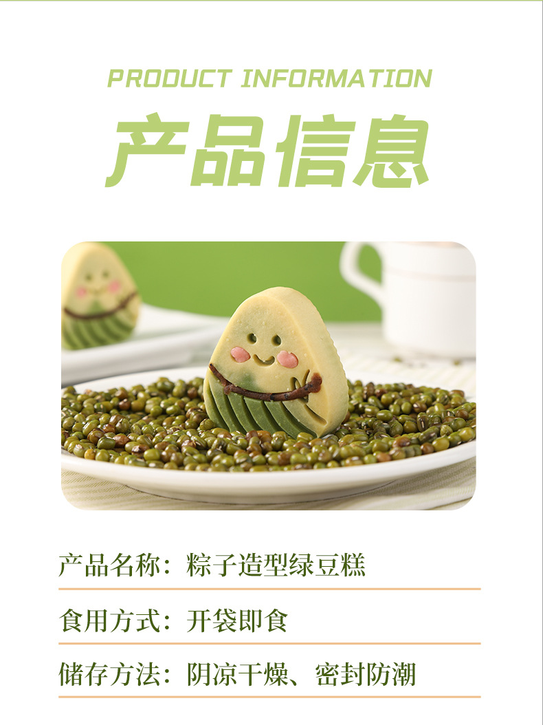【粽子造型绿豆糕,可爱造型,好吃又好玩~】网红粽子造型绿豆糕 中式传统冰糕无蔗糖零食 办公室下午茶独立包装-QQ