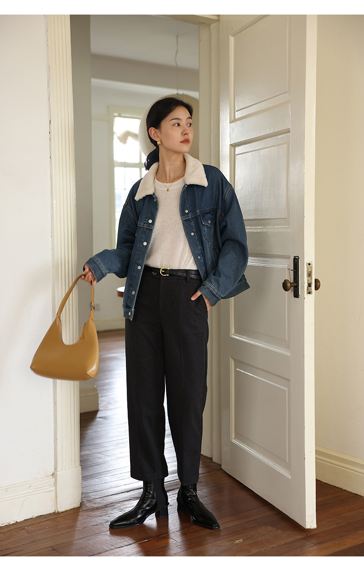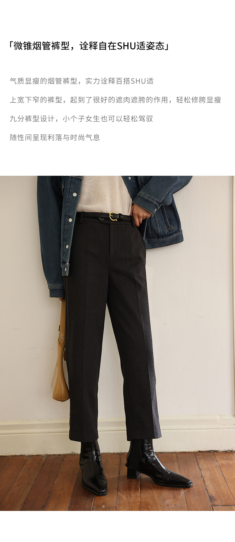 HeyDress复古休闲裤女秋季高腰宽松显瘦烟管裤西装裤百搭九分裤子