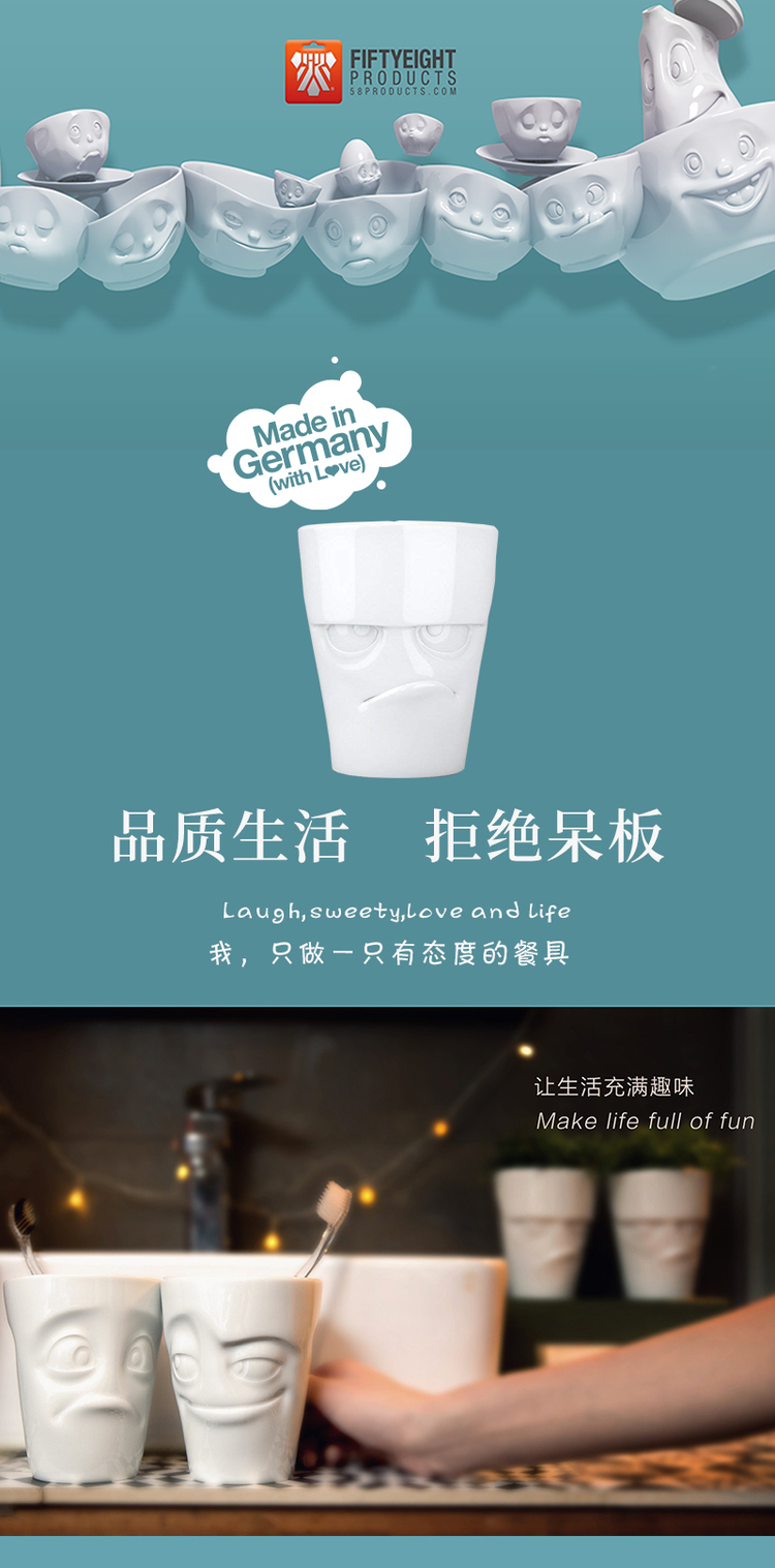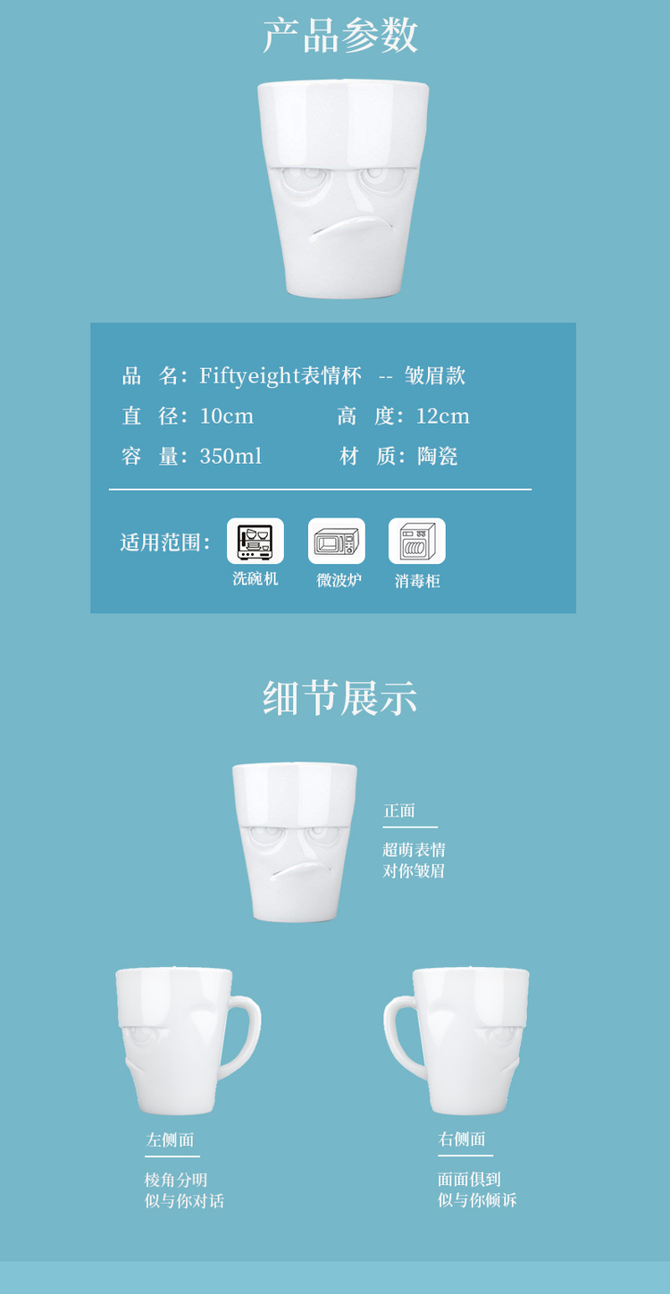 【Fiftyeight 】德国原产陶瓷卡通表情杯水杯茶杯350ml 皱眉