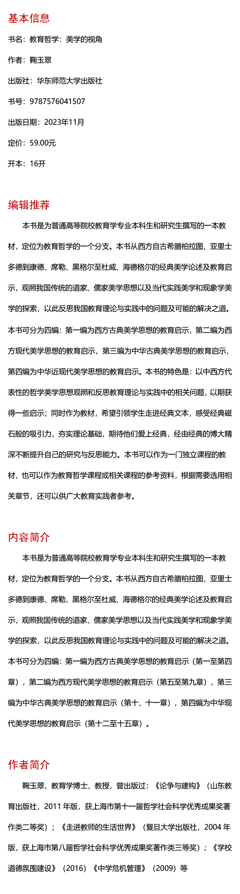 教育哲学 美学的视角 当代教育学精品教材 鞠玉翠