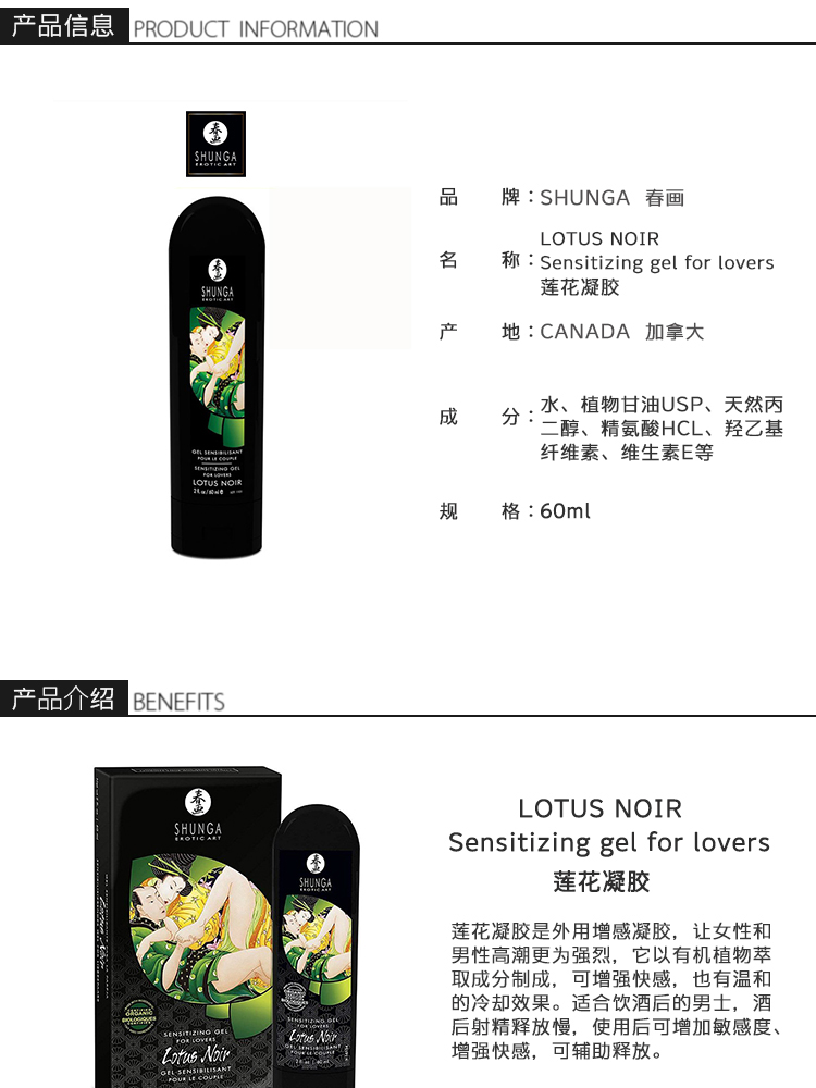 SHUNGA春画 莲花凝胶 Lotus noir 男女适用高潮液