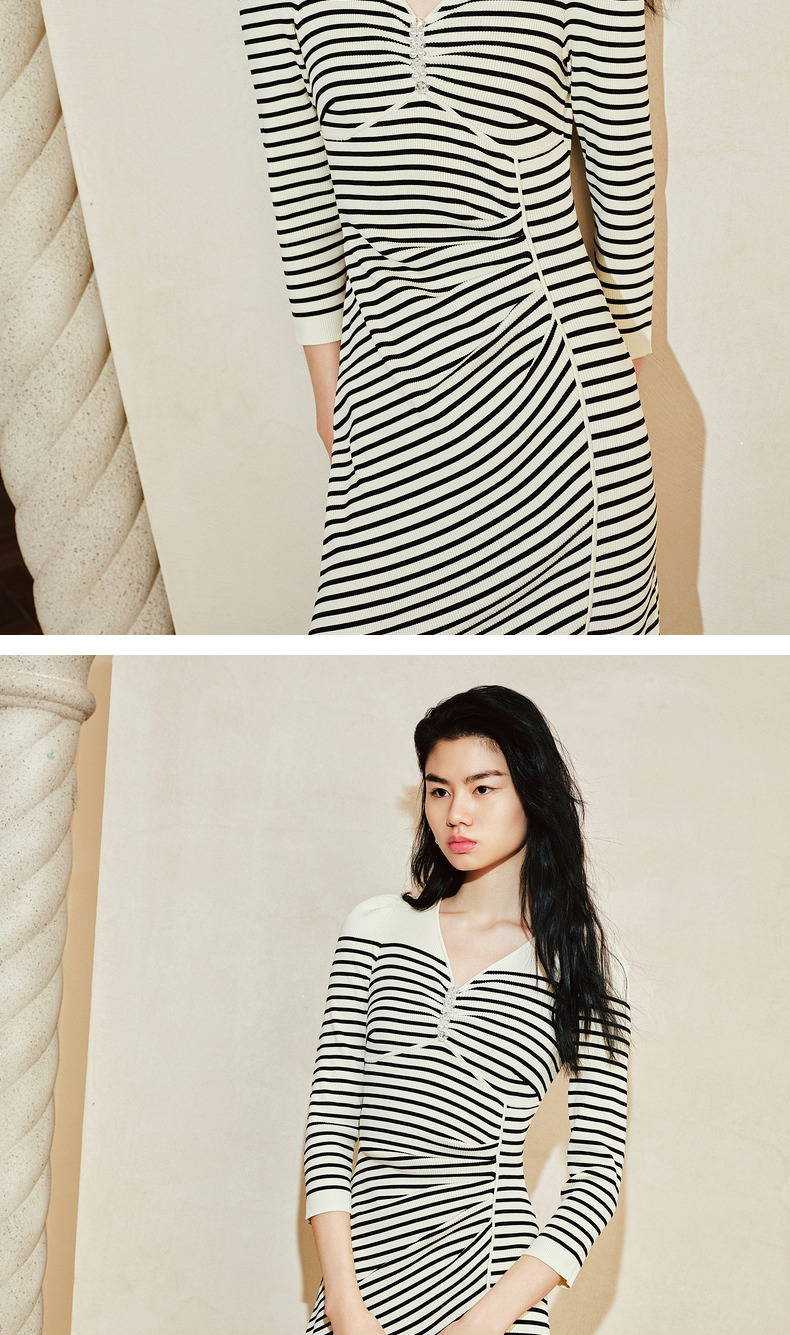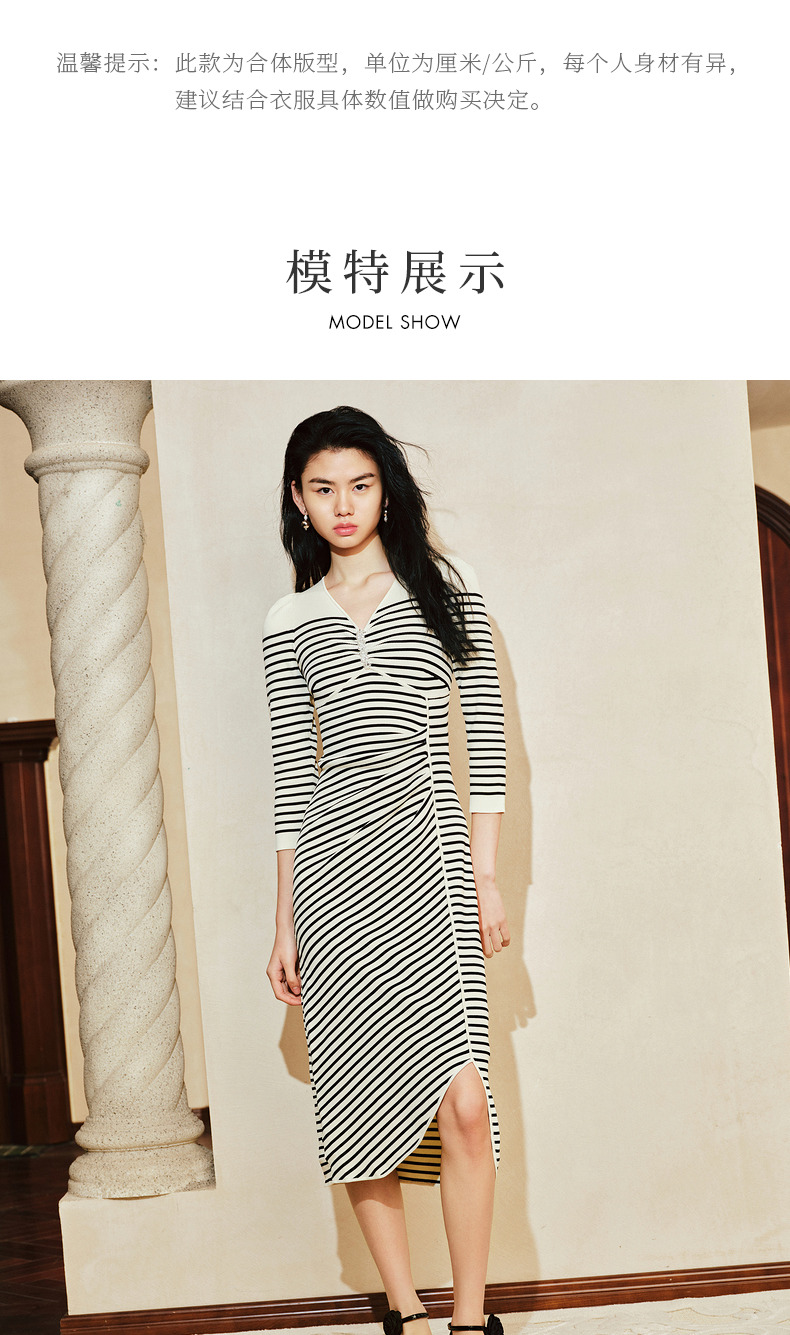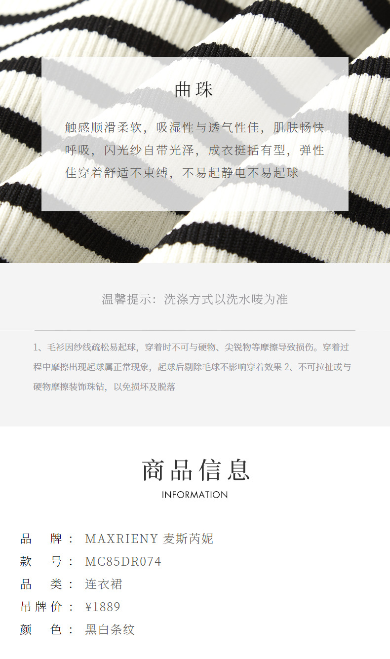 【商场同款-摩登女爵】MAXRIENY*休闲条纹抽褶针织连衣裙(货号:MC85DR074)