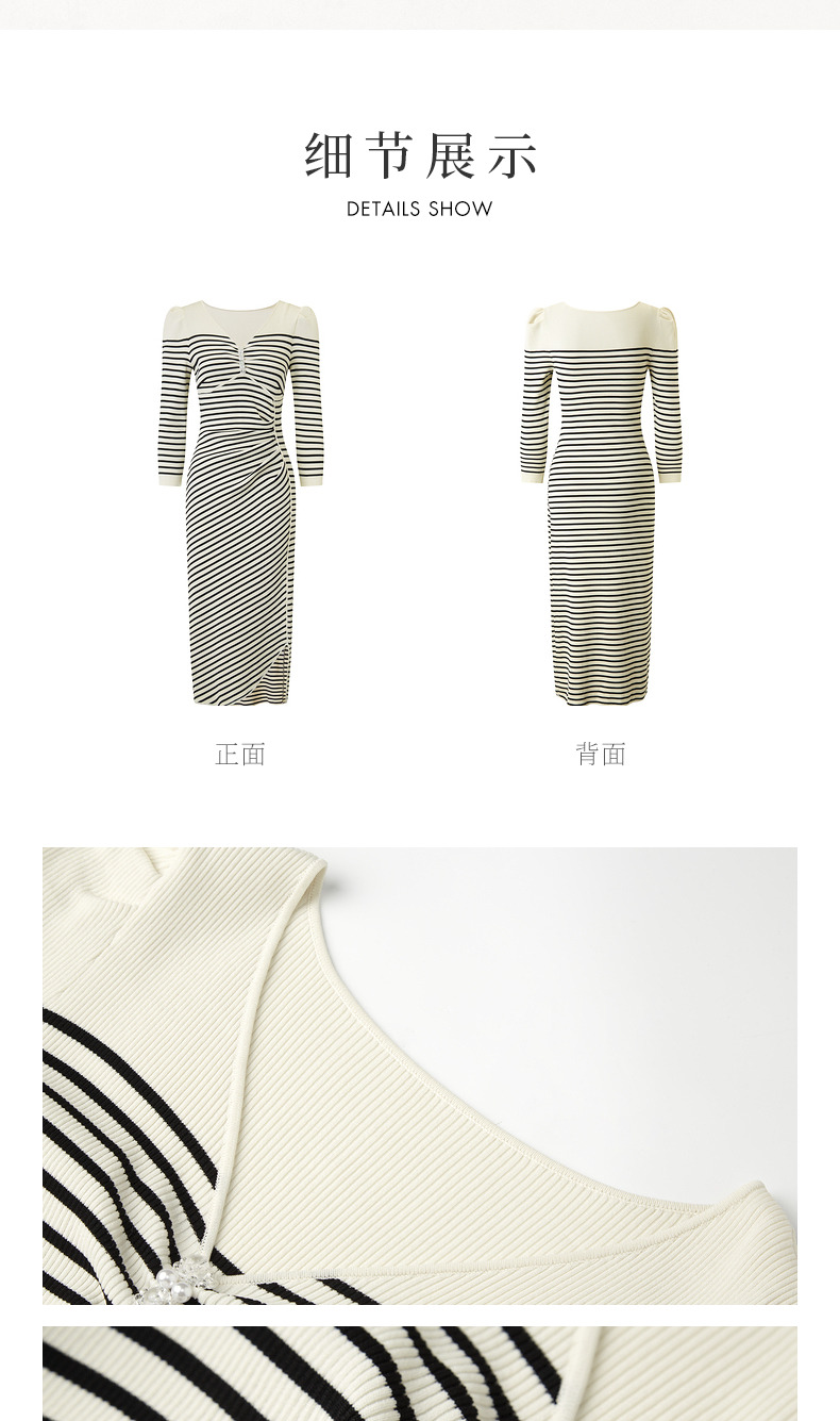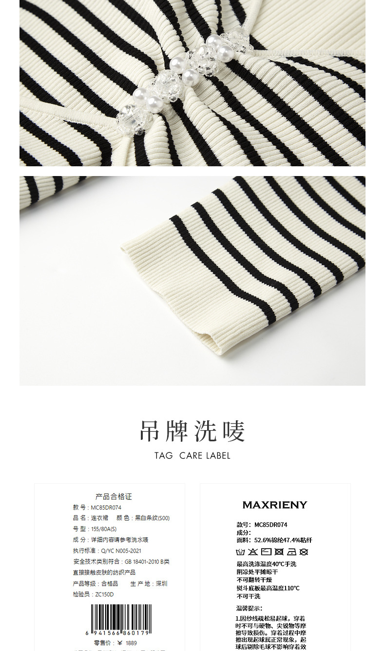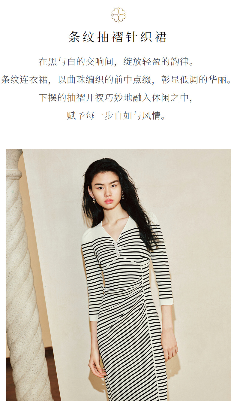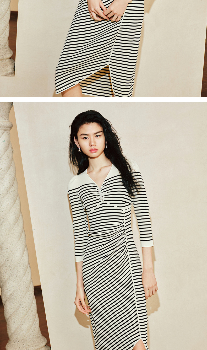 【商场同款-摩登女爵】MAXRIENY*休闲条纹抽褶针织连衣裙(货号:MC85DR074)