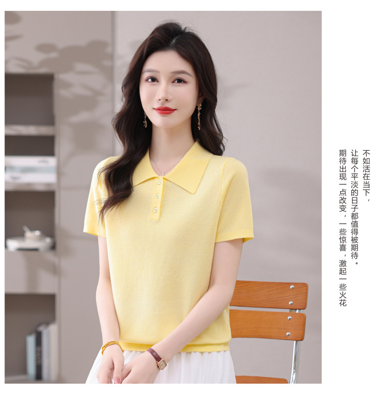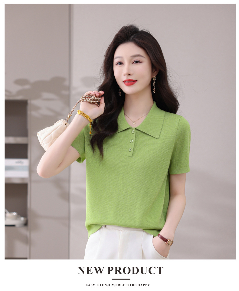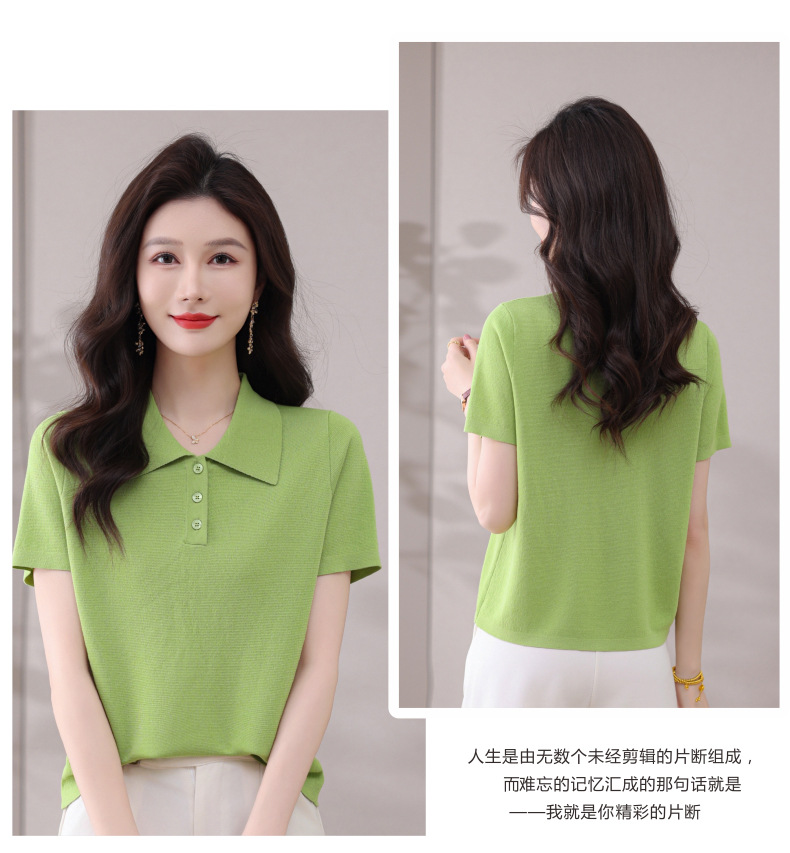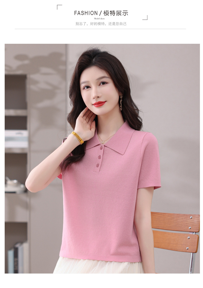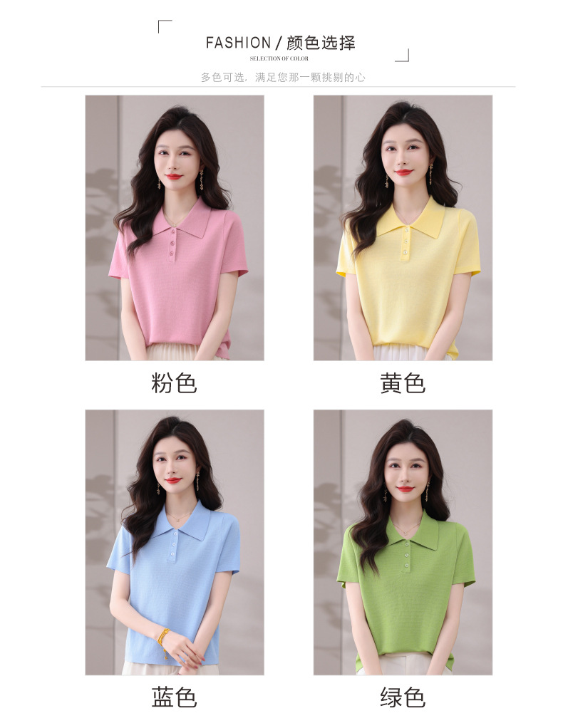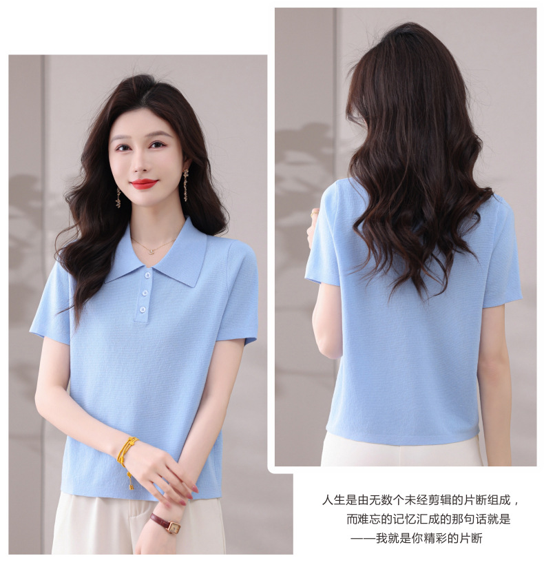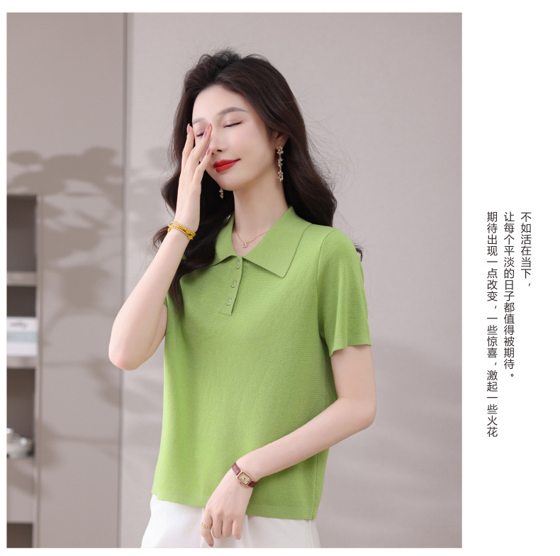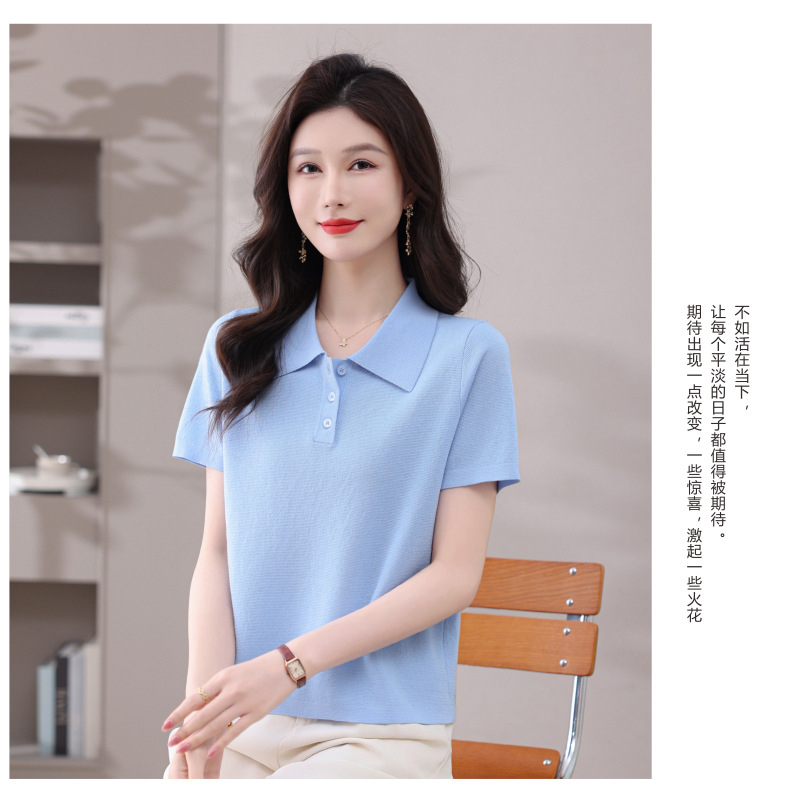 CC-101-31802时尚天丝翻领短袖t恤女2025新款夏季薄款莱赛尔显瘦减龄针织上衣