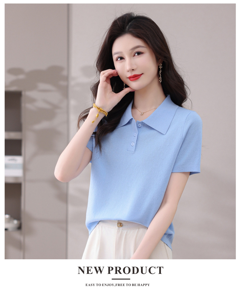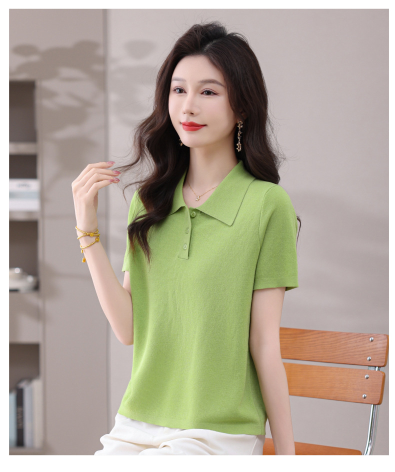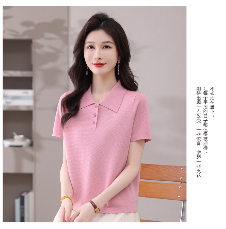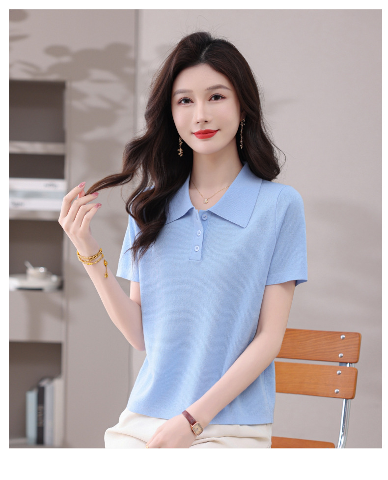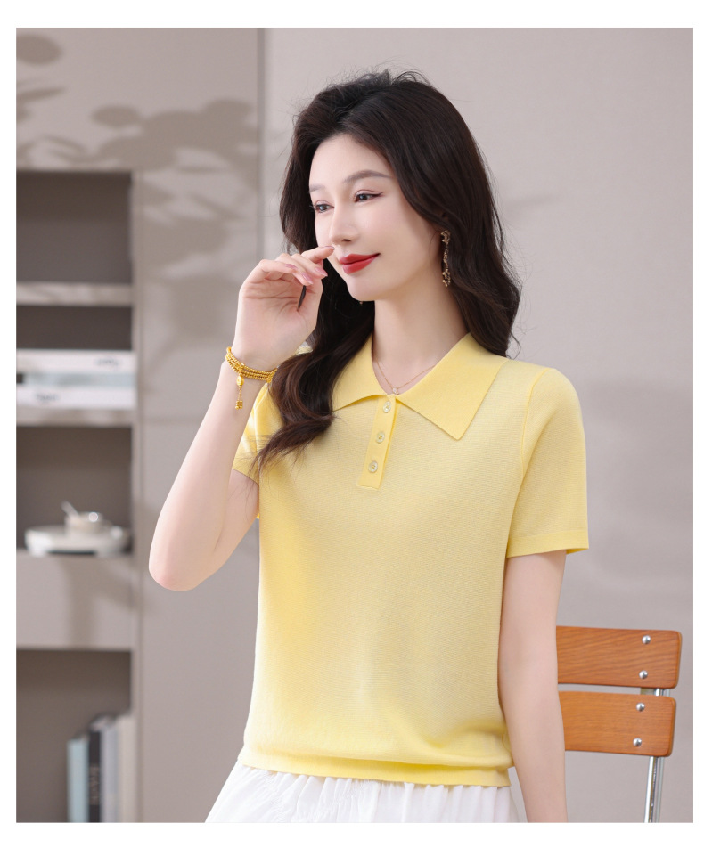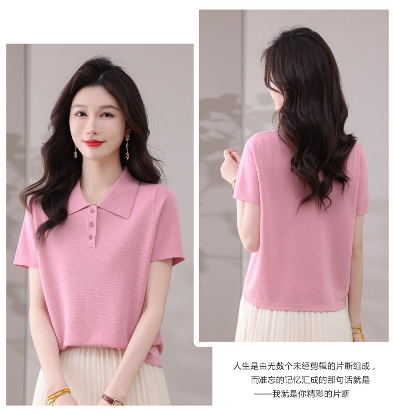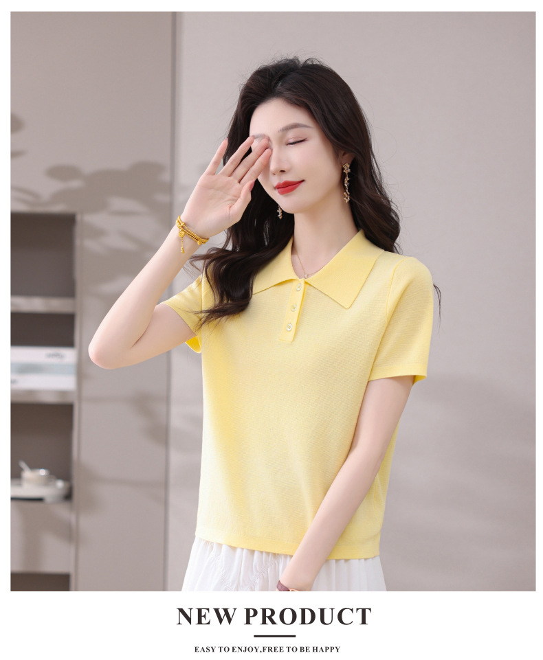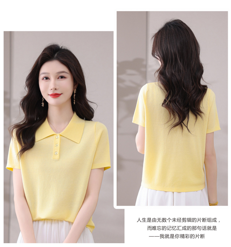 CC-101-31802时尚天丝翻领短袖t恤女2025新款夏季薄款莱赛尔显瘦减龄针织上衣