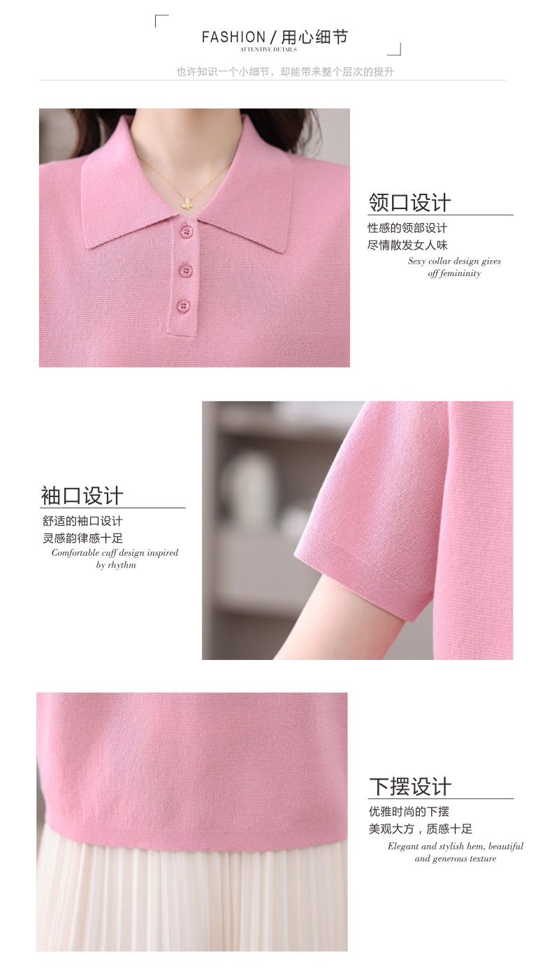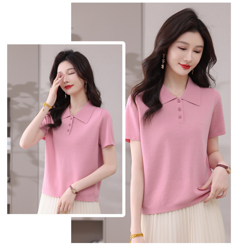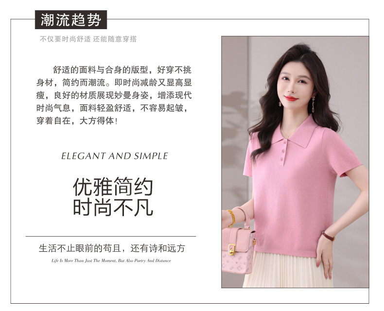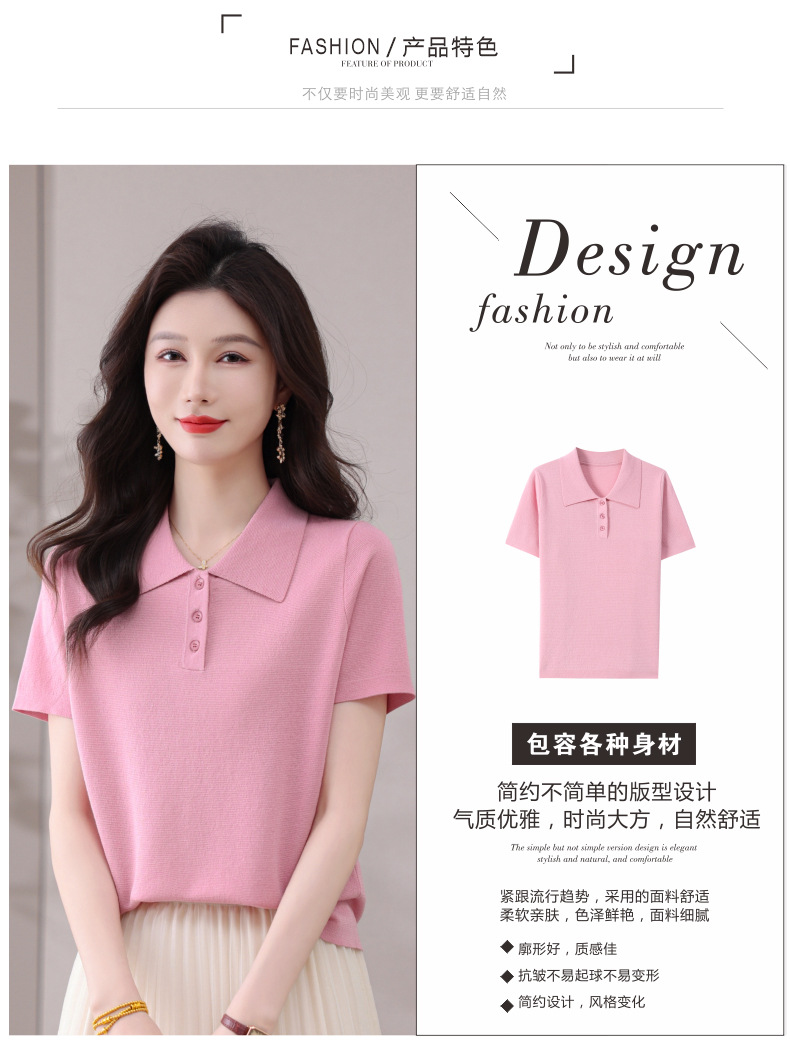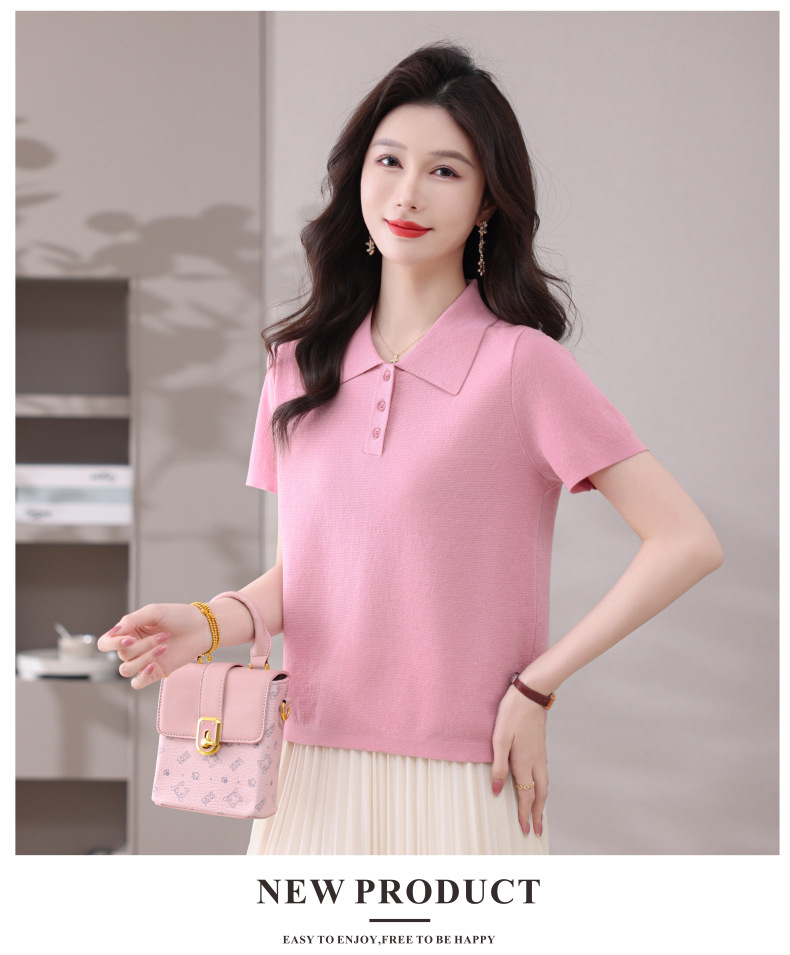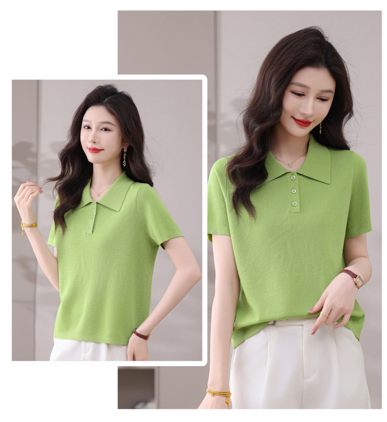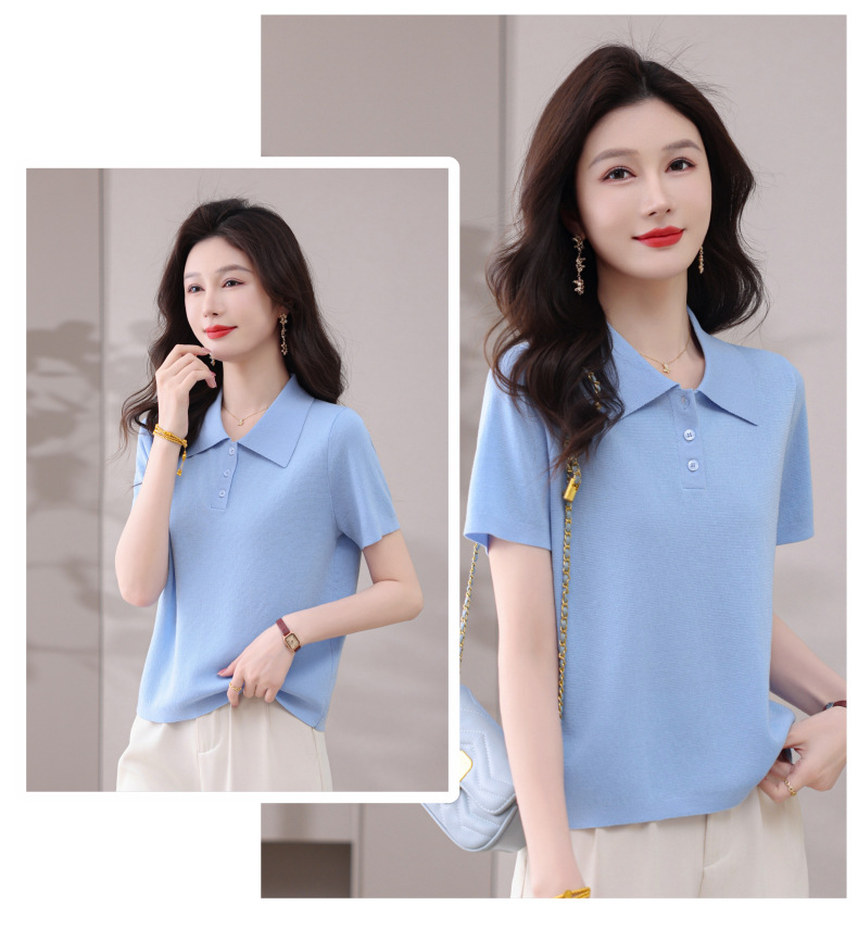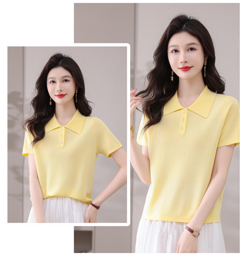 CC-101-31802时尚天丝翻领短袖t恤女2025新款夏季薄款莱赛尔显瘦减龄针织上衣