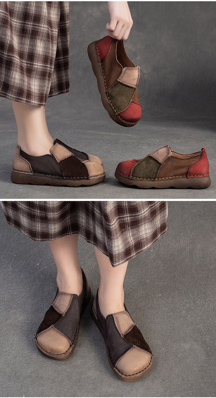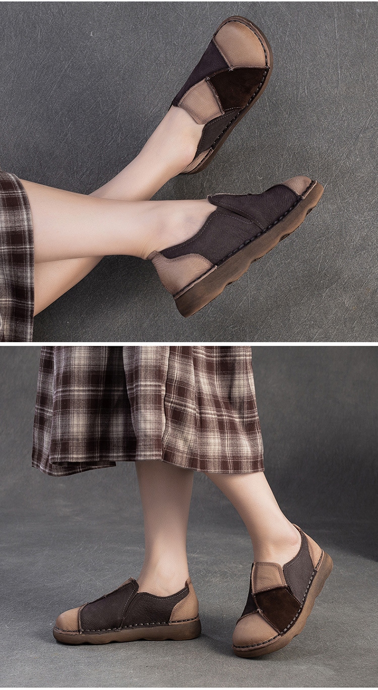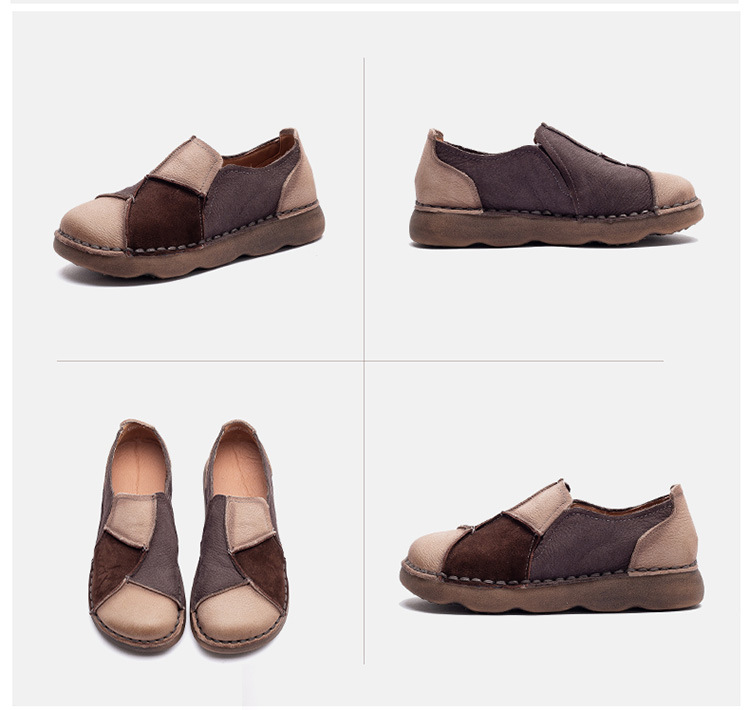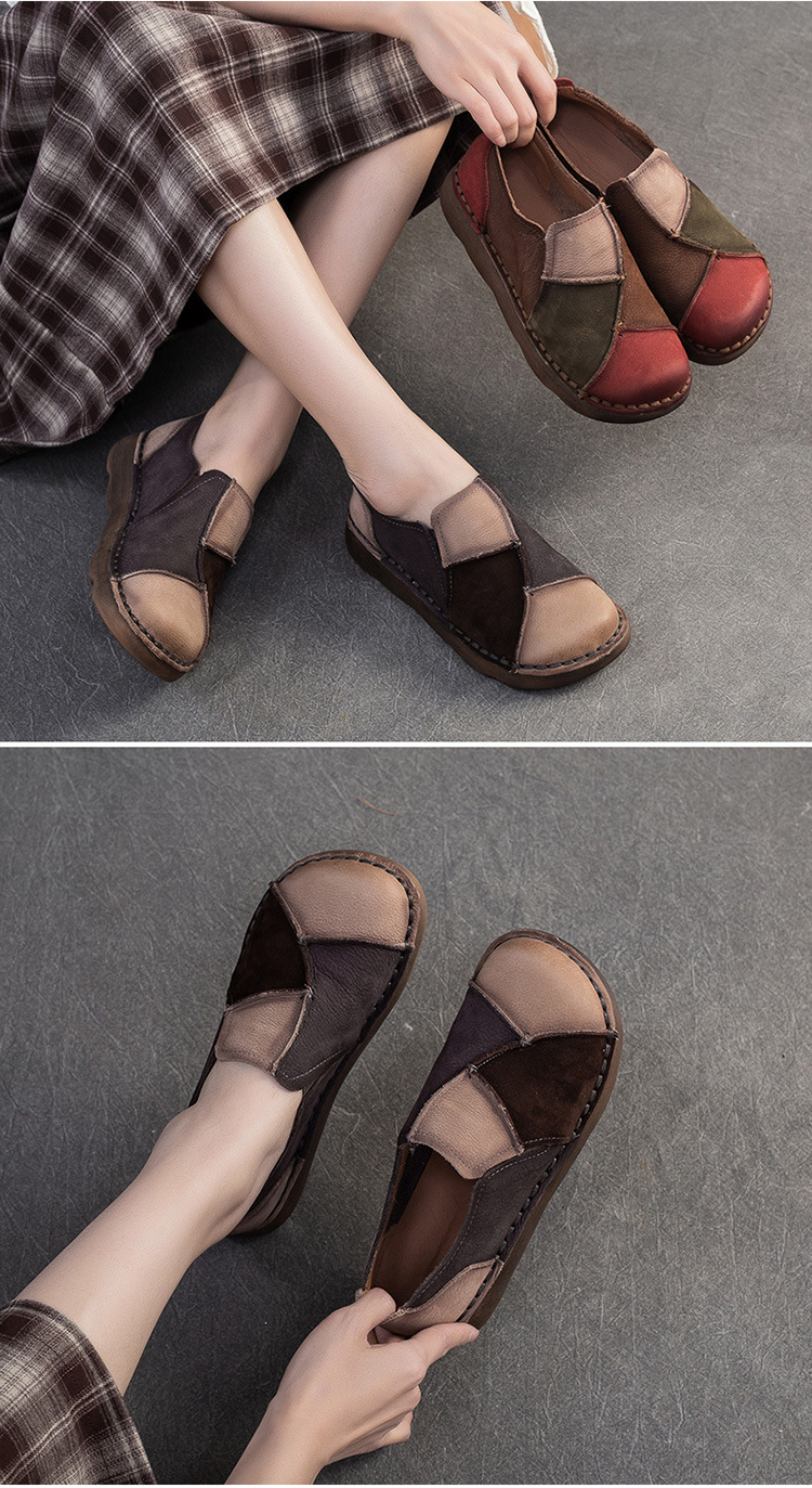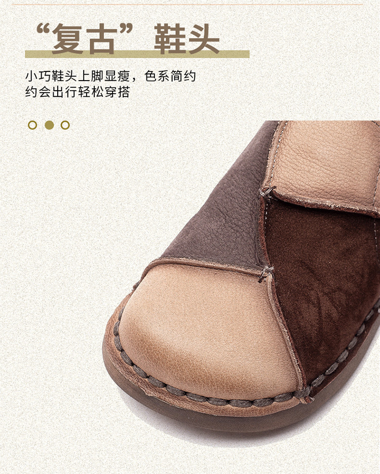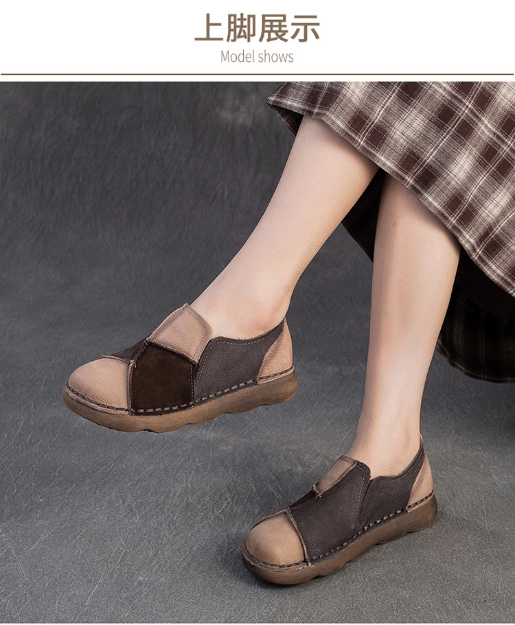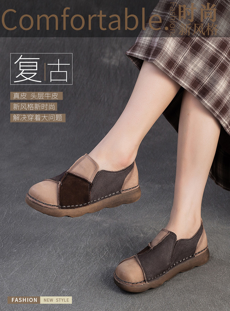 JZ5001-15 2025秋季新款复古拼色软底头层牛皮单鞋休闲舒适百搭圆头女鞋