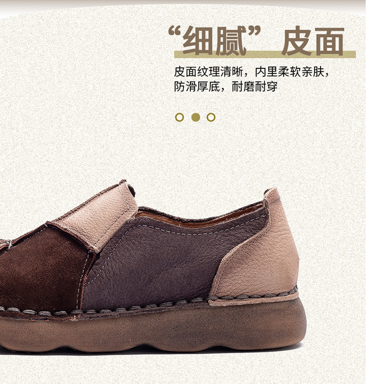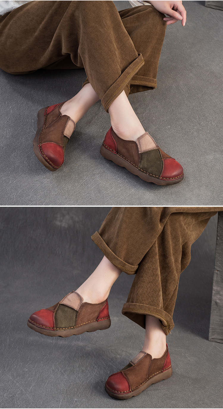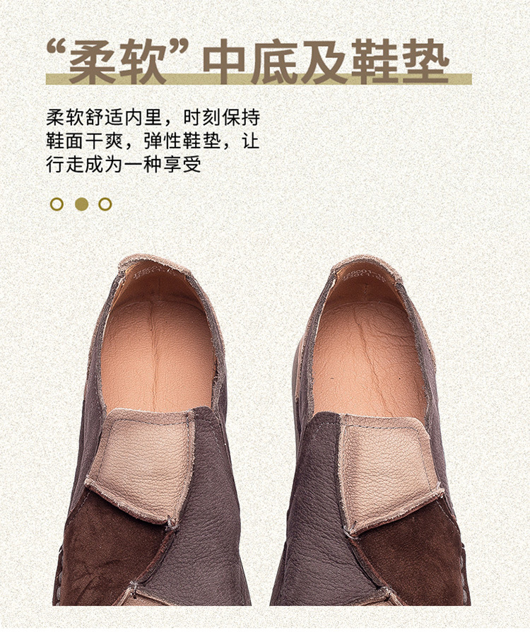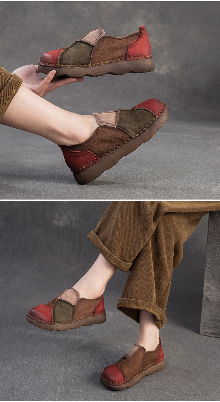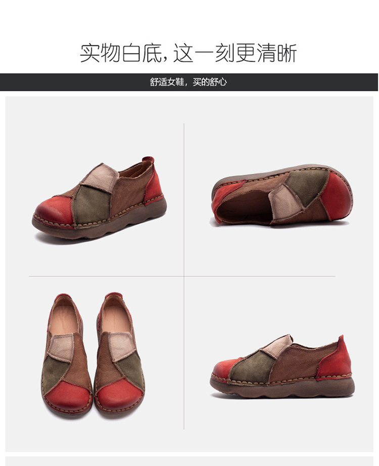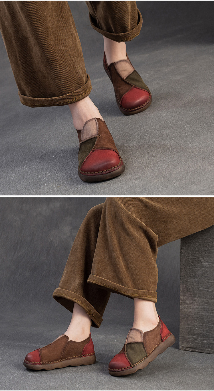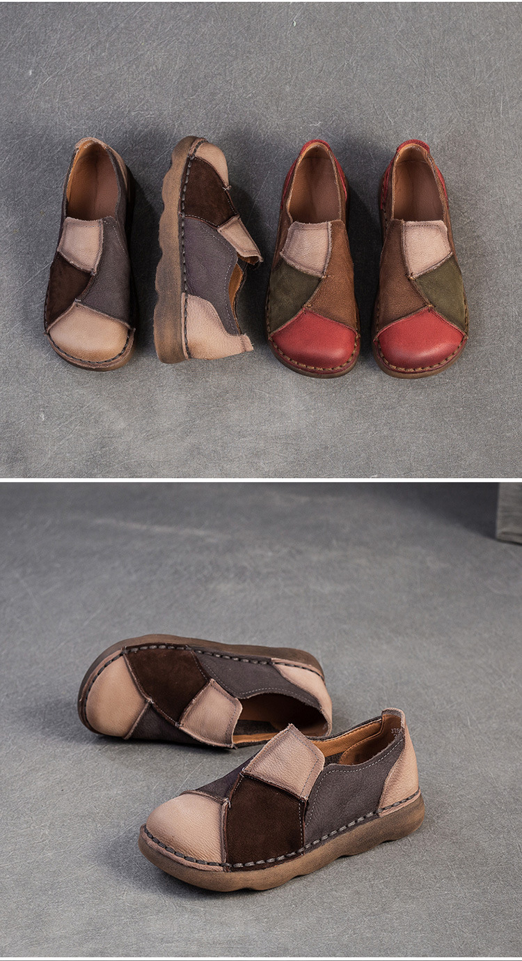 JZ5001-15 2025秋季新款复古拼色软底头层牛皮单鞋休闲舒适百搭圆头女鞋