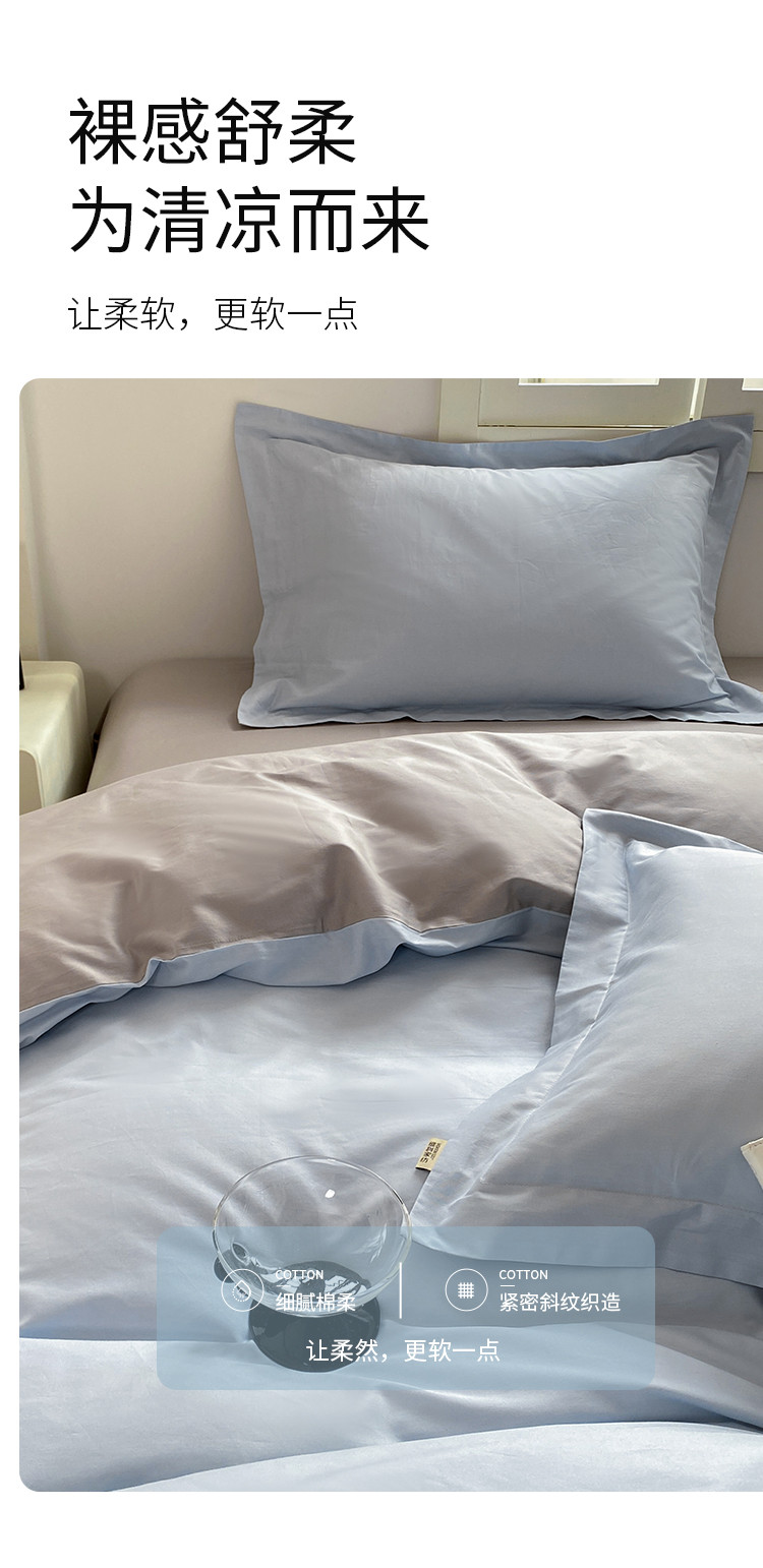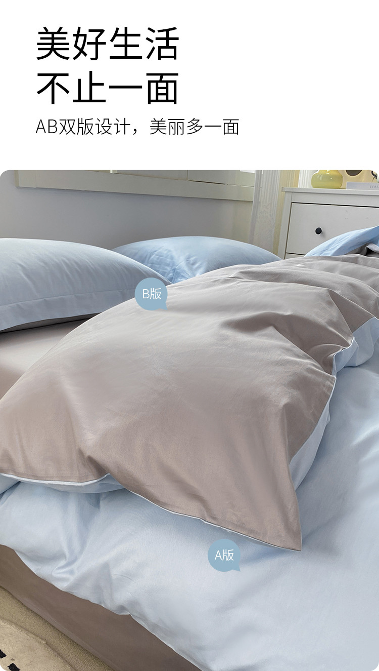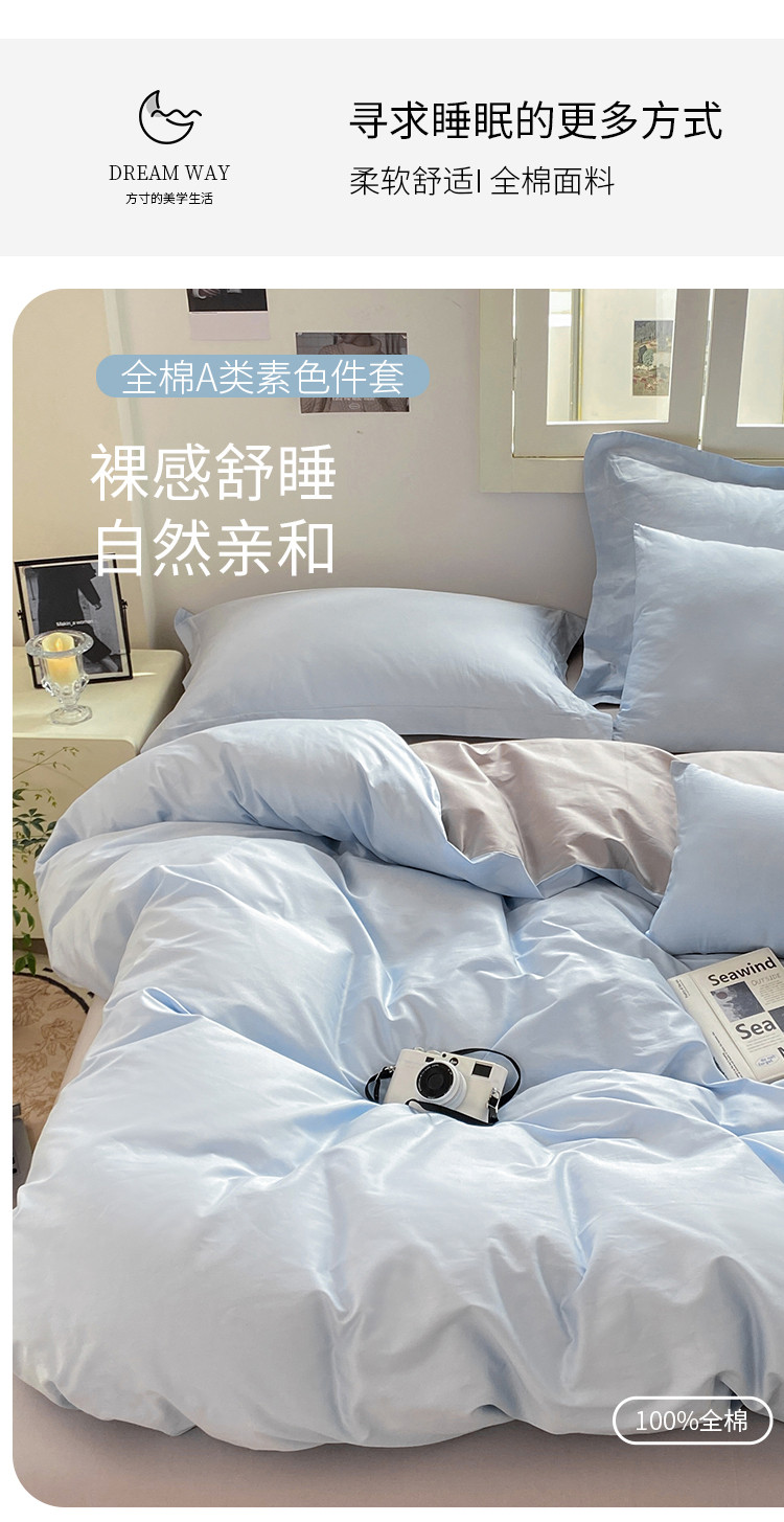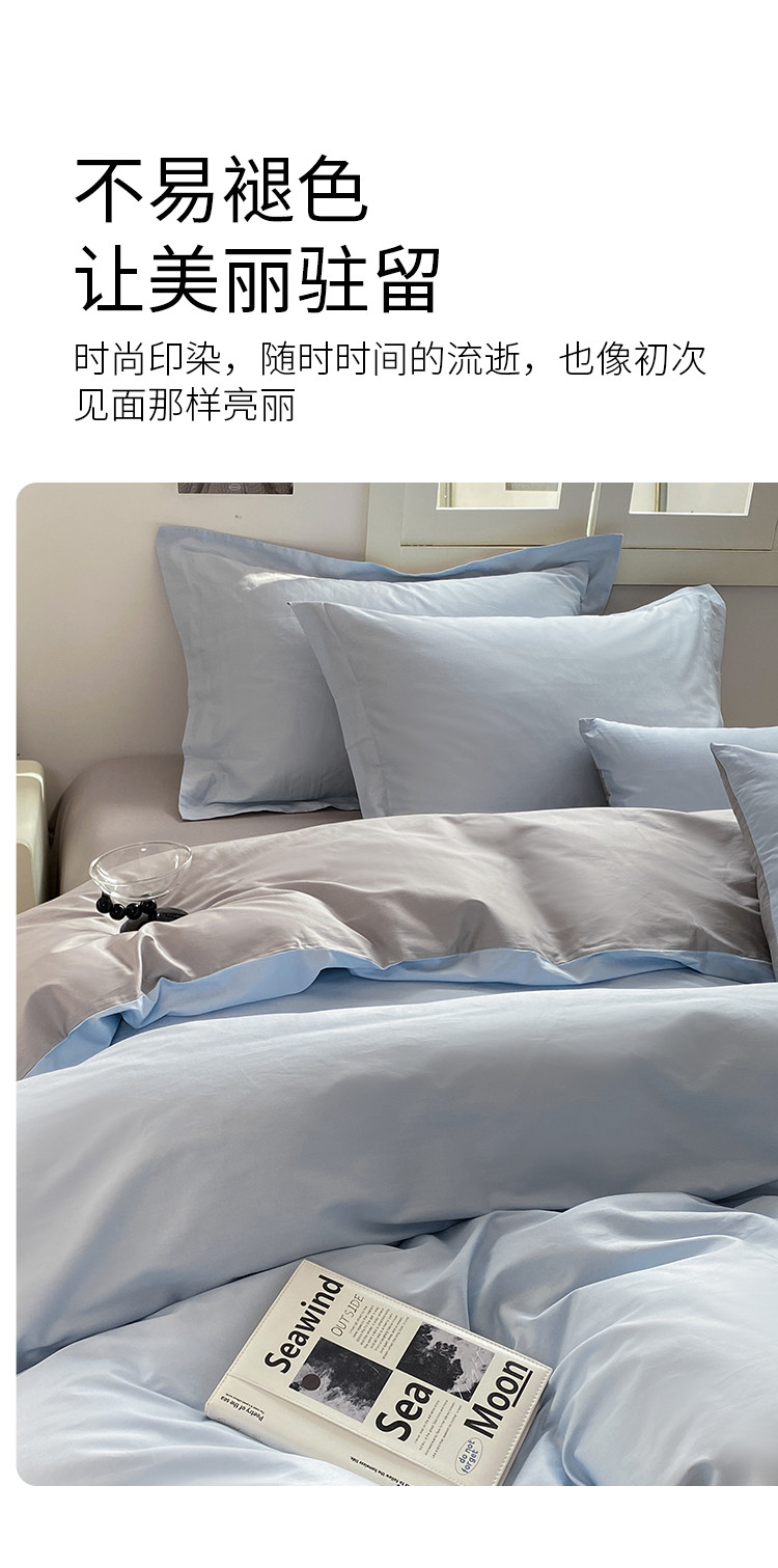 【维科家纺】素色全棉四件套纯棉简约床品撞色被套三件套