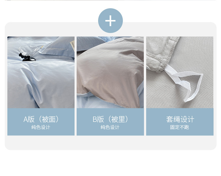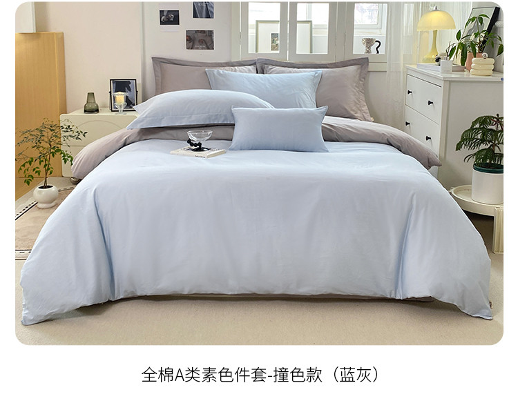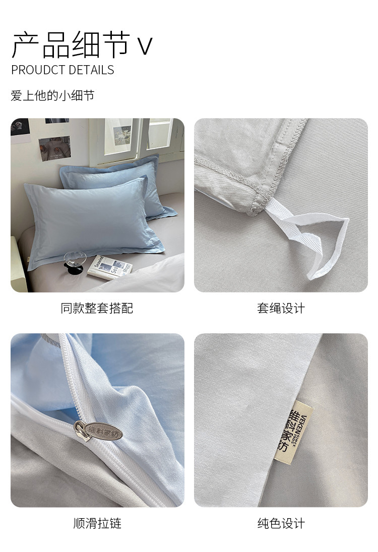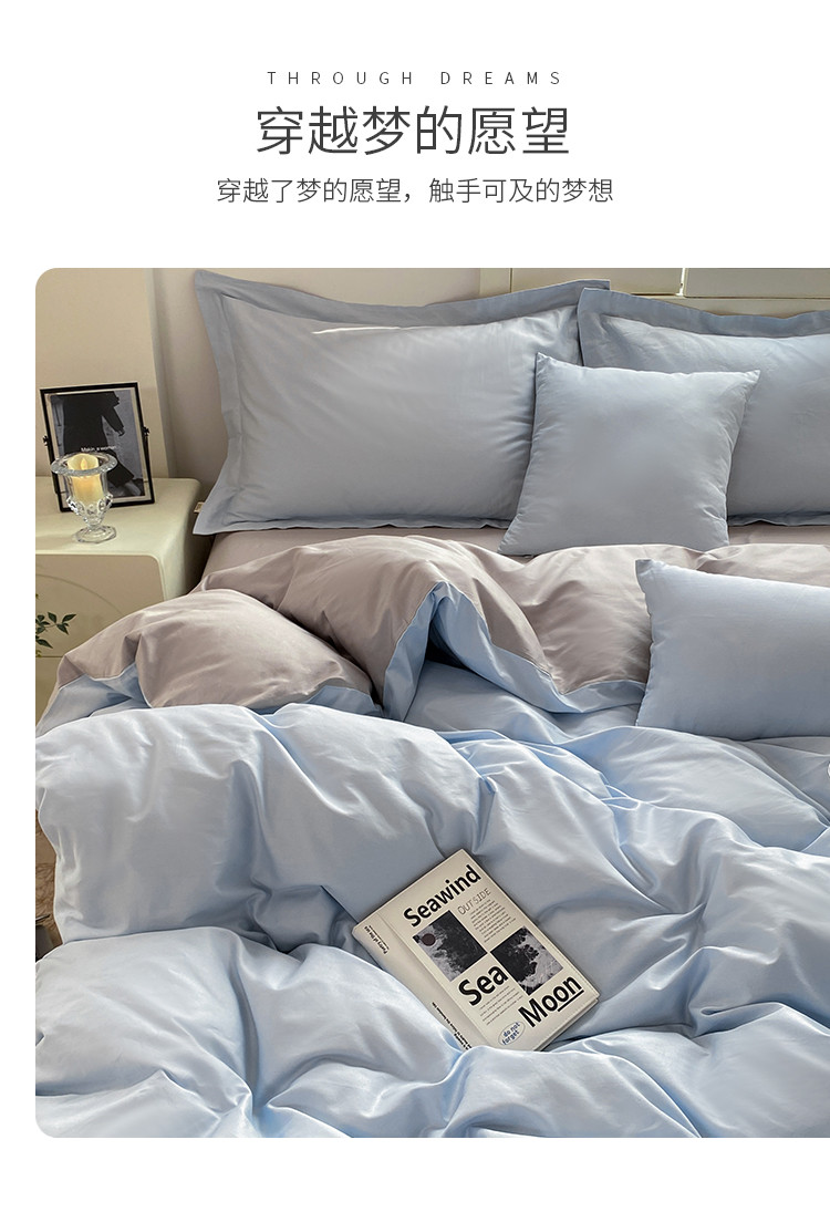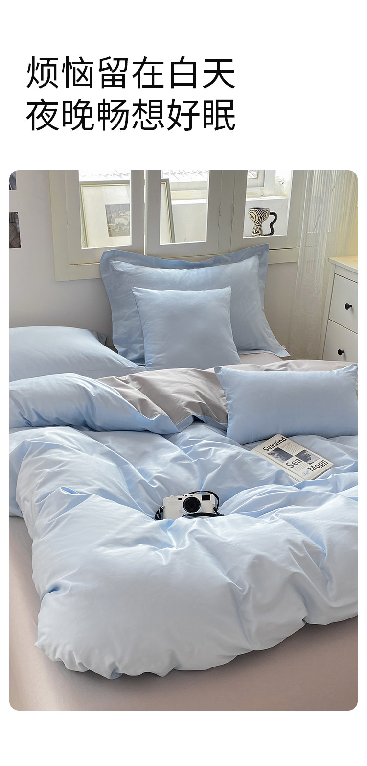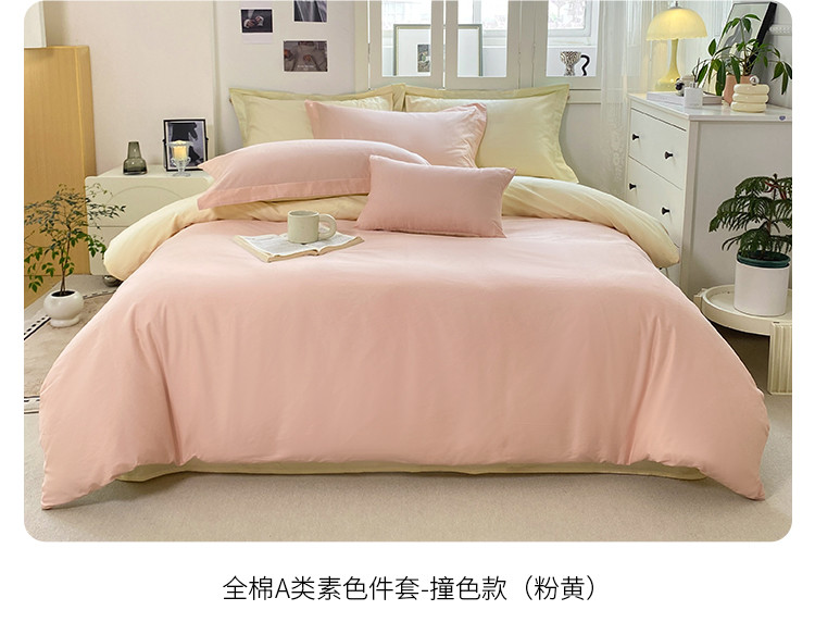 【维科家纺】素色全棉四件套纯棉简约床品撞色被套三件套