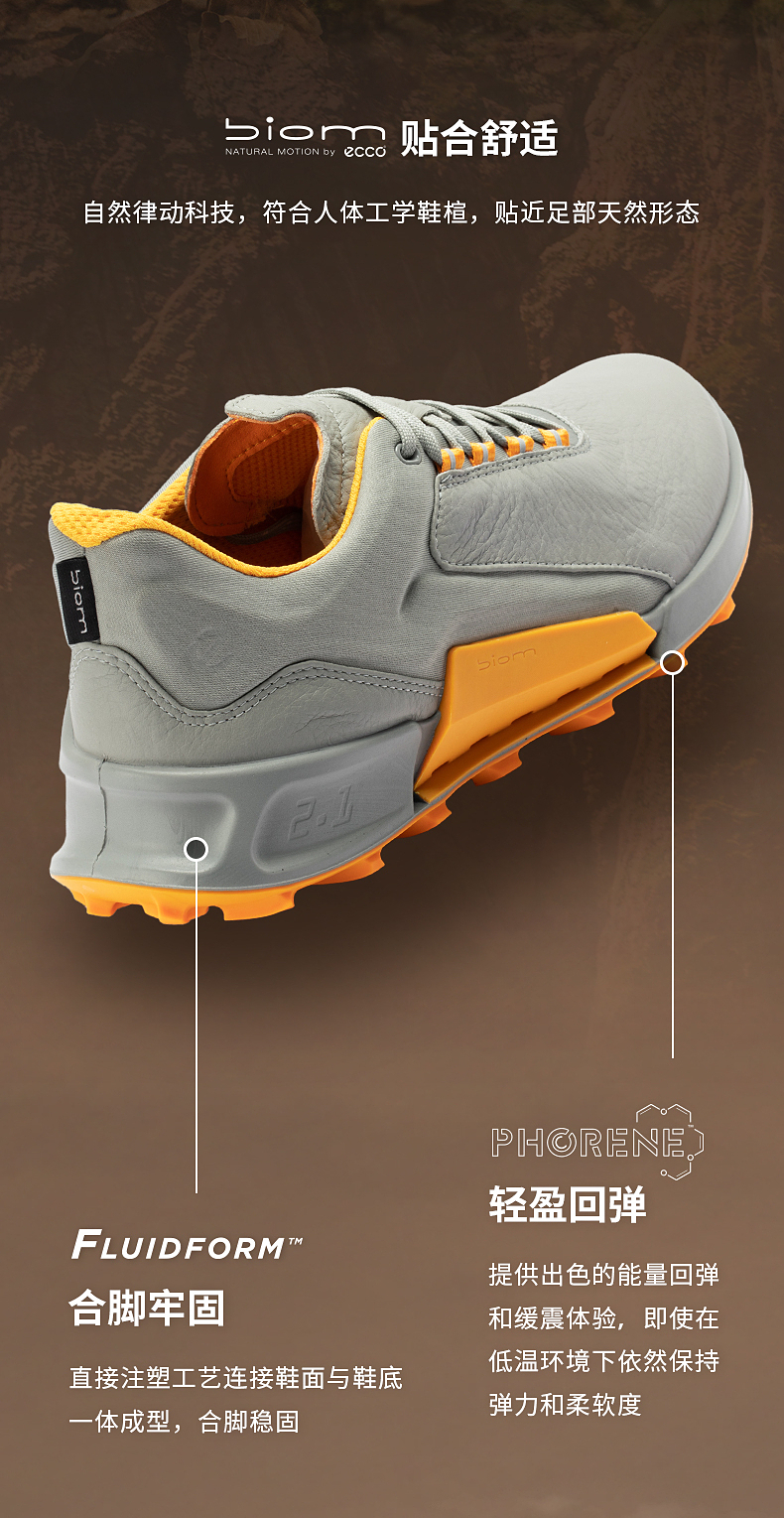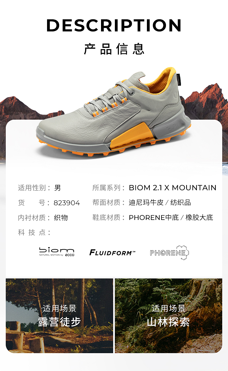 ECCO爱步 25新户外登山鞋男款 防滑徒步越野健步BIOM2.1山地