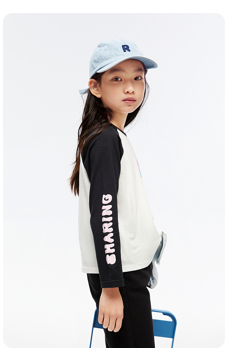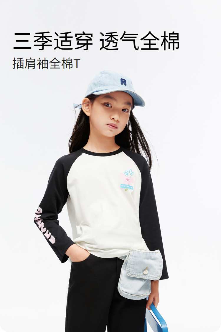 女童圆领长袖T恤春季新款安奈儿童装EG511181