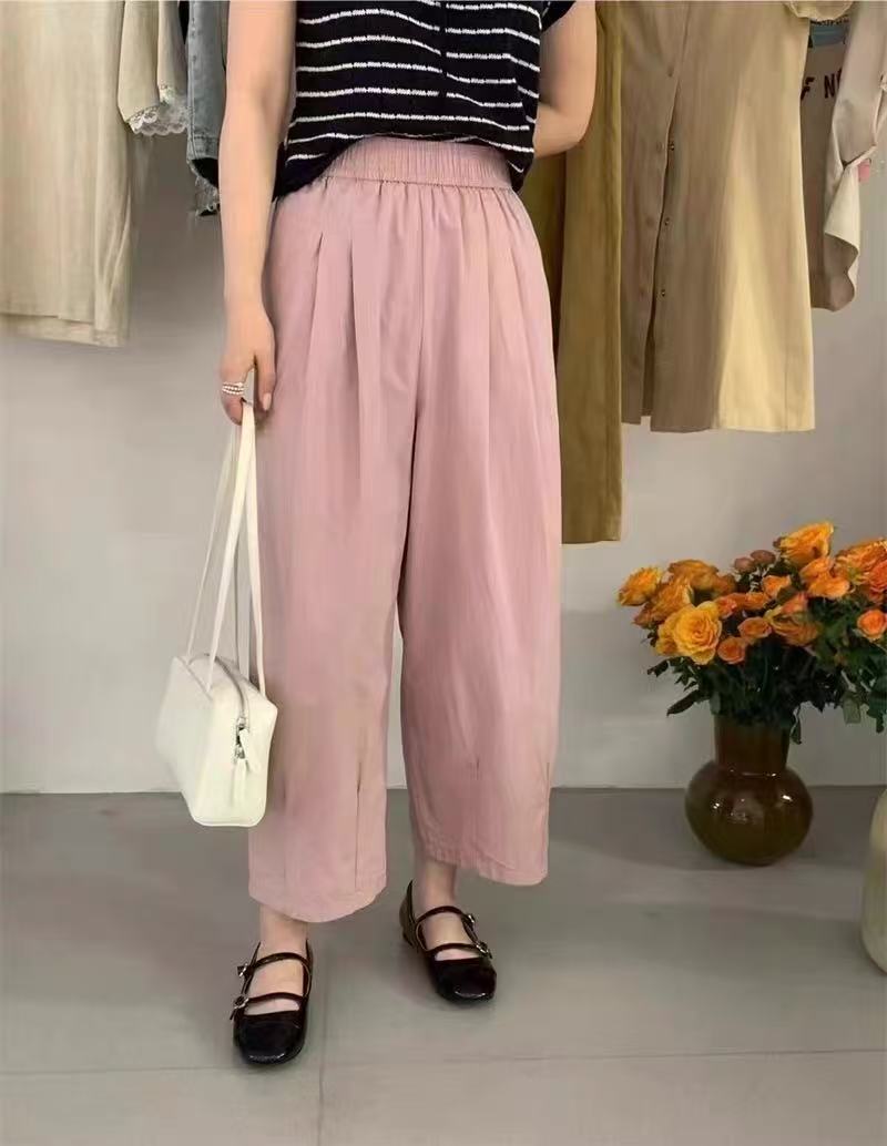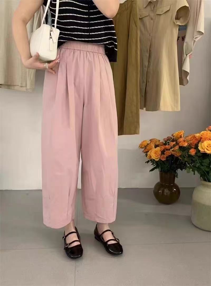 7.7清货,能接受不退拍 NO退 55229宽松版九分休闲直筒水洗棉哈伦显瘦阔腿香蕉裤-喜出