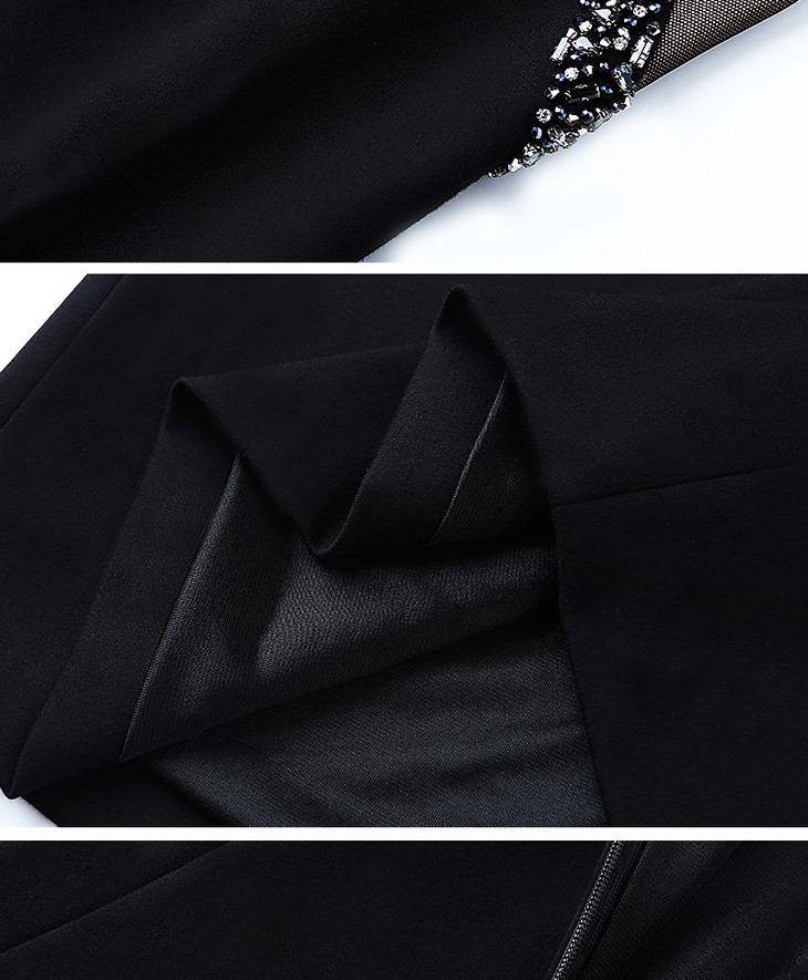 FMY-12207新款早春性感V领钉珠职业连衣裙气质ol显瘦打底裙、