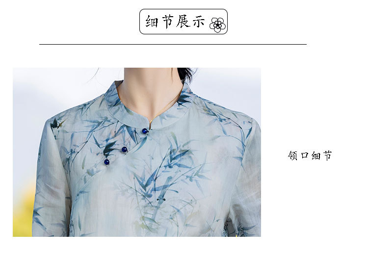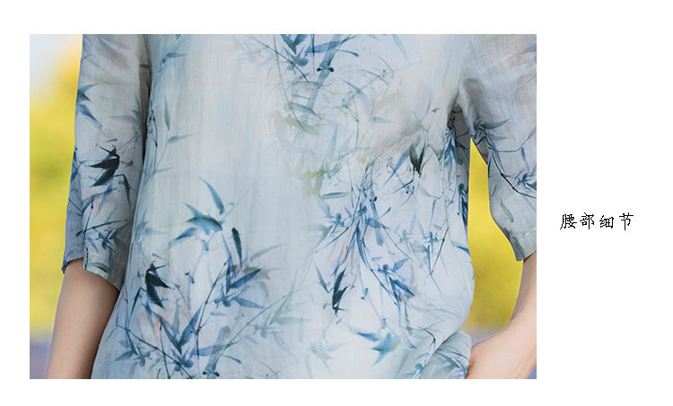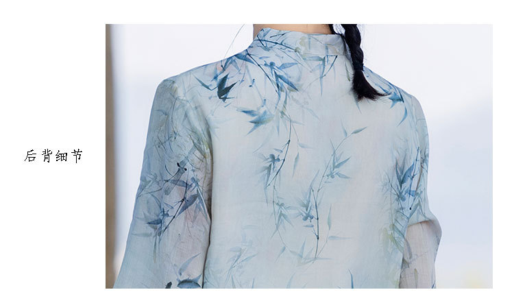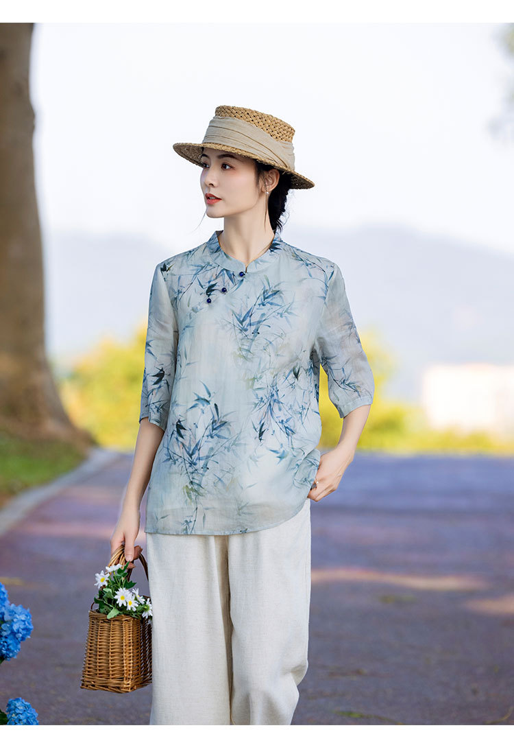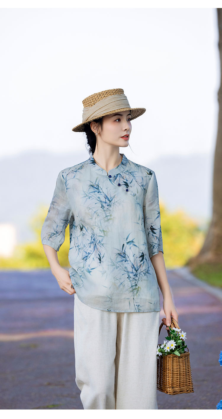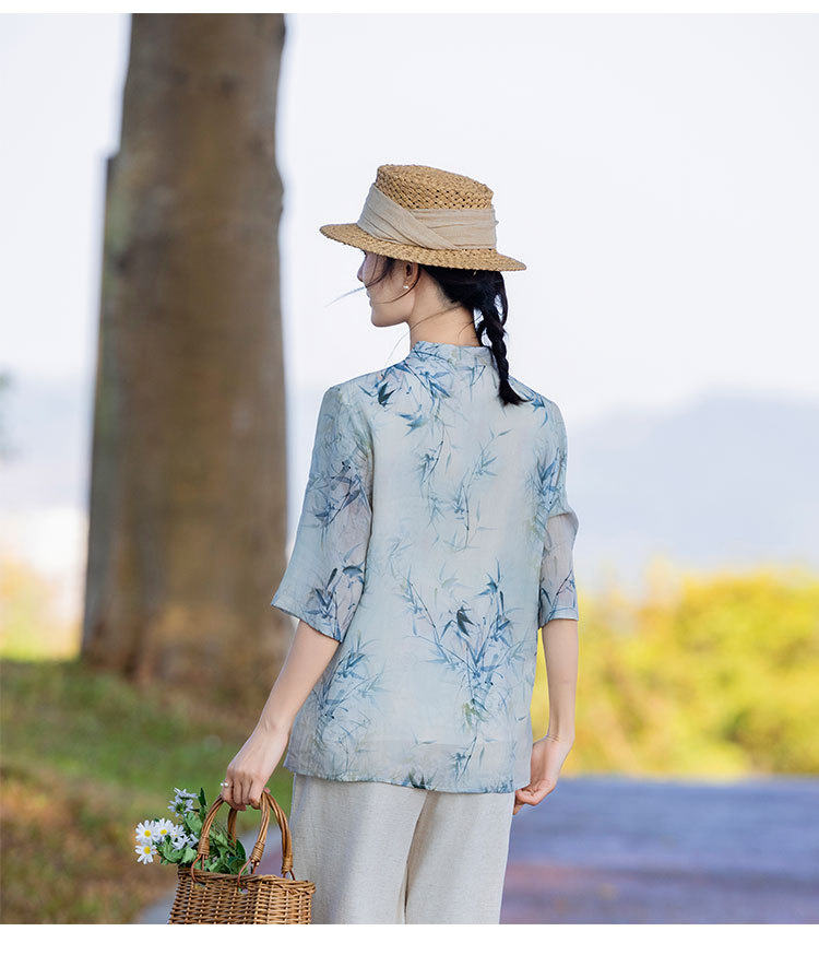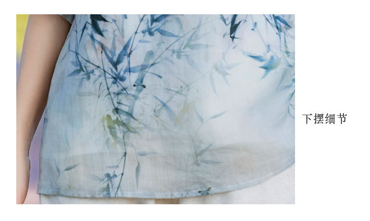 雀说中国风复古小众独特设计立领新中式斜襟盘扣衬衫苎麻印花上衣女AL96181