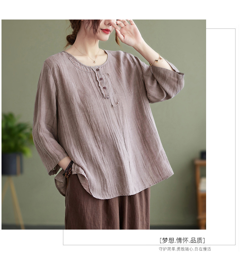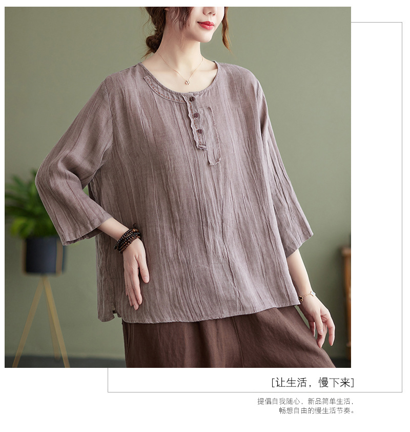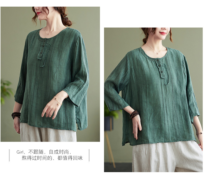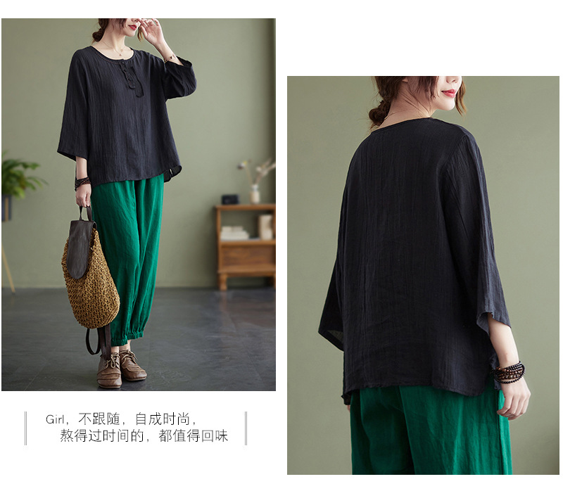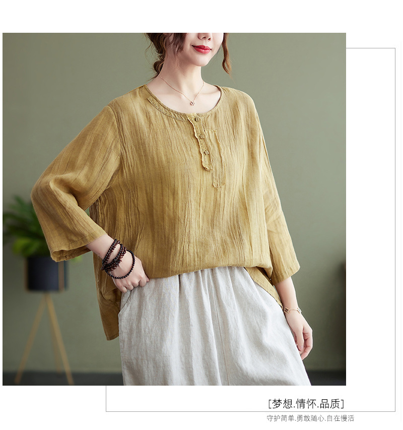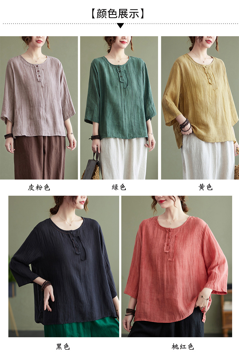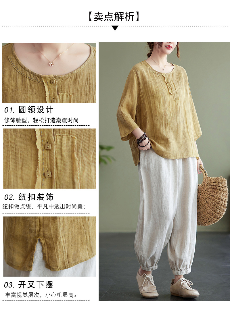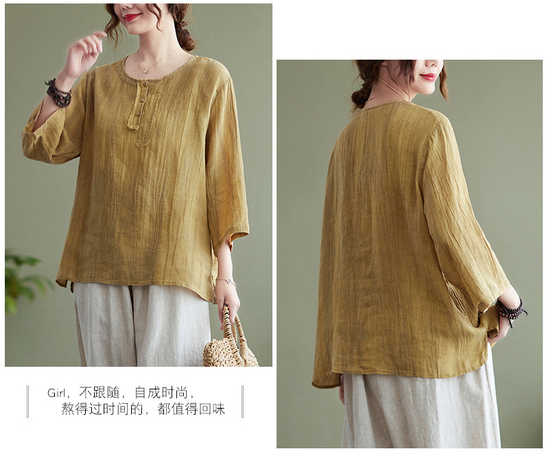 GYH 9263棉麻复古圆领大码宽松休闲显瘦T恤