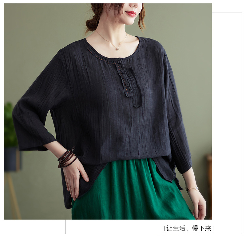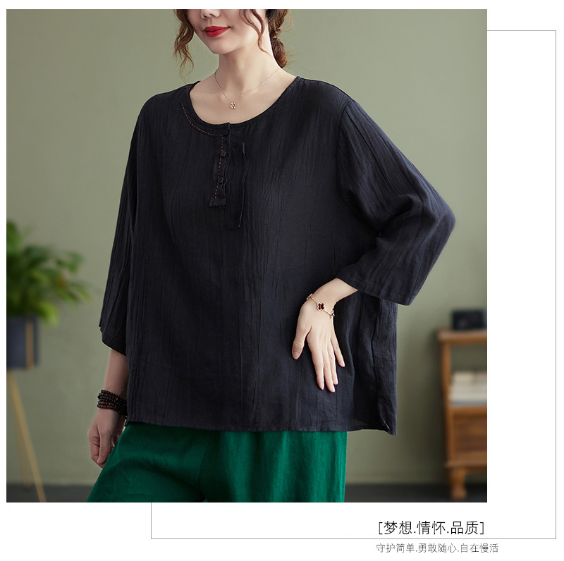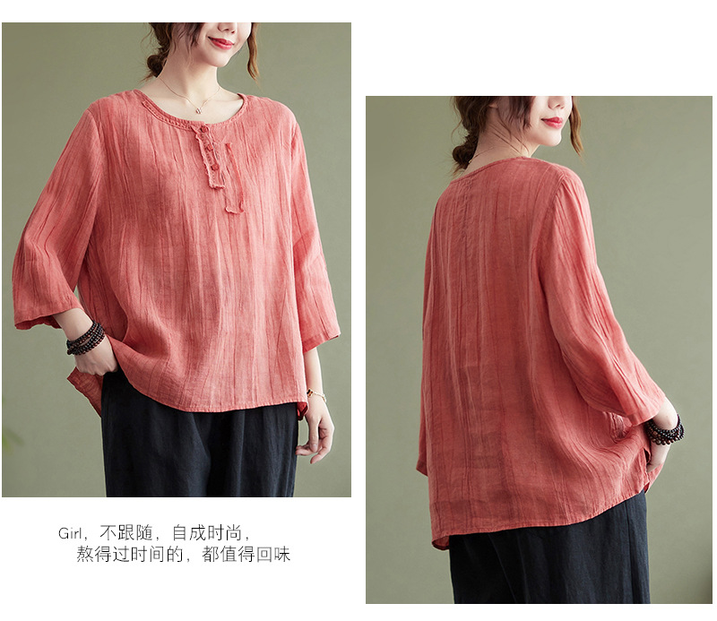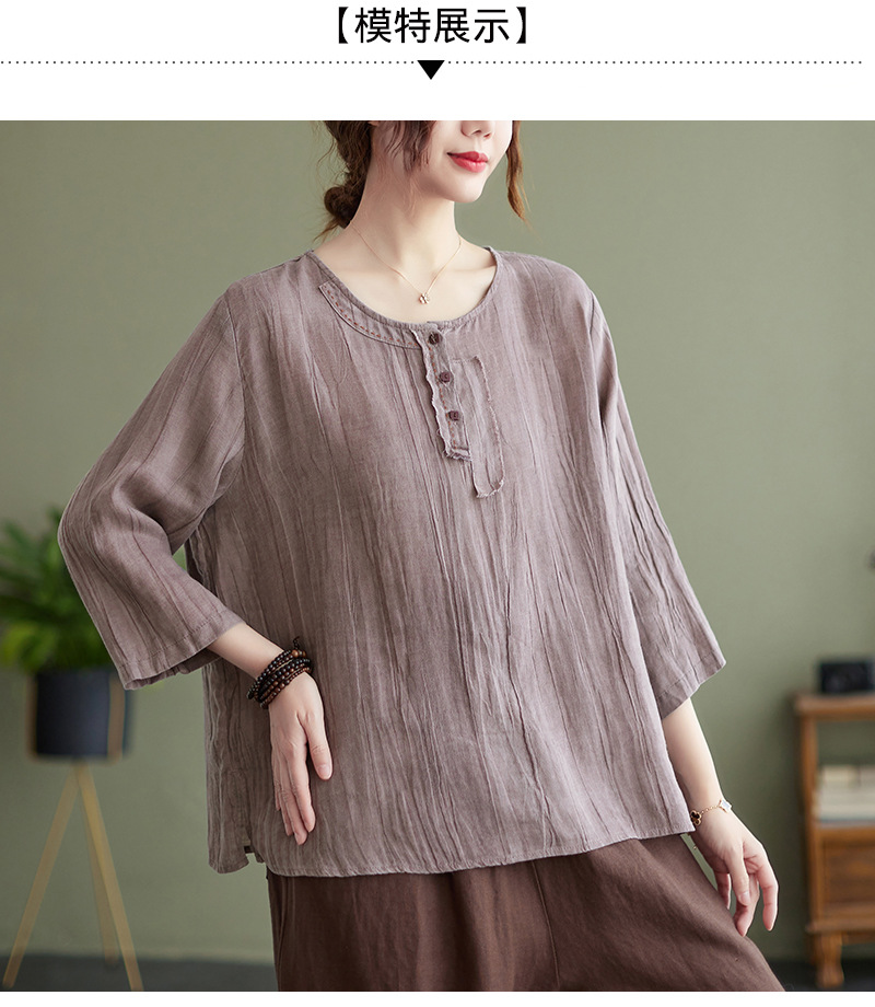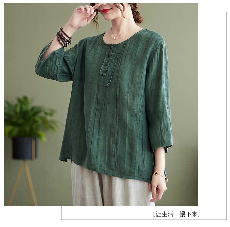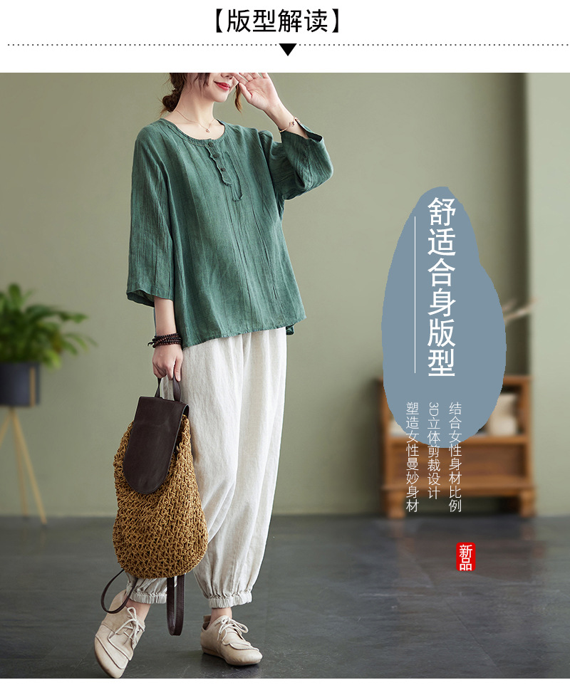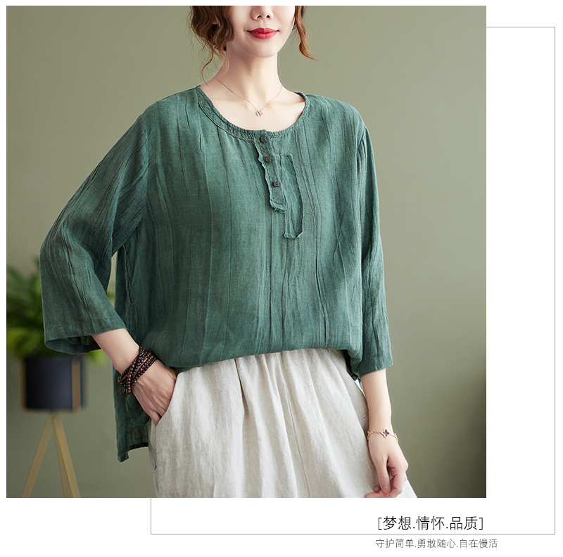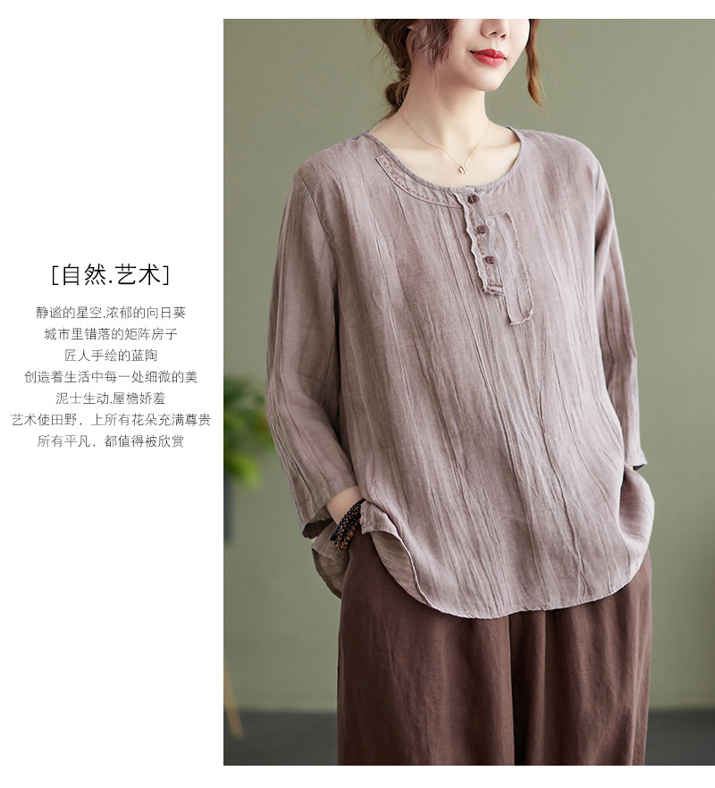 GYH 9263棉麻复古圆领大码宽松休闲显瘦T恤