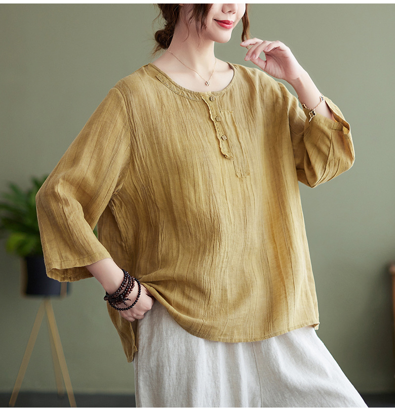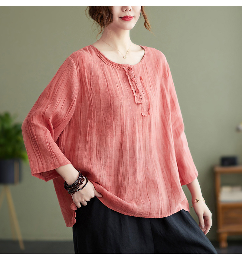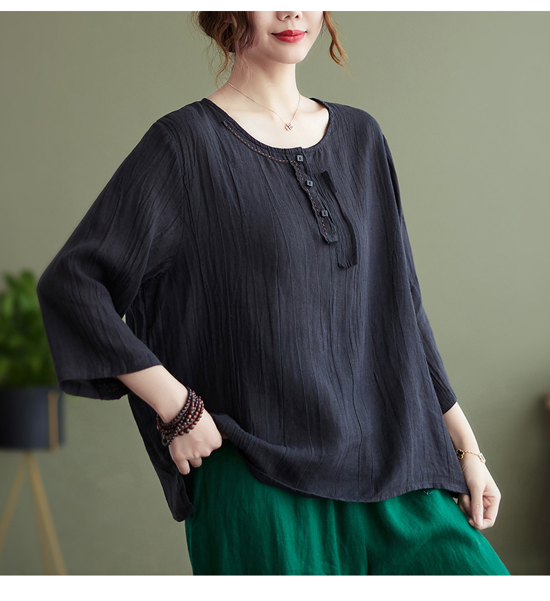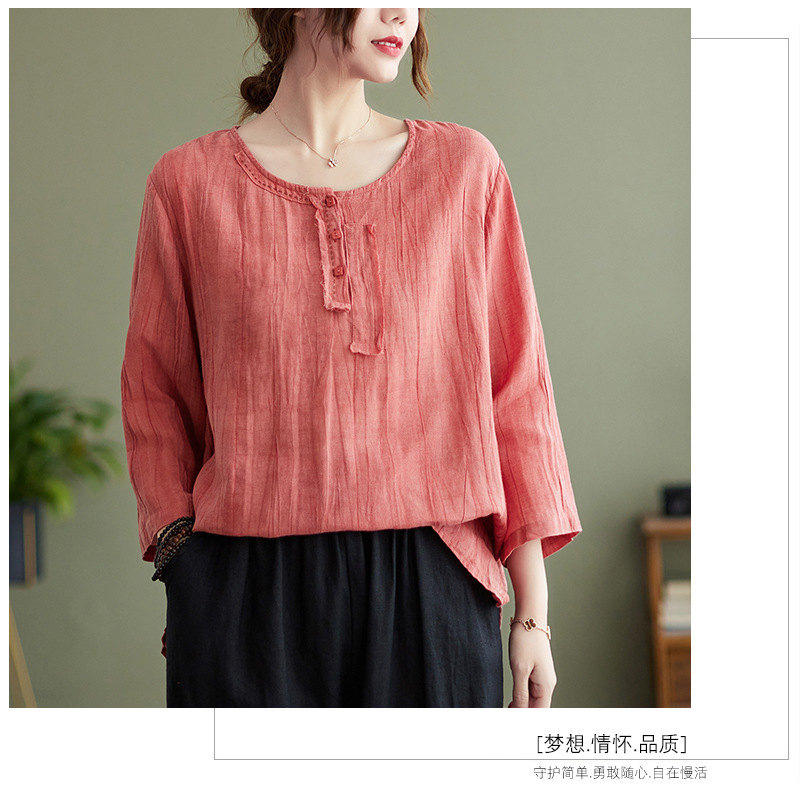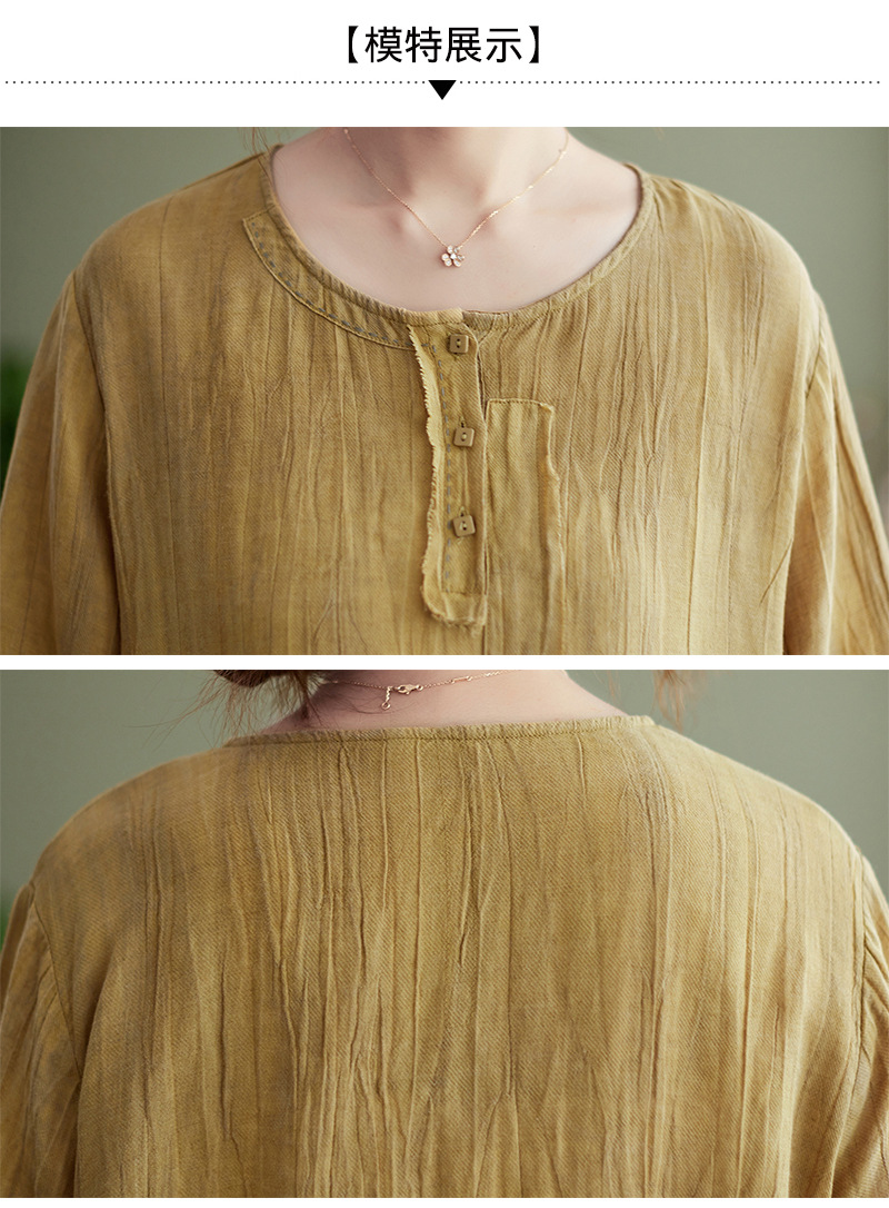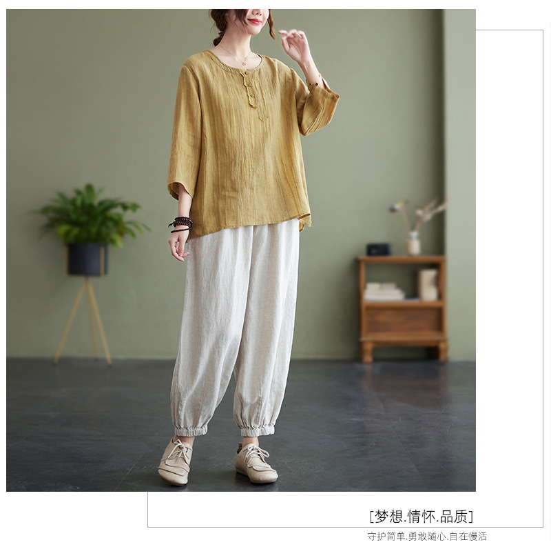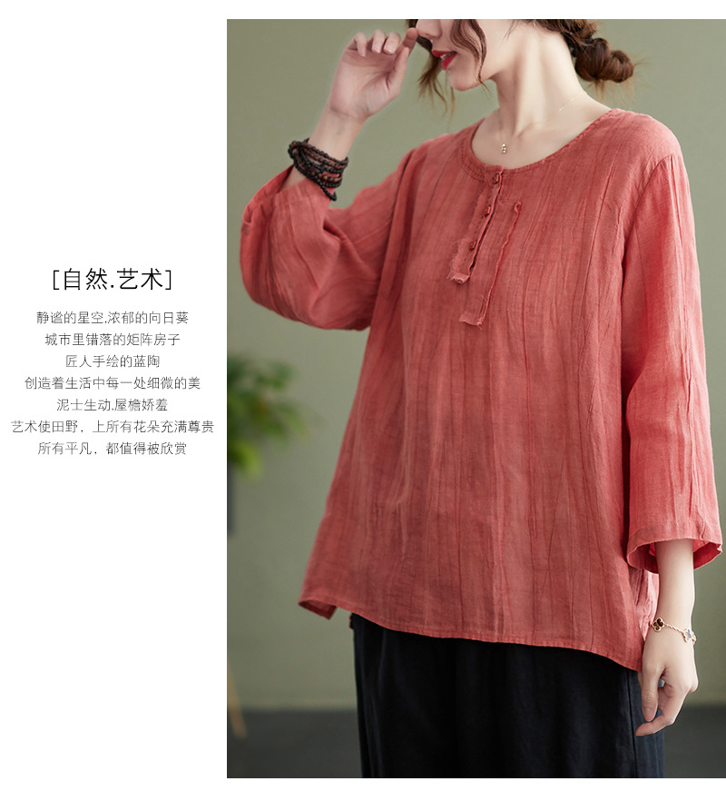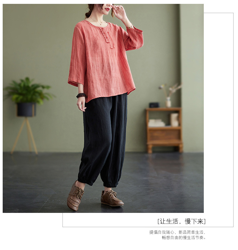 GYH 9263棉麻复古圆领大码宽松休闲显瘦T恤