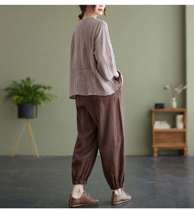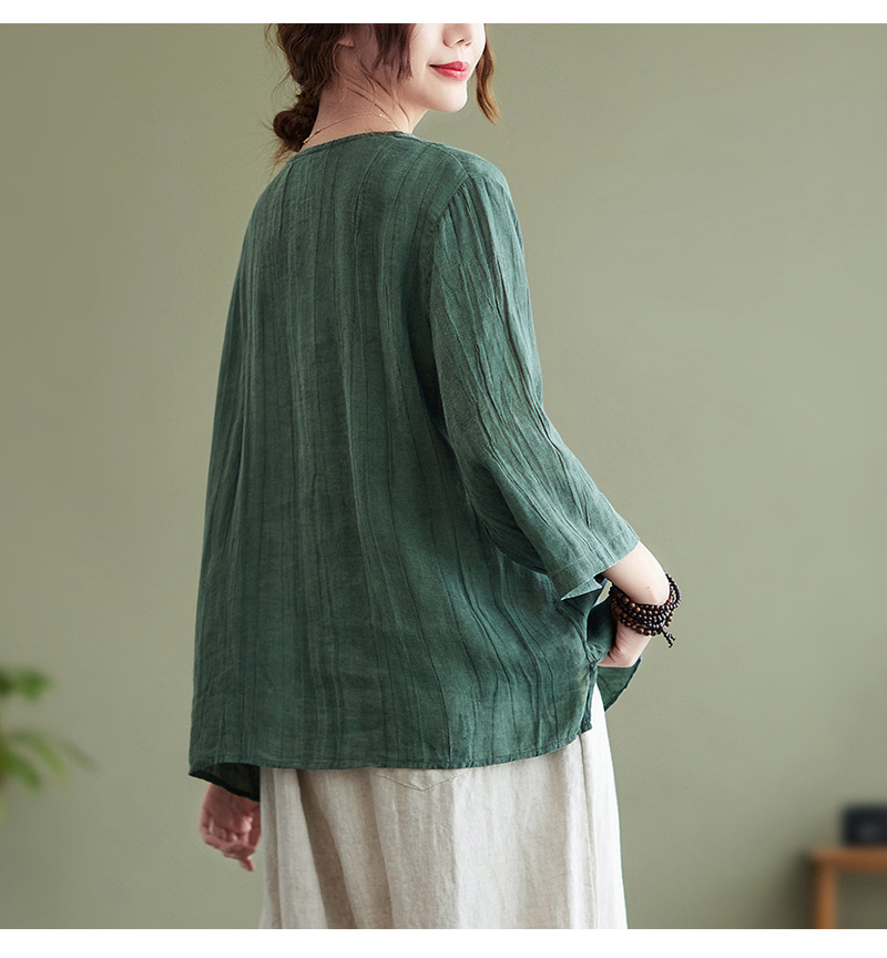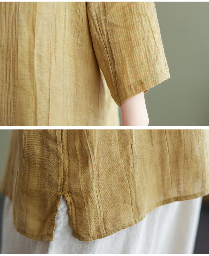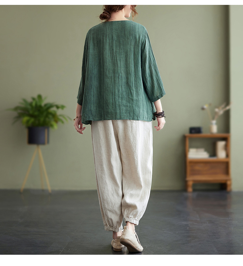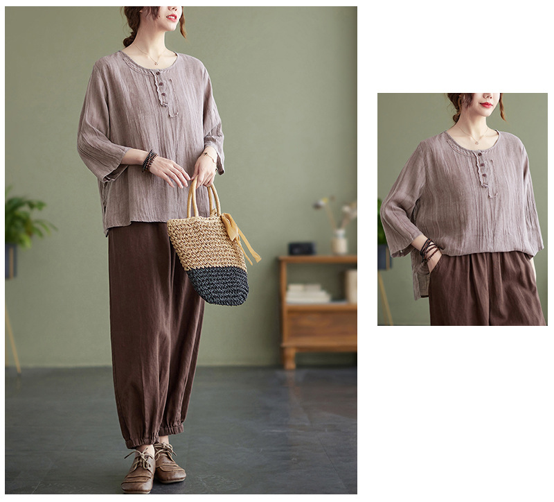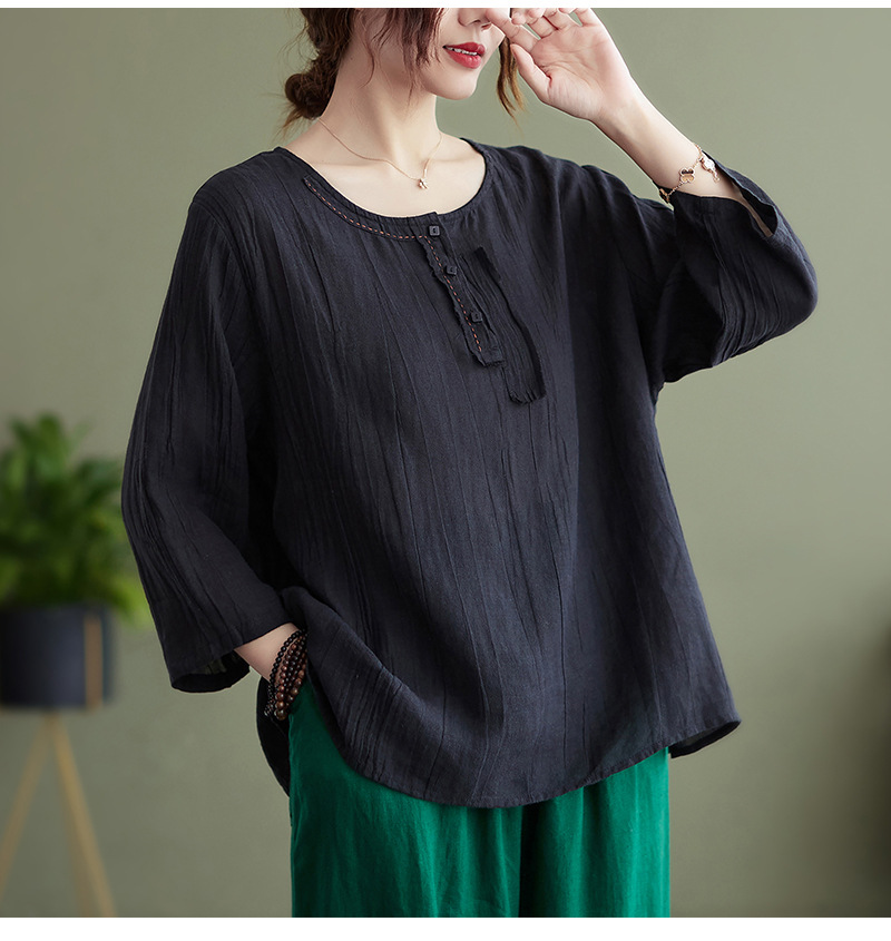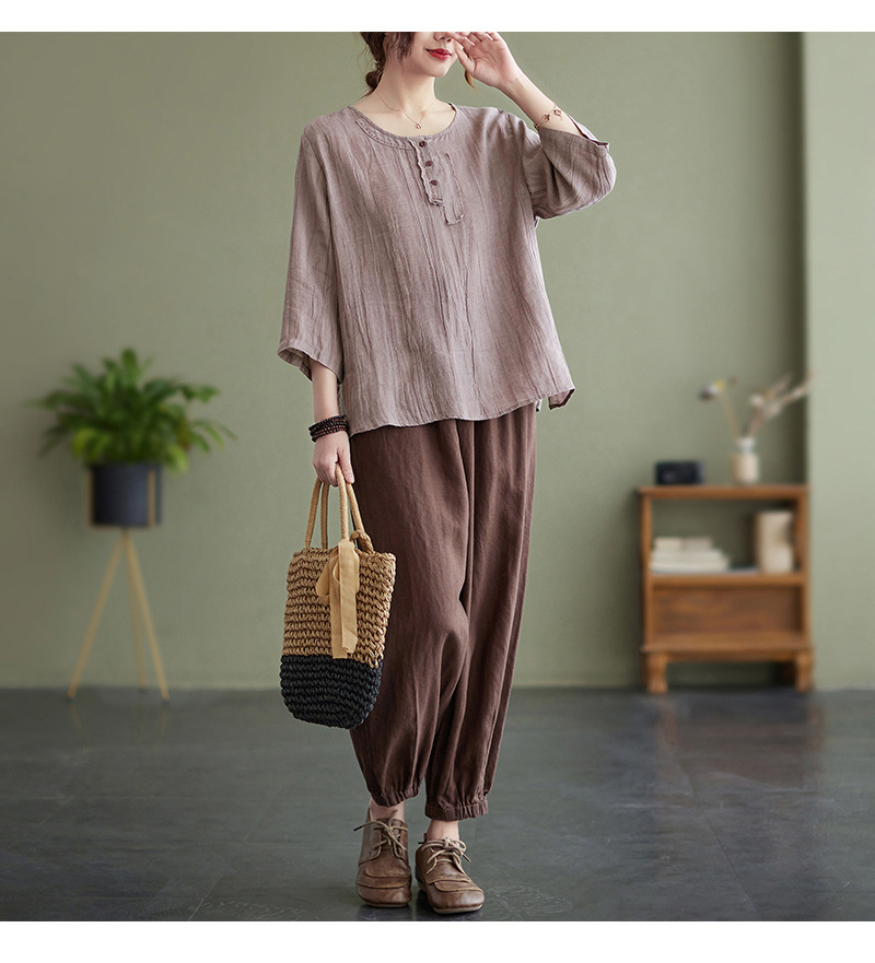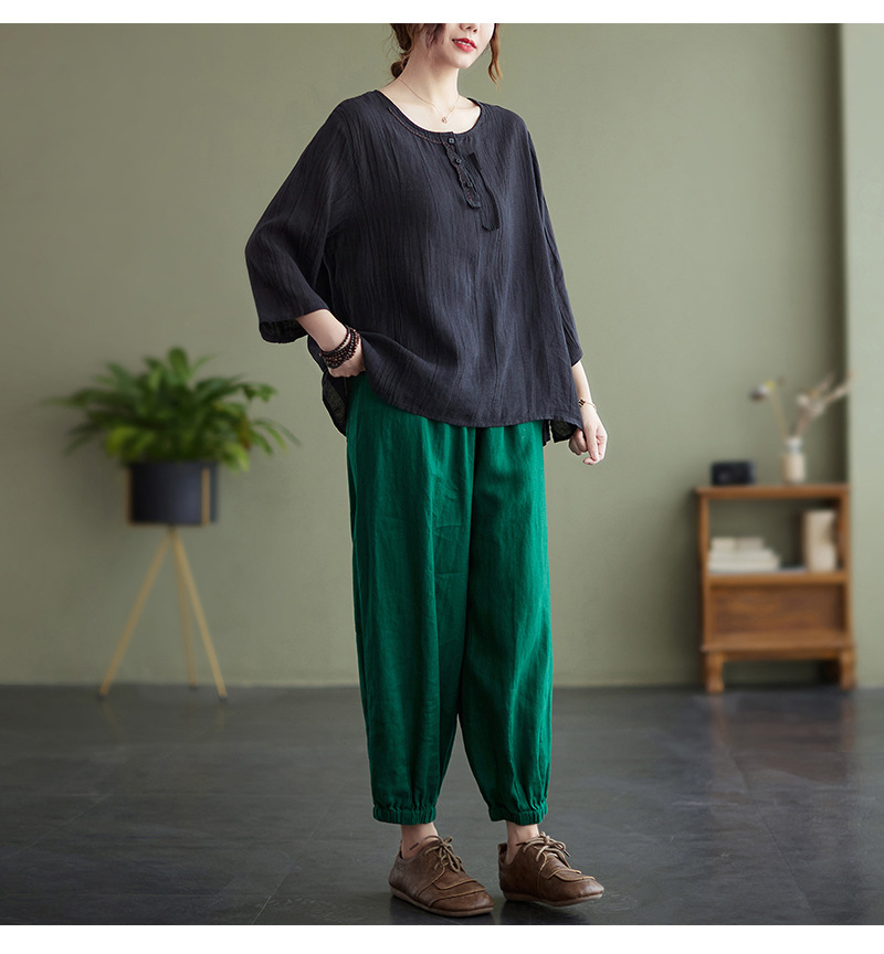 GYH 9263棉麻复古圆领大码宽松休闲显瘦T恤