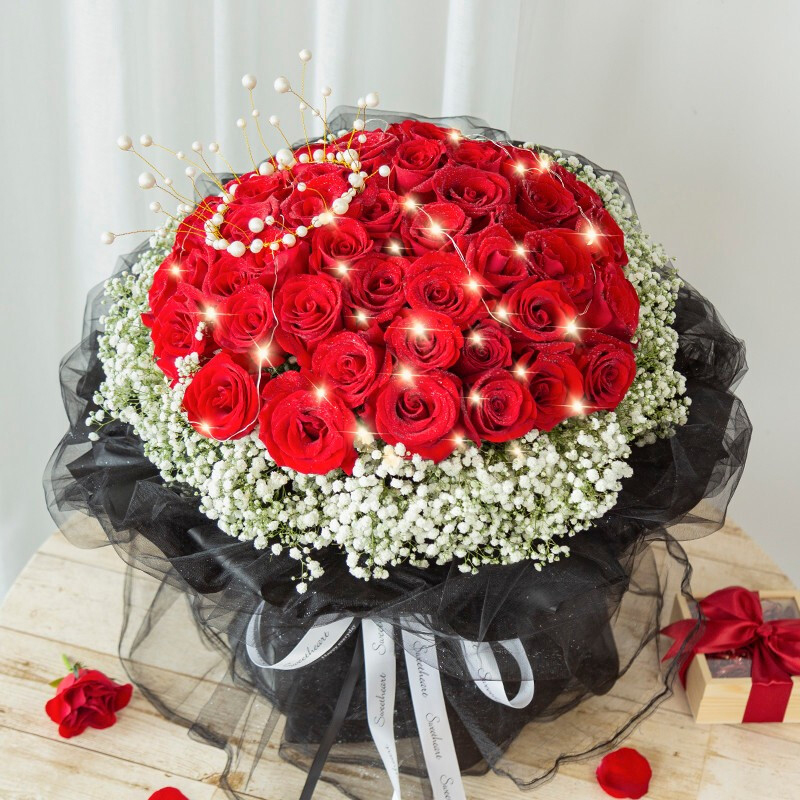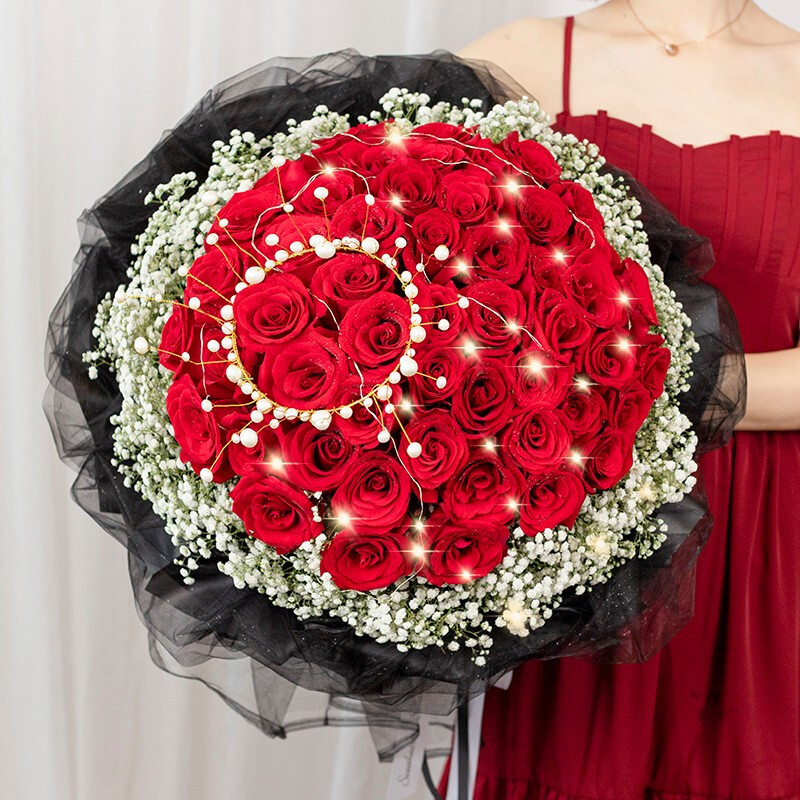 52朵玫瑰花束送女朋友老婆暗恋对象告白纪念日求婚女神节520七夕情人节中秋节圣诞节